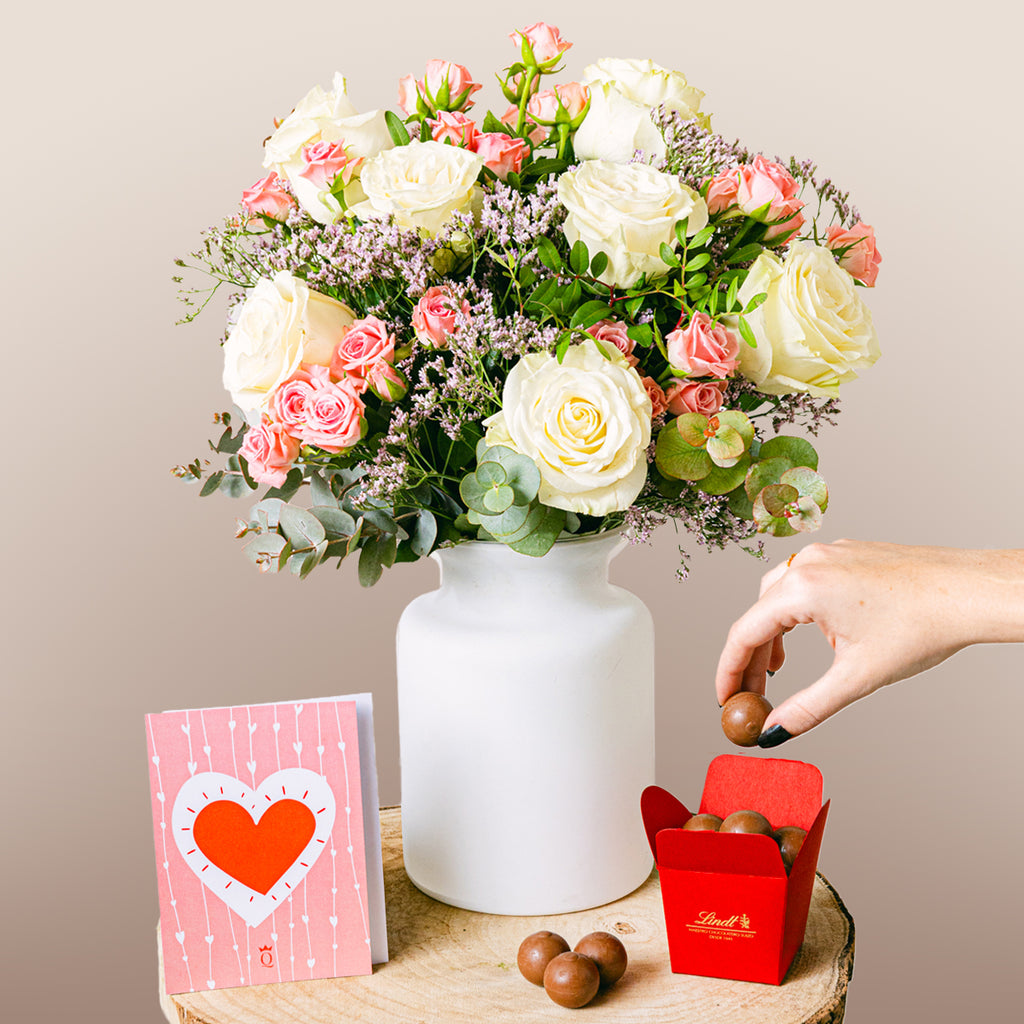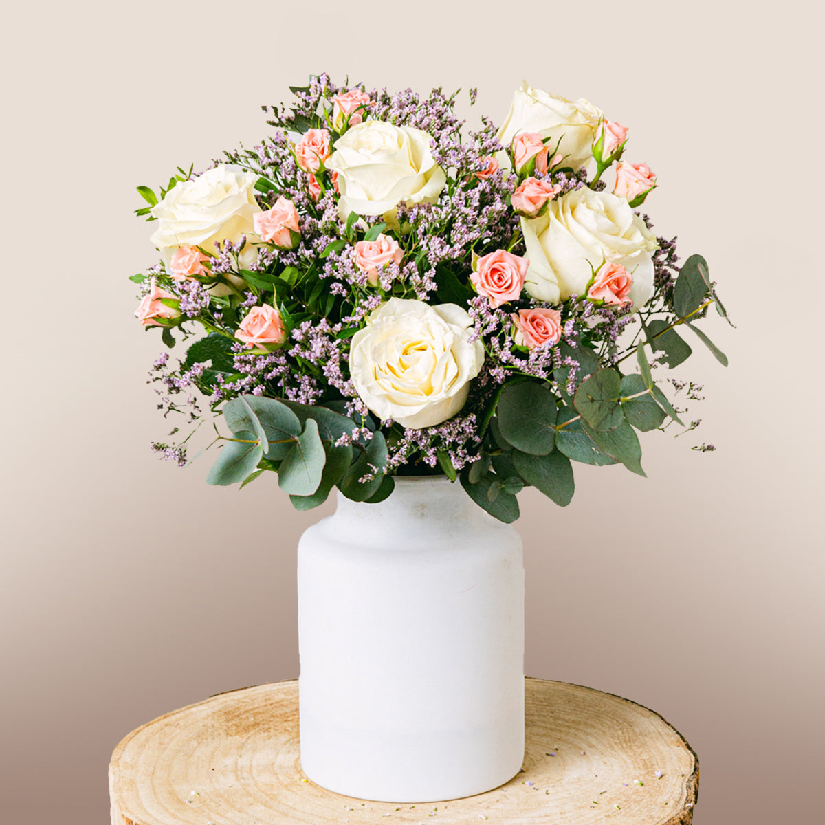 Bei Ankunft: Stellen Sie Ihren Strauß in eine saubere Vase mit frischem, zimmerwarmem Wasser sofort nach der Lieferung.