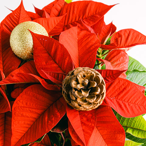Dank seiner leuchtenden, fröhlichen Farben ist der Weihnachtsstern eines der bekanntesten Symbole für Weihnachten. Dieser Weihnachtsstern ist mit goldenen Kugeln und weihnachtlichen Tannenzapfen geschmückt und wird in einem Weidenkorb geliefert. Er ist die perfekte Möglichkeit, jemanden Besonderen zu überraschen und ihm in der Weihnachtszeit seine besten Wünsche zu übermitteln.