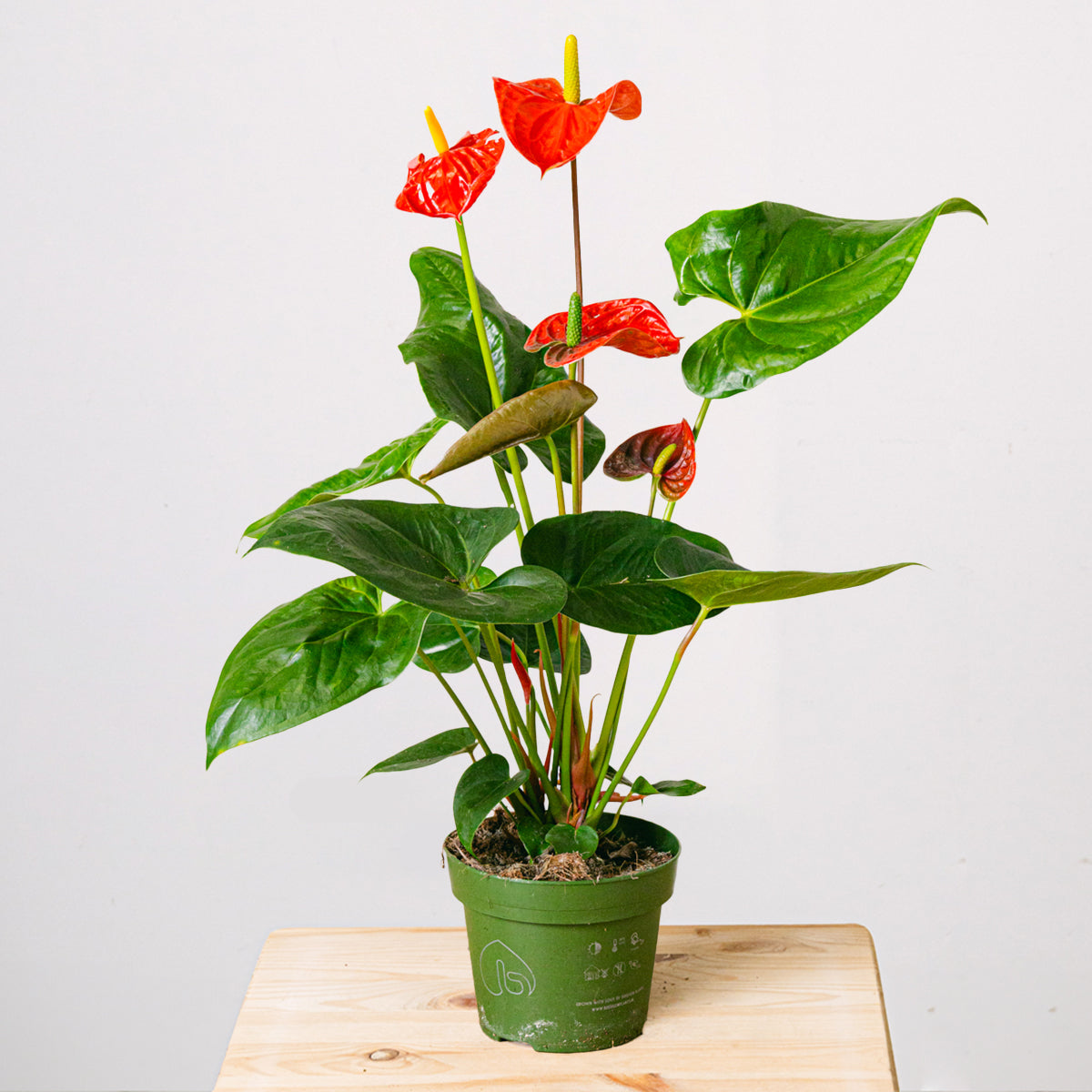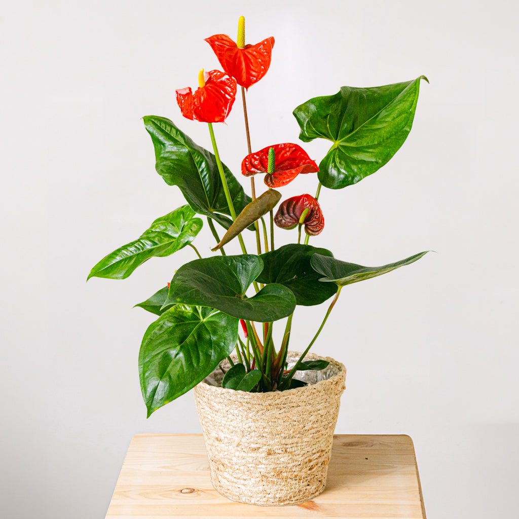 Die rote Anthurie mit ihren herzförmigen Blüten ist eine beliebte Pflanze für eine romantische Geste an einem besonderen Tag. Eine reinigende Pflanze, die nicht viel Pflege benötigt, um gesund auszusehen.