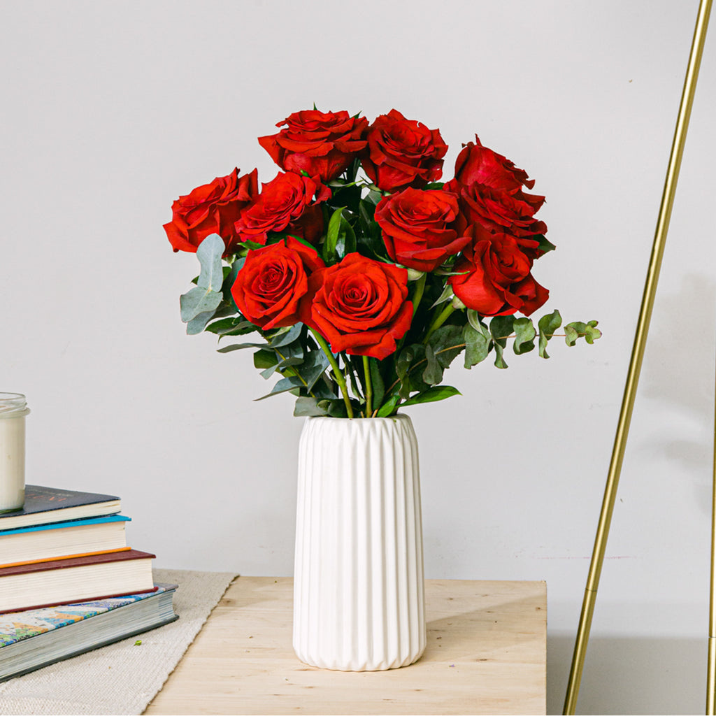 Dieser klassische Strauß roter Rosen ist das perfekte Geschenk, um Ihre tiefsten Gefühle von Liebe und Leidenschaft auszudrücken. Die tiefrote Farbe der Rosen symbolisiert Romantik und Hingabe.