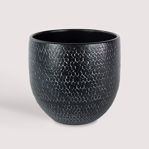 Schwarzer Keramik-Pflanztopf mit strukturierter Oberfläche. Perfekt für alle Ihre Pflanzen.