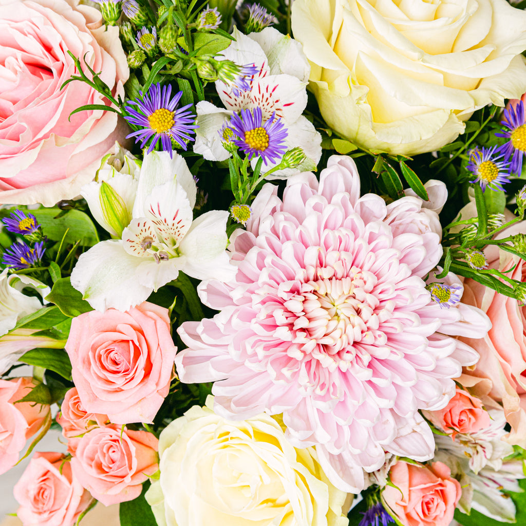 Rosen, Asiatische Lilien, Nelken, gemischtes Grün.