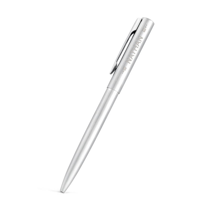 Mehr Informationen zum Waterman Kugelschreiber mit Gravur:Marke: WatermanTyp: Chrome GraduateStifttyp: KugelschreiberStiftfarbe: Silber glänzendSchreibfarbe: BlauPersonalisierung: Mit Wunschname und/oder WunschtextGravurfarbe: SilberExtra: Inklusive FüllungDer Kugelschreiber wird so graviert, dass der Text beim Schreiben mit der rechten Hand lesbar ist