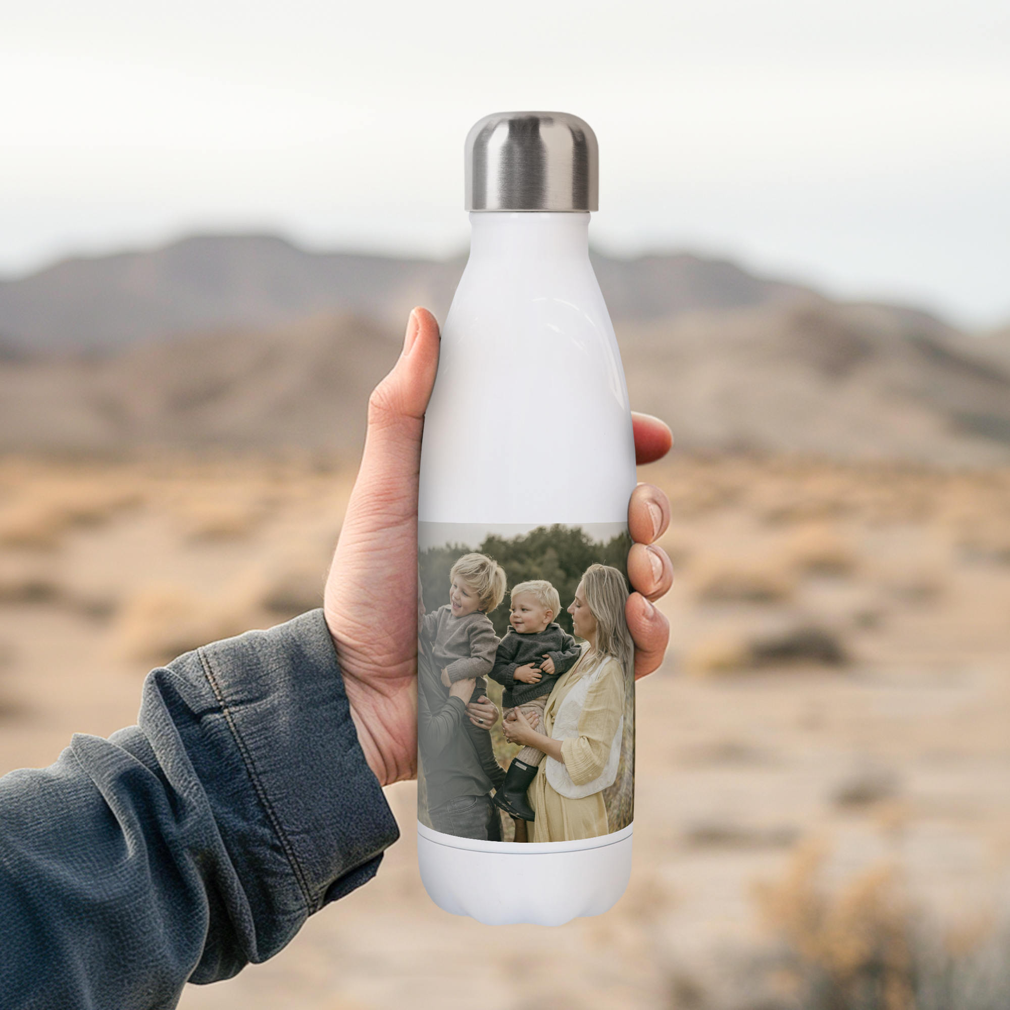 Gestalte jetzt deine Edelstahl-Trinkflasche mit deinem Wunschfoto, Text oder Logo!