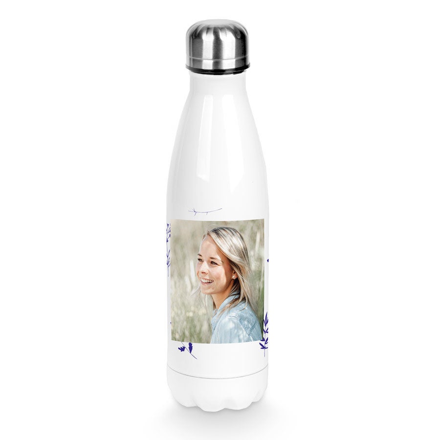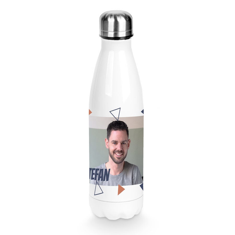 Mehr Infos zur personalisierten Trinkflasche: Material: hochwertiger Edelstahl und Aluminium Farbe: weiße Flasche mit silbernem Deckel Fassungsvermögen: 500 ml Personalisierung: Foto, Text und/oder Logo Druck: gestochen scharf und in Vollfarbe Thermoskanne: kühlt bis zu 24 Stunden, hält bis zu 12 Stunden warm Extra: auslaufsicher und isoliert, Handwäsche empfohlen Die Flasche ist BPA-frei.