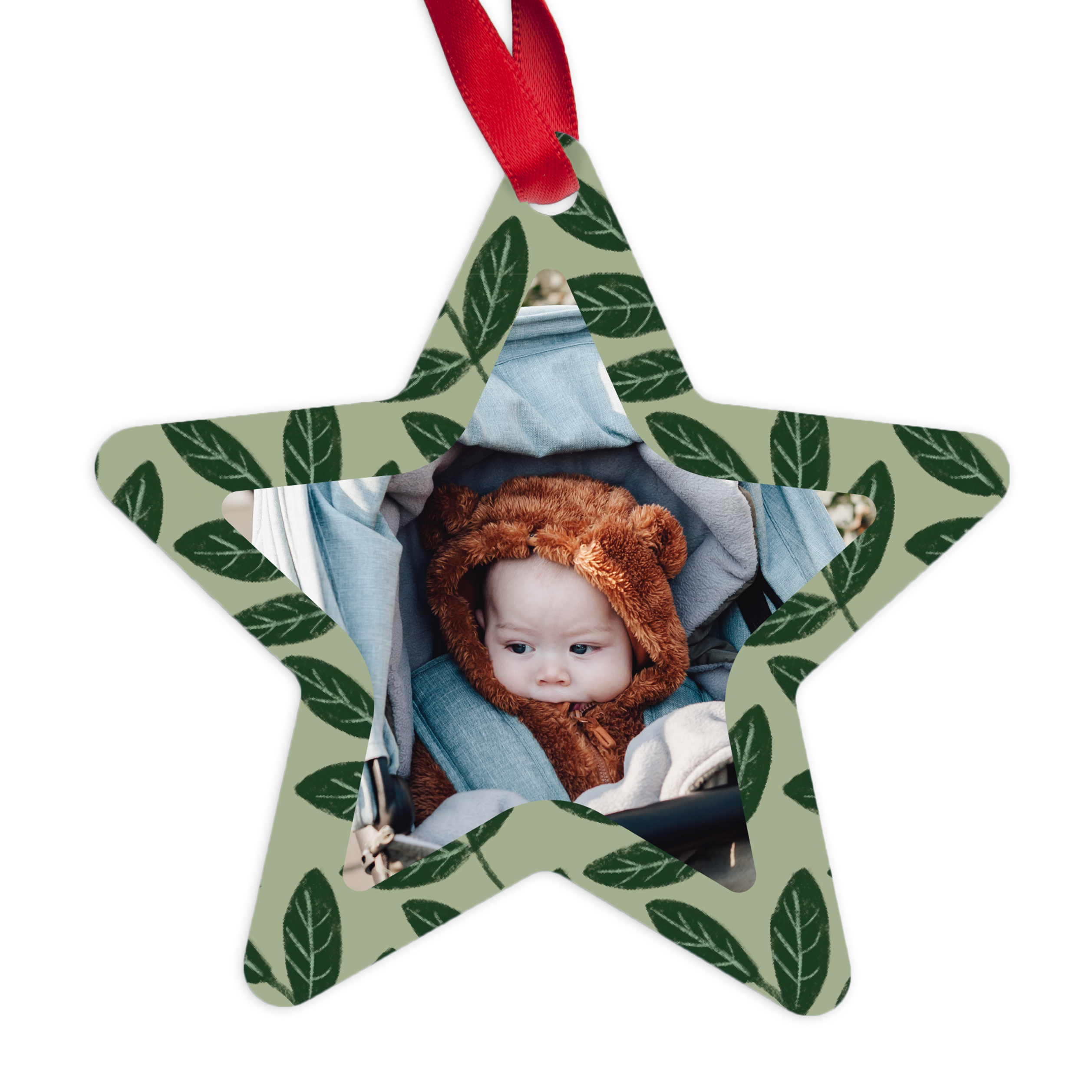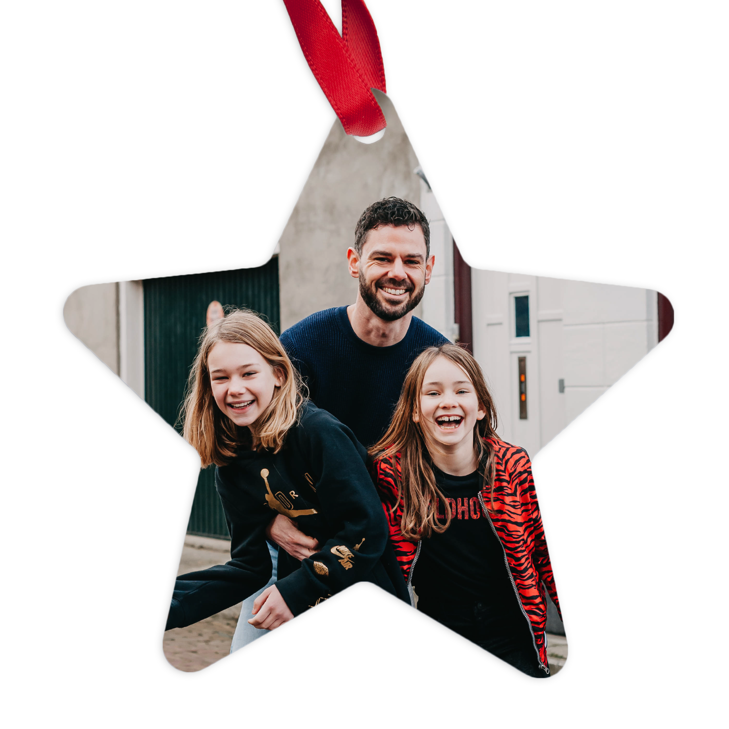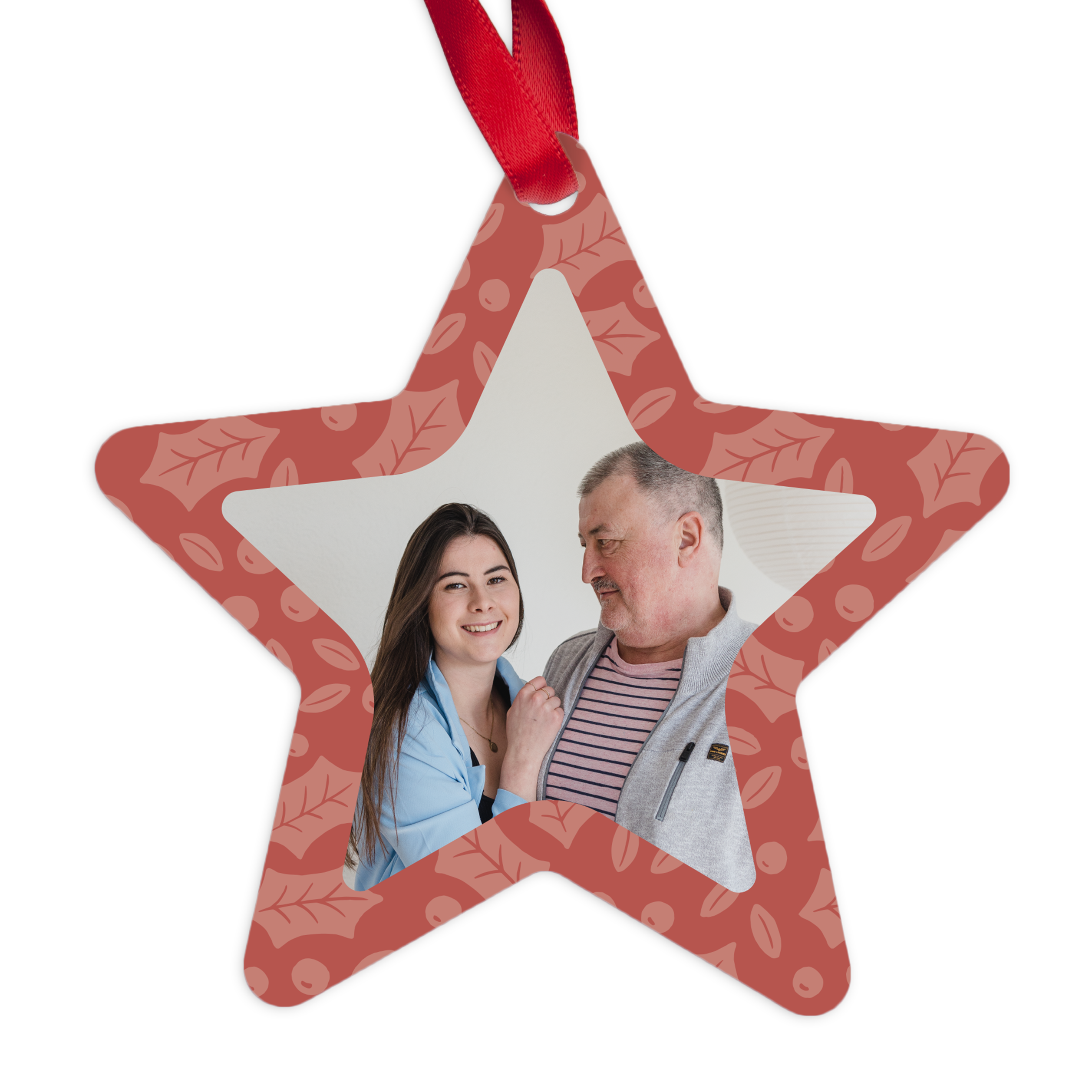 Bestellen Sie einen Weihnachtsanhänger in Sternform mit Ihrem eigenen Foto, Logo oder Text in einem einzigartigen Design. Wirklich originelle Weihnachtsdekoration!