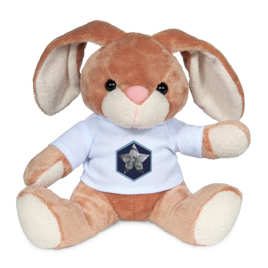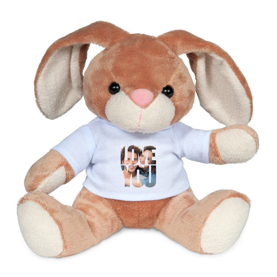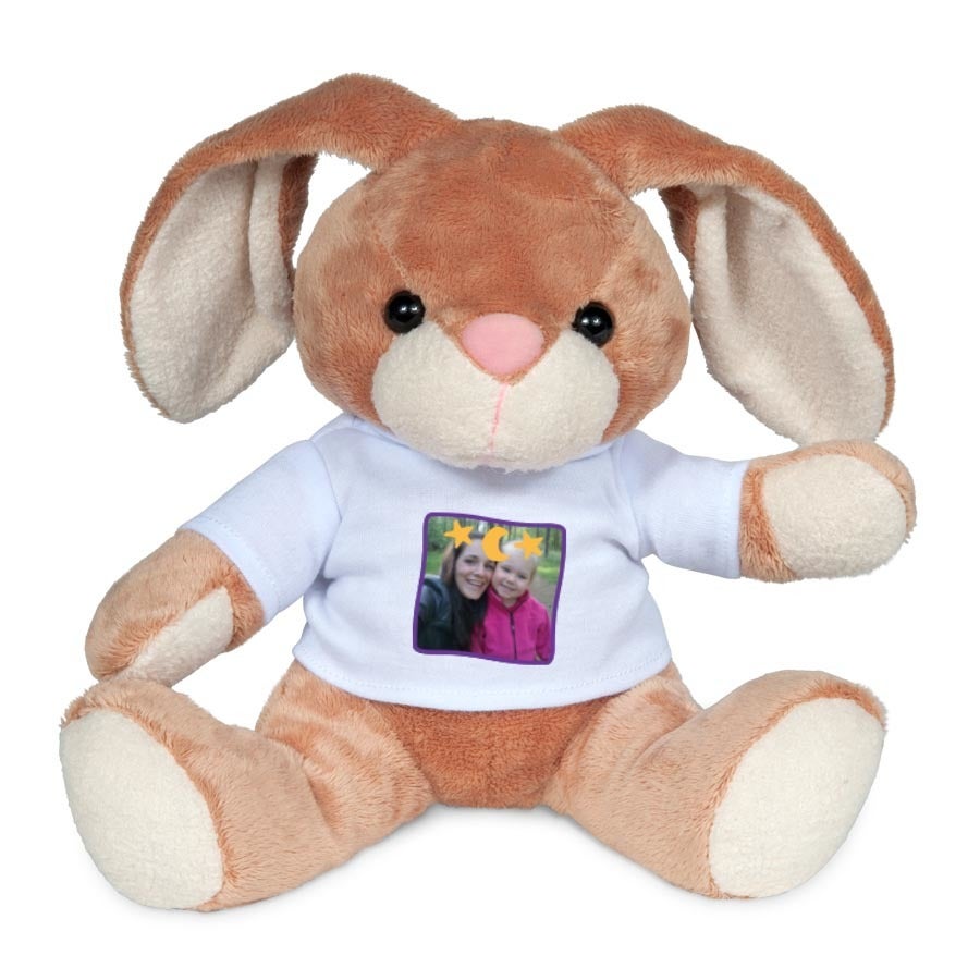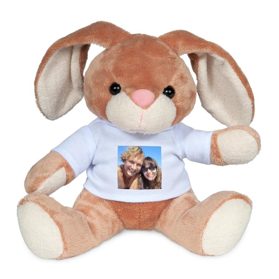 Ein kuschelweicher Hase mit deinem eigenen Foto und Text auf dem T-Shirt!