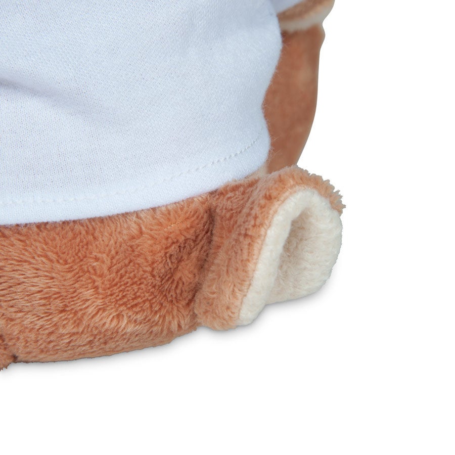 Mehr Informationen zum Hasen:Größe: 20 cm (ohne Ohren)Aufdruck: 5 x 5 cmMaterial T-Shirt: Baumwollmischung