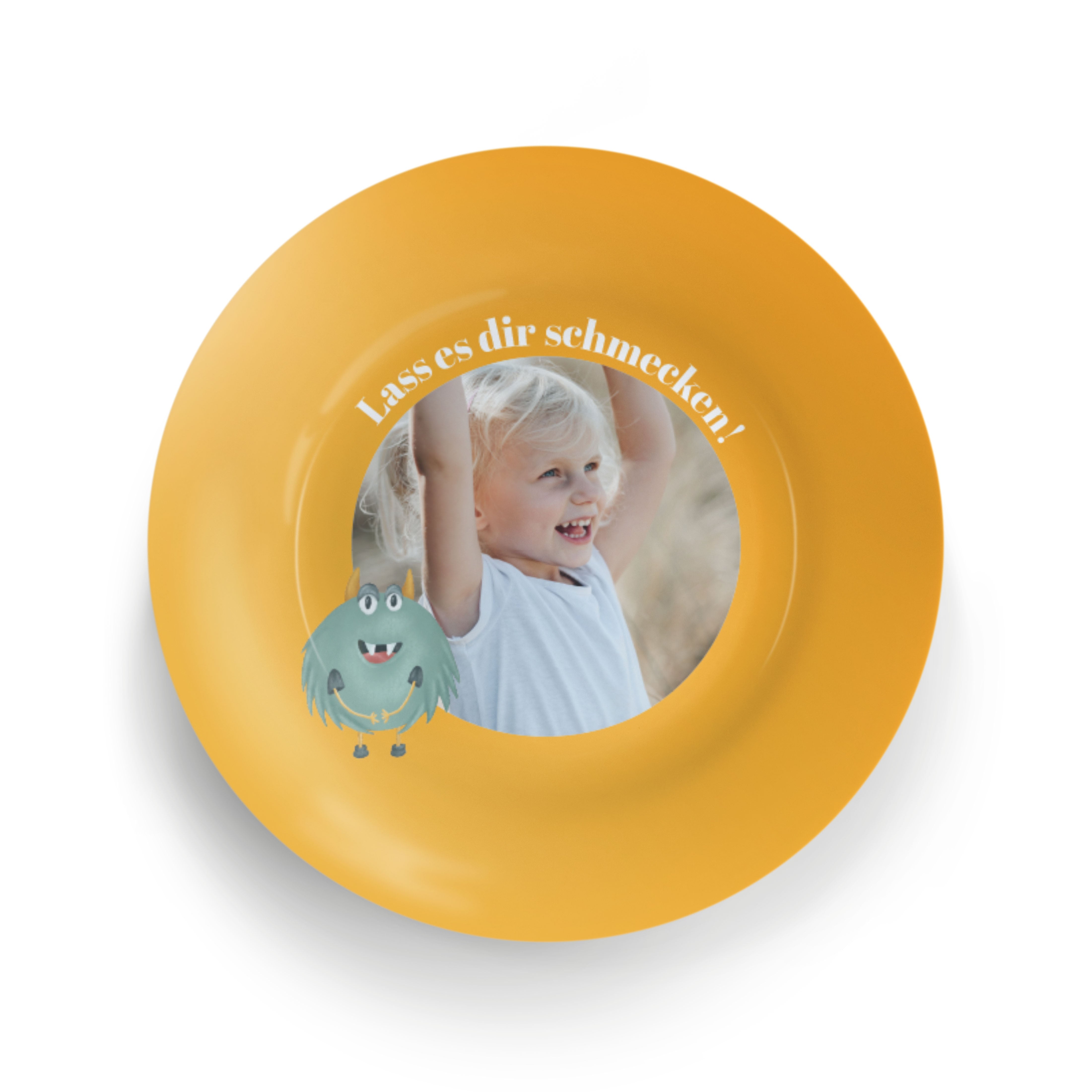Gestalten Sie einen persönlichen Kinderteller mit Ihrem Wunschfoto und Text. Mit verschiedenen Designs. Nahezu unzerbrechlich.