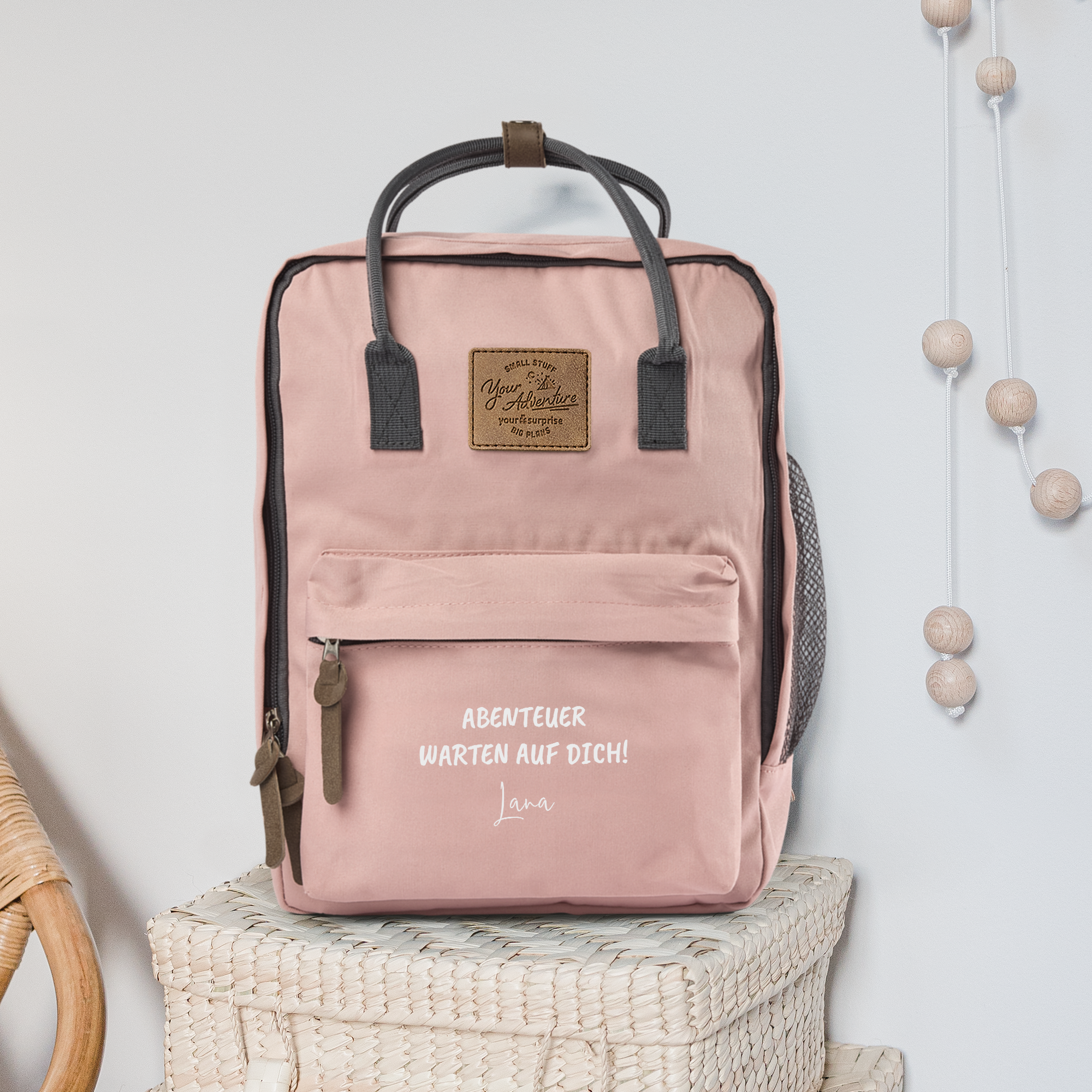 Mehr Informationen zum Kinderrucksack:Farbe: PinkMaße: 32 x 23,5 x 11 cmFassungsvermögen: 8 LiterMaterial: 98 % Polyester, 2 % PU-LederMarke: Beagles OriginalsPersonalisierung: mit NamenAufdruck: fotogen und in VollfarbeZusätzliche Informationen: Der Rucksack verfügt über ein geräumiges Hauptfach, ein zusätzliches Frontfach mit Reißverschluss und eine Seitentasche für eine Flasche sowie viele Taschen im Inneren und ein gepolstertes Fach, das für ein Tablet geeignet ist.