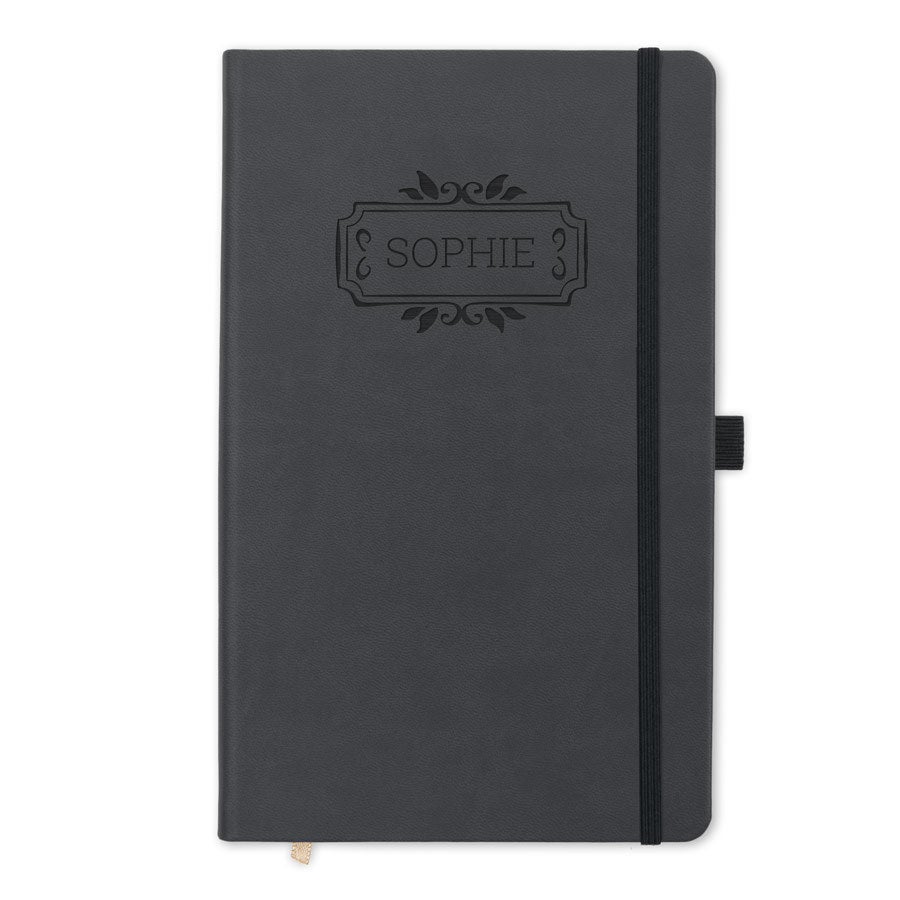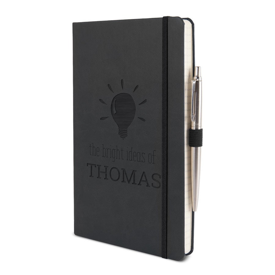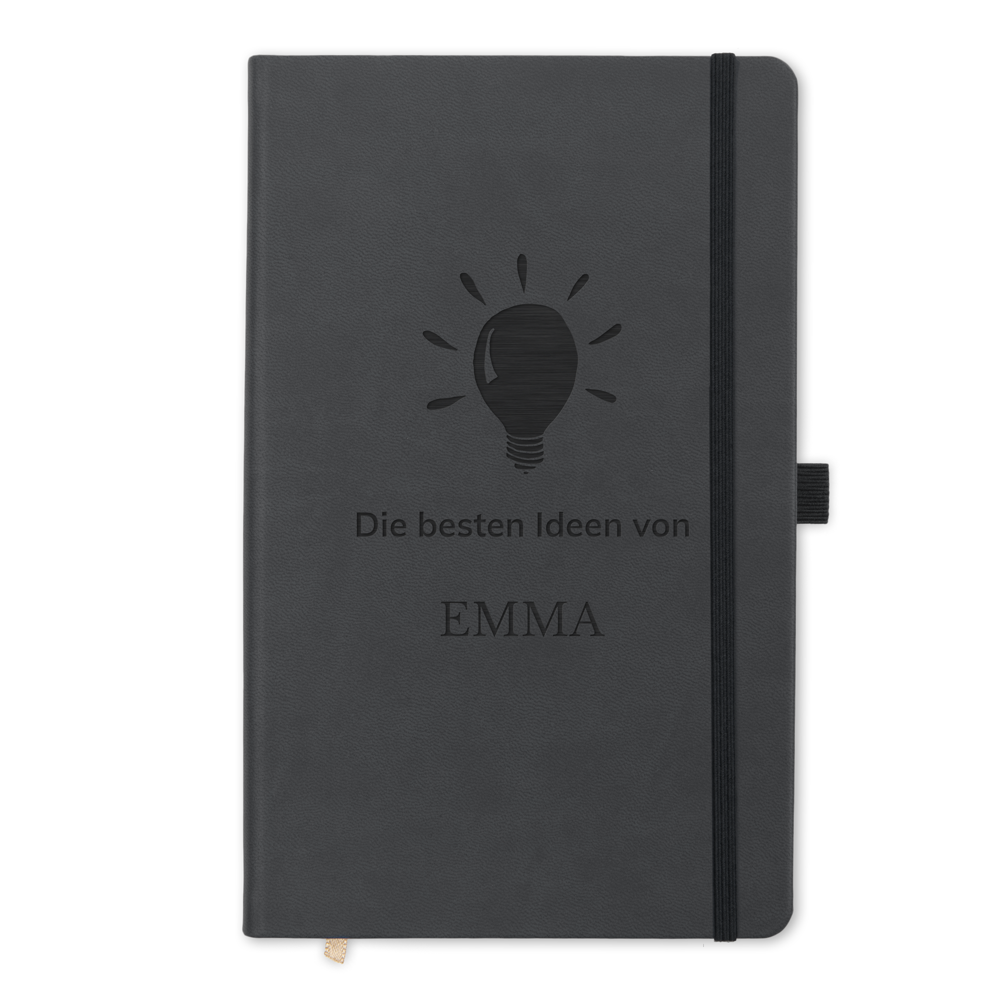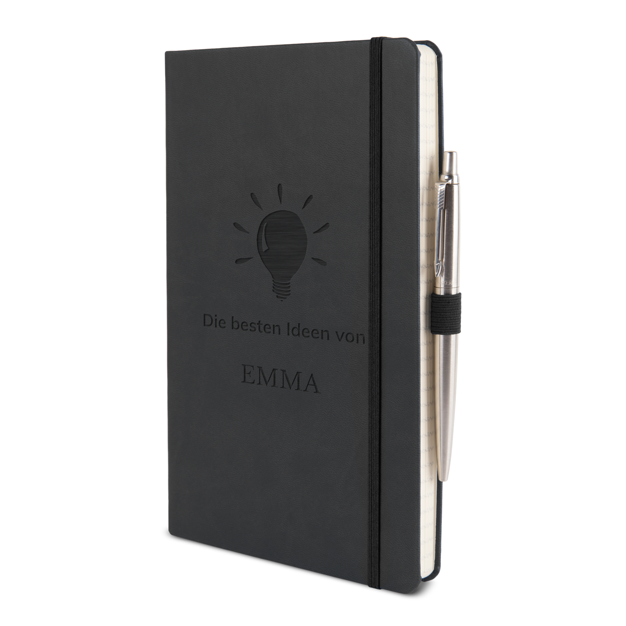 Super originelles und persönliches Notizbuch mit Namensgravur. Mit vielen fröhlichen Designs. Erhältlich in Schwarz und Blau!