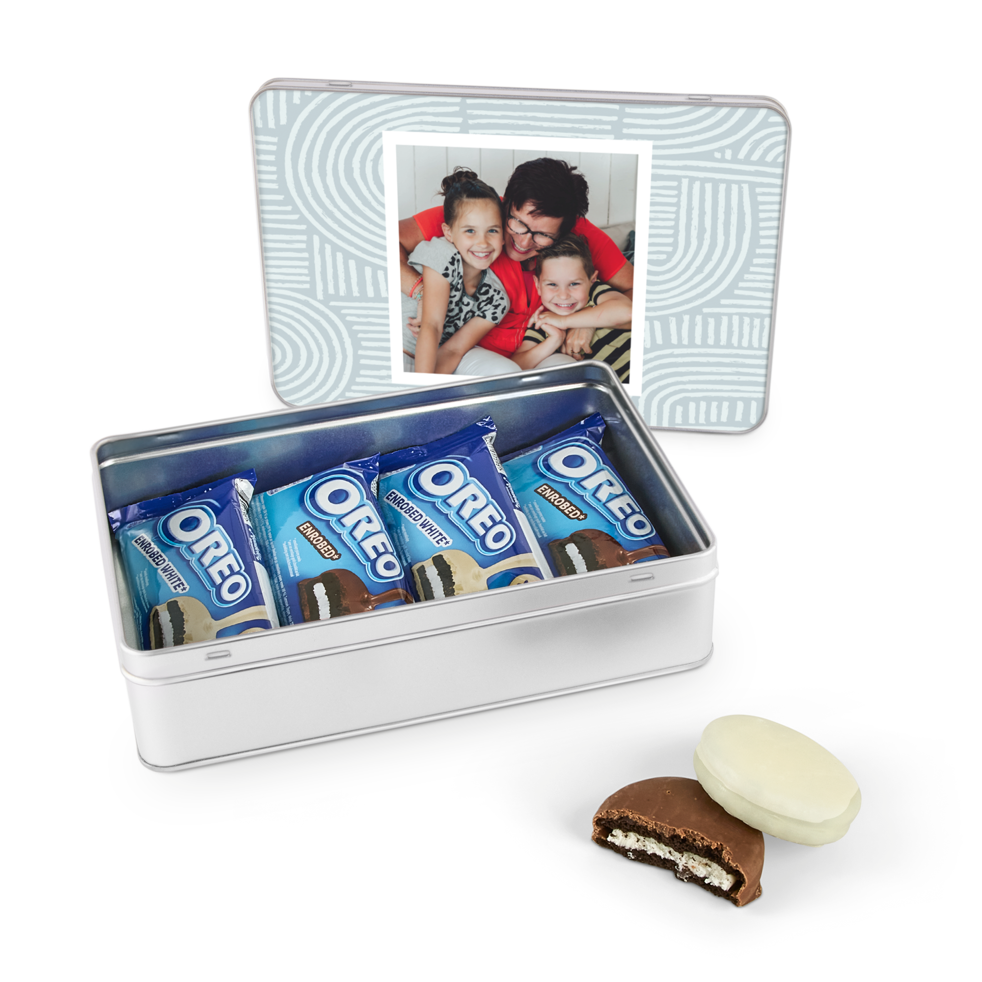 Super coole Vorratsdose mit Foto und/oder Namen! Gefüllt mit leckeren Oreo-Keksen, überzogen mit einer Schicht Schokolade.