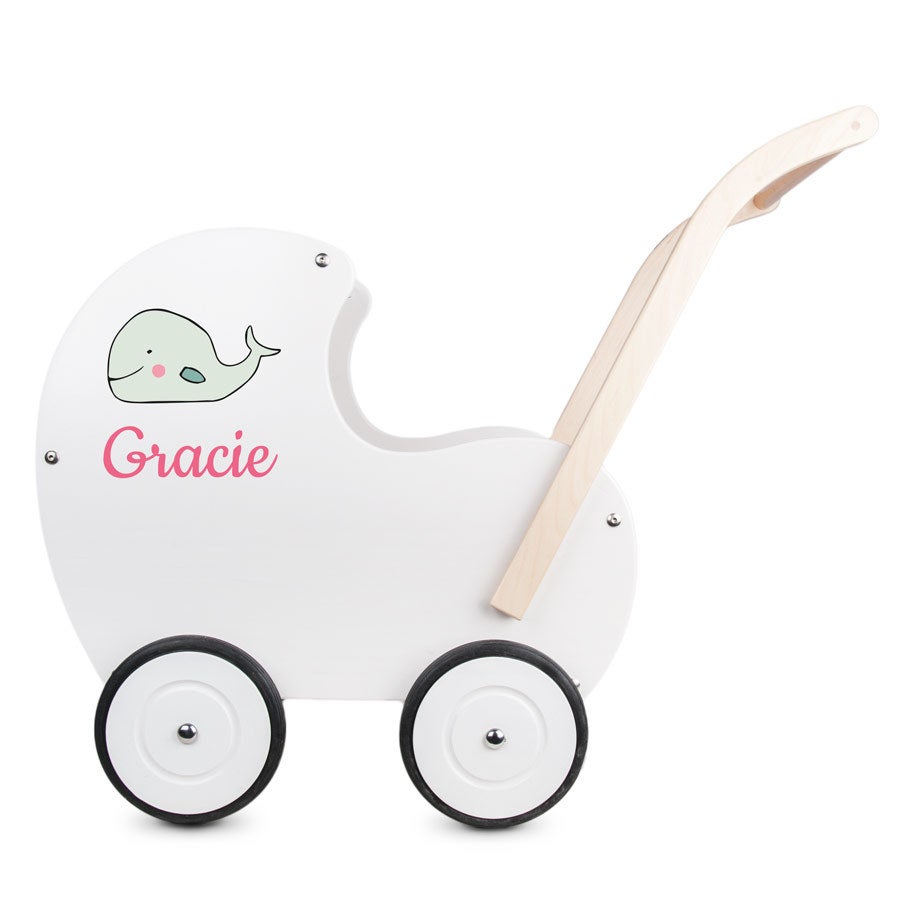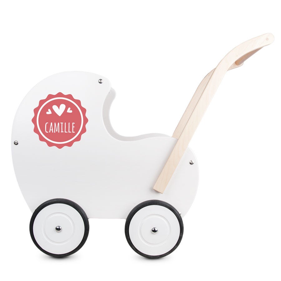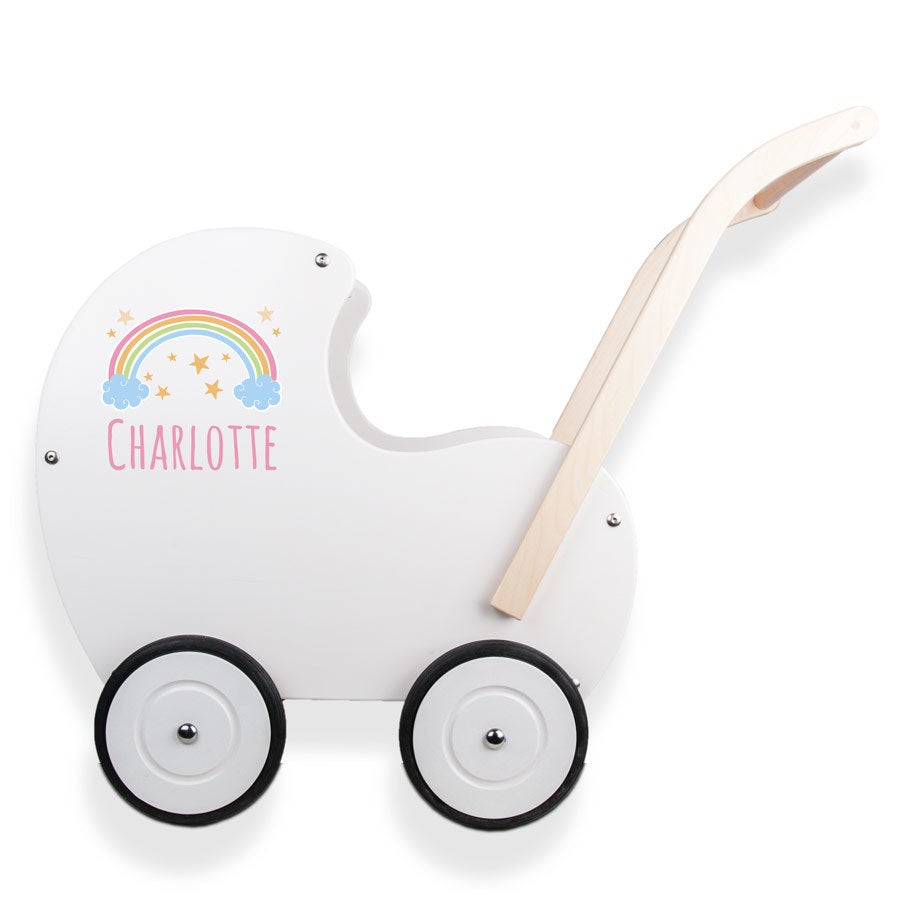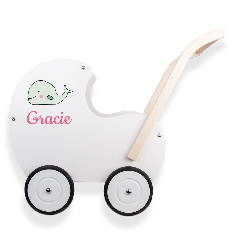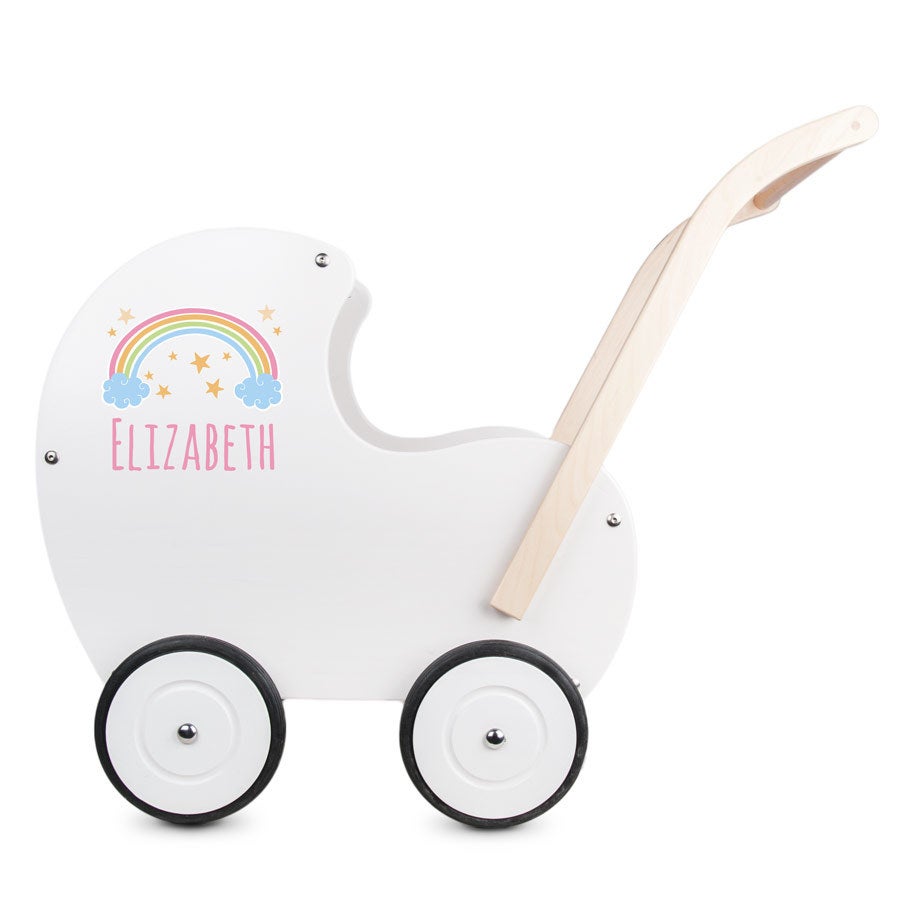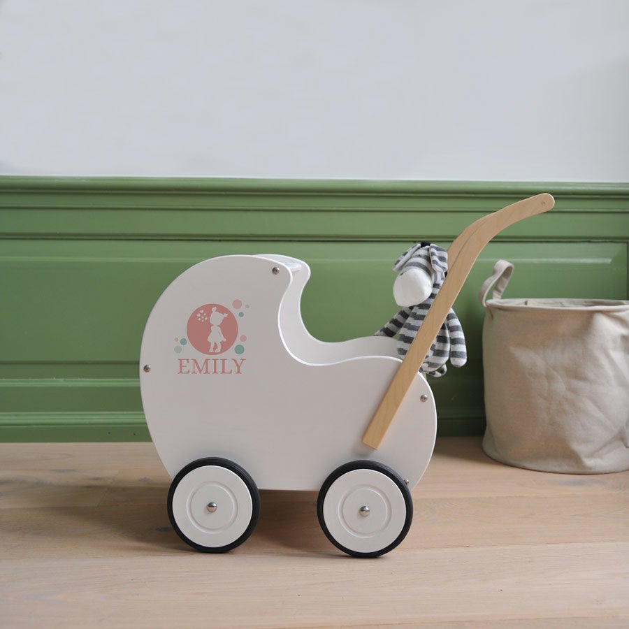 Kinderwagen aus Holz mit Namen. Ein einzigartiges Geschenk aus wunderschöner, hochwertiger, massiver Buche. Geeignet für Kinder, die bereits laufen können!
