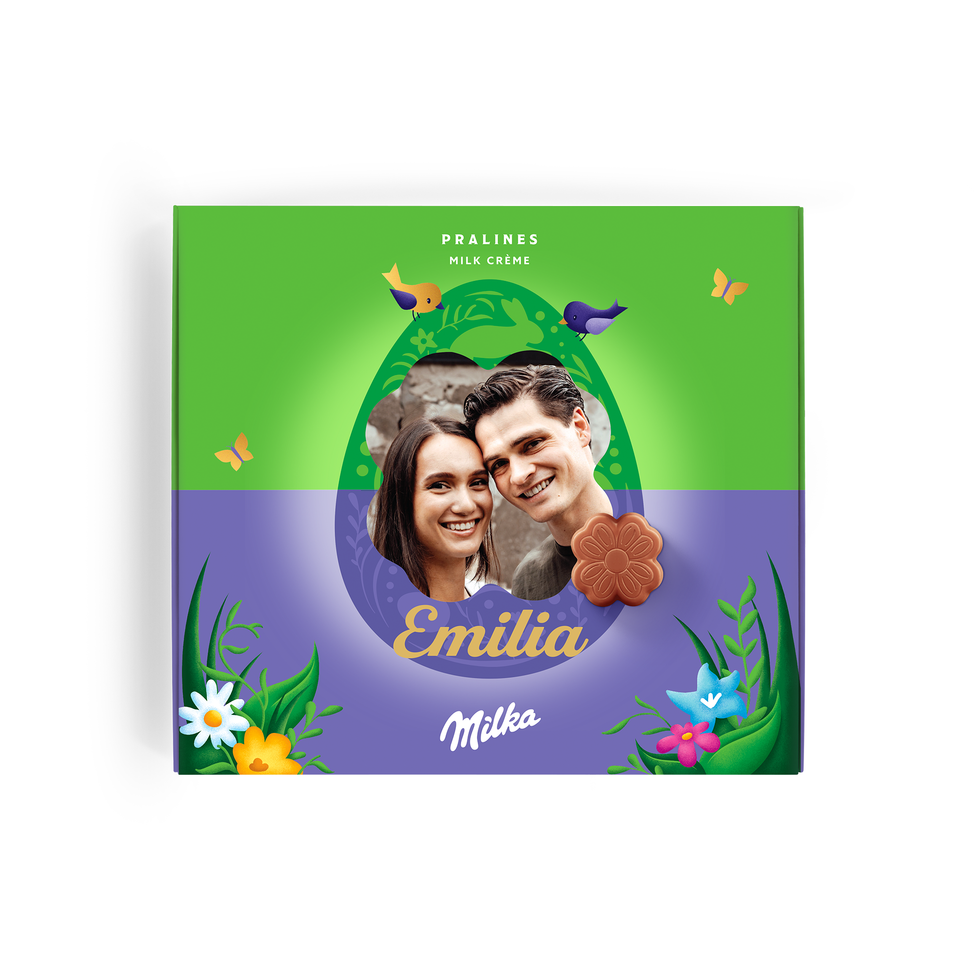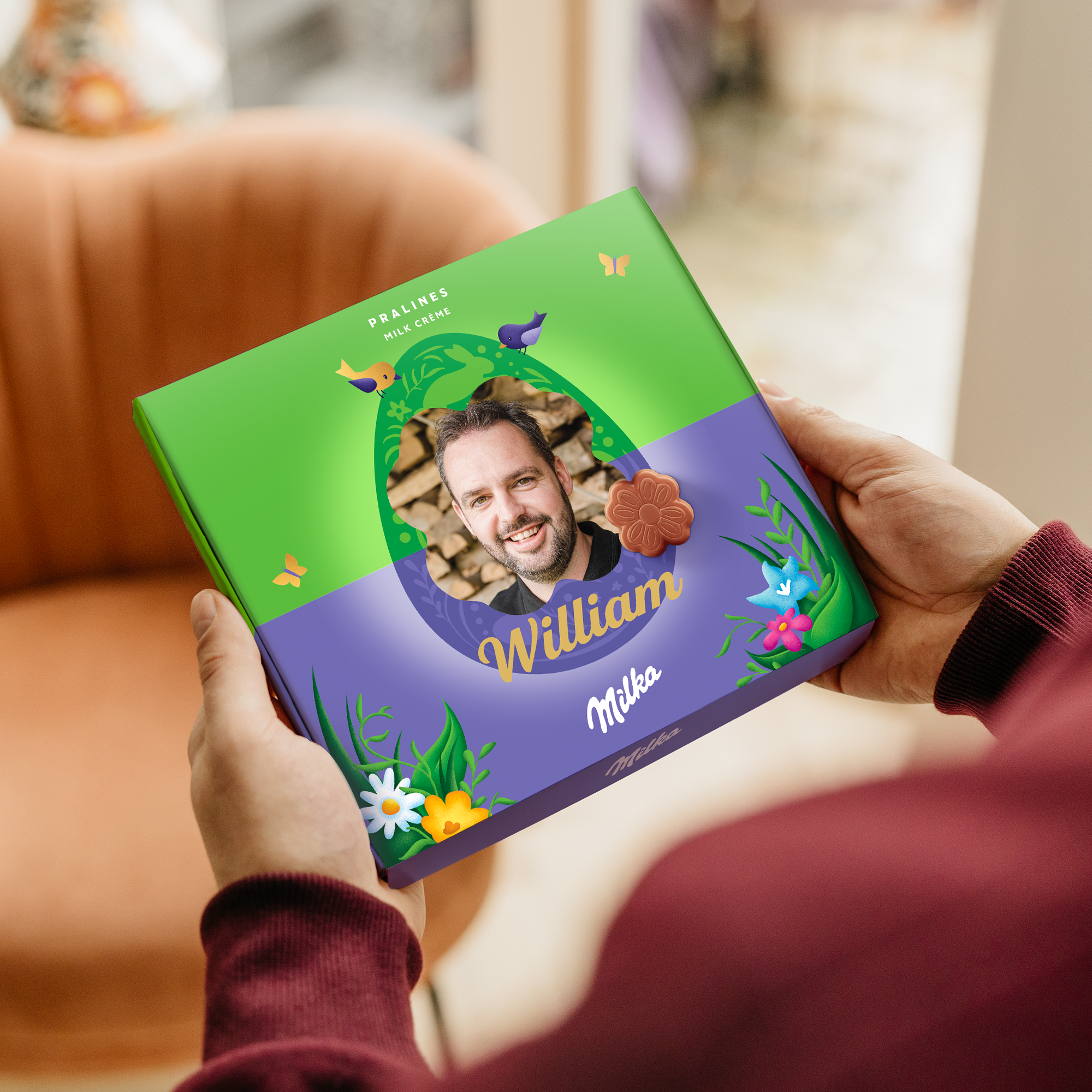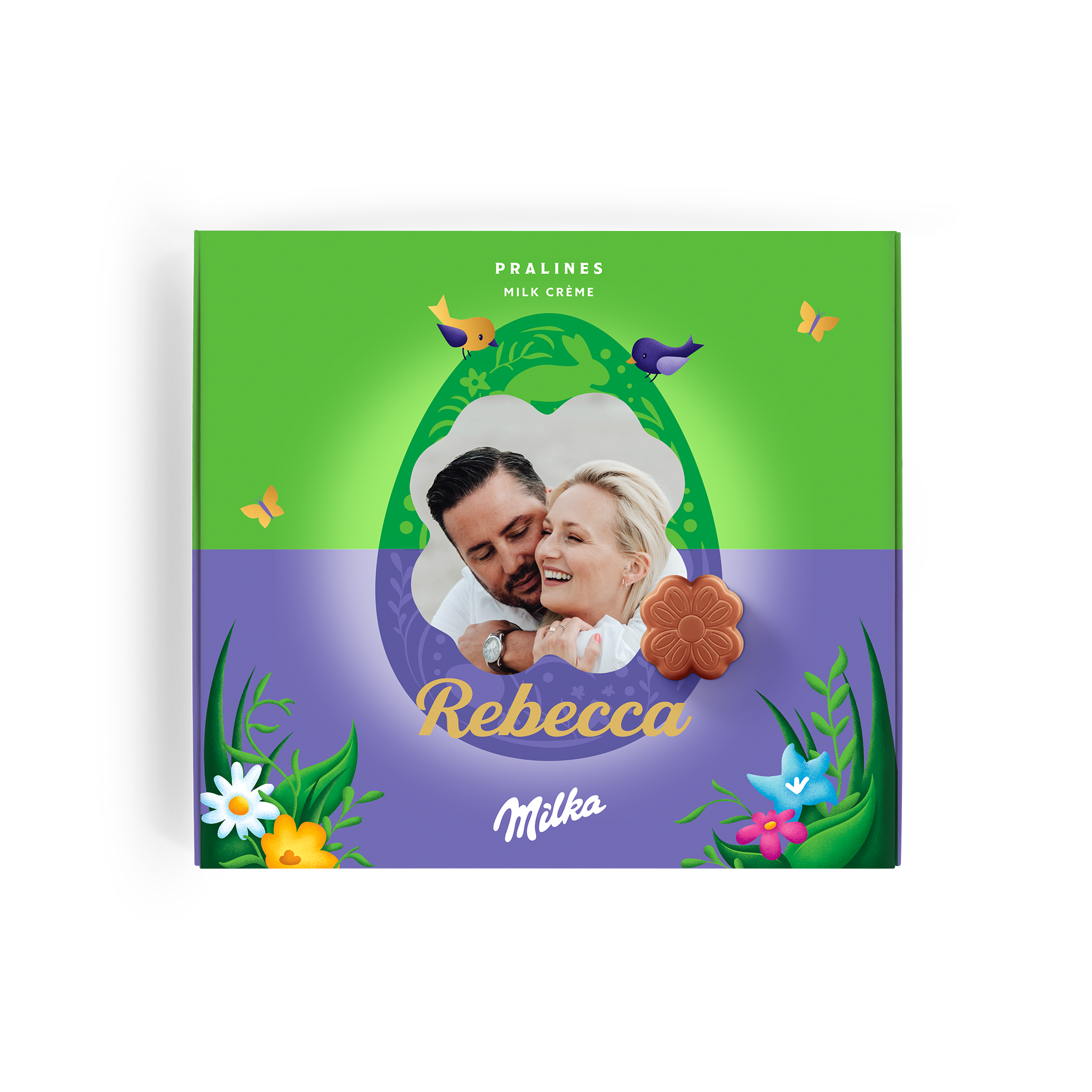 Special Sag es mit der Milka Pralinenbox zu Ostern. Köstliche Pralinen mit Namen, Foto und persönlicher Botschaft. Überrasche deine Liebsten!