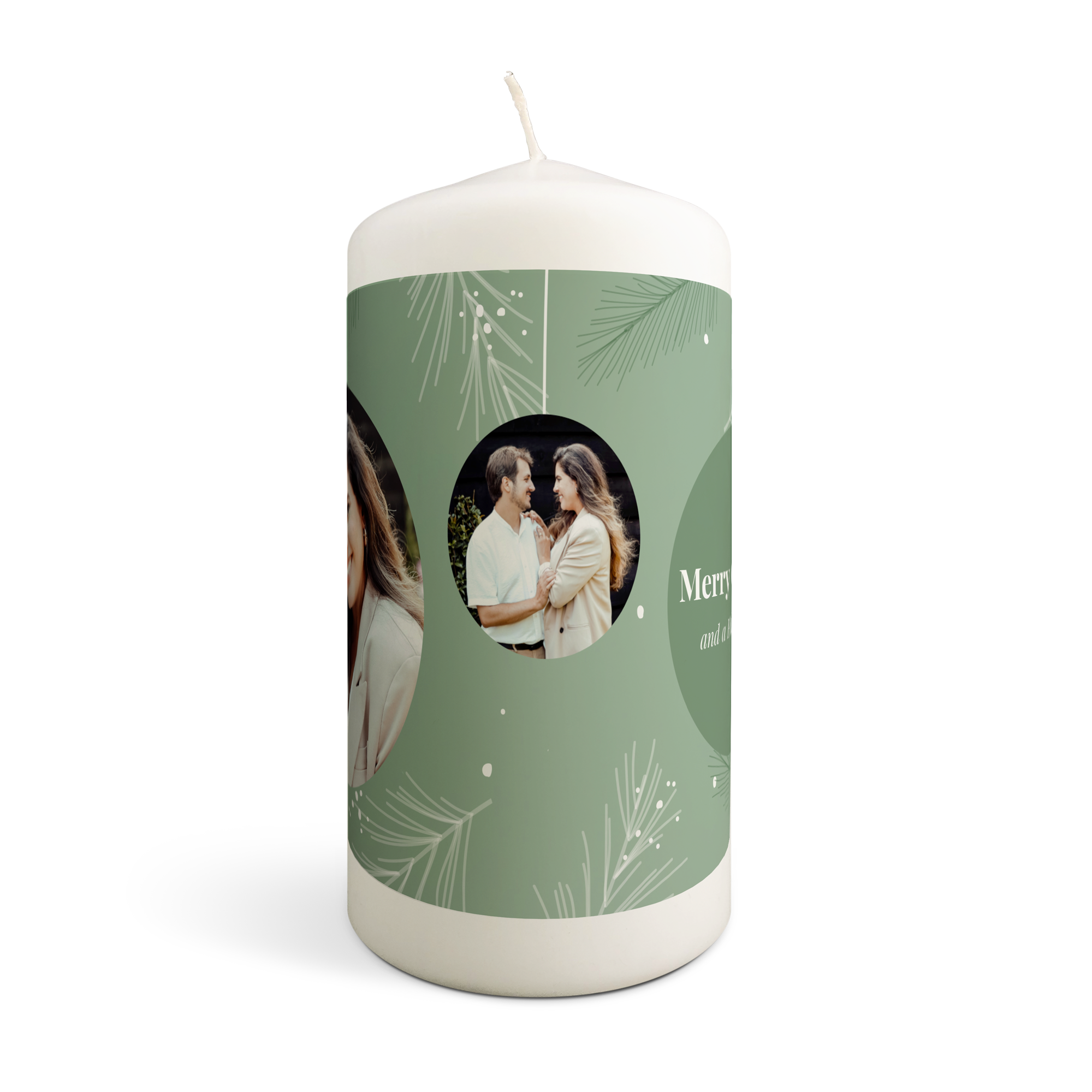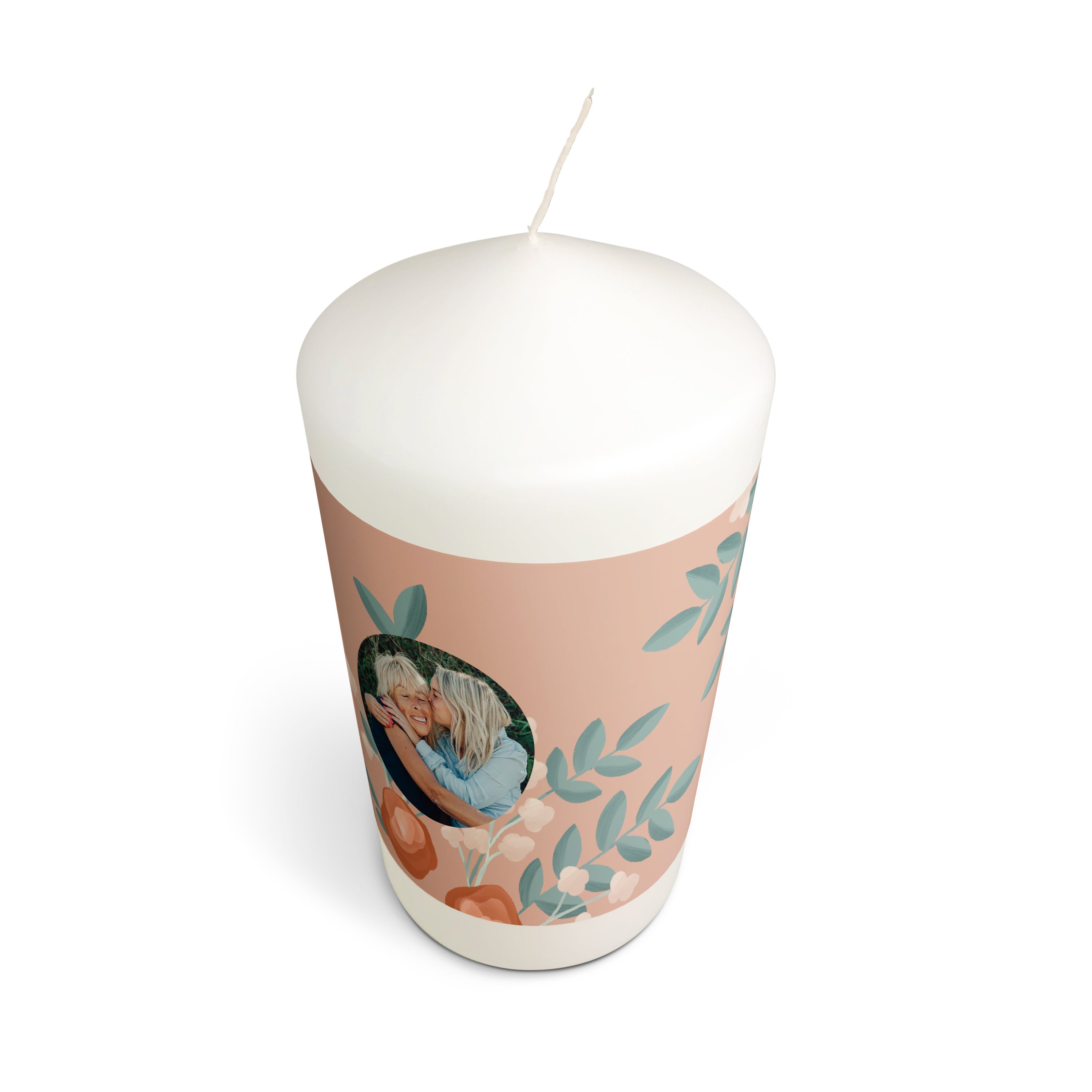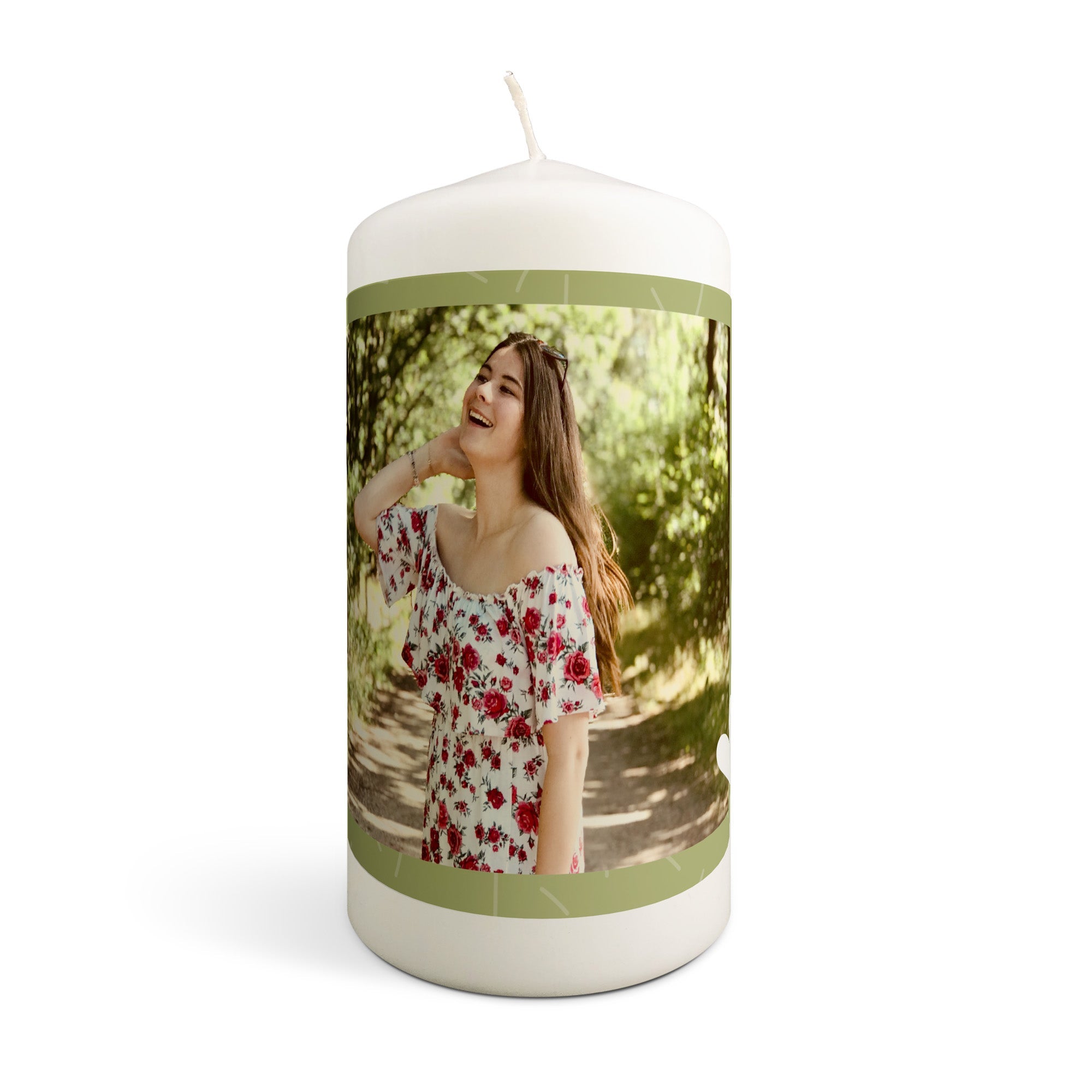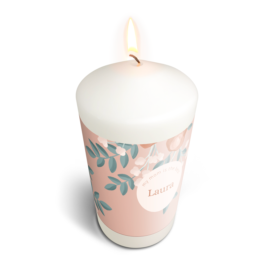 Eine personalisierte runde Kerze mit Ihrem eigenen Design, Maße: 19 x 10 cm.