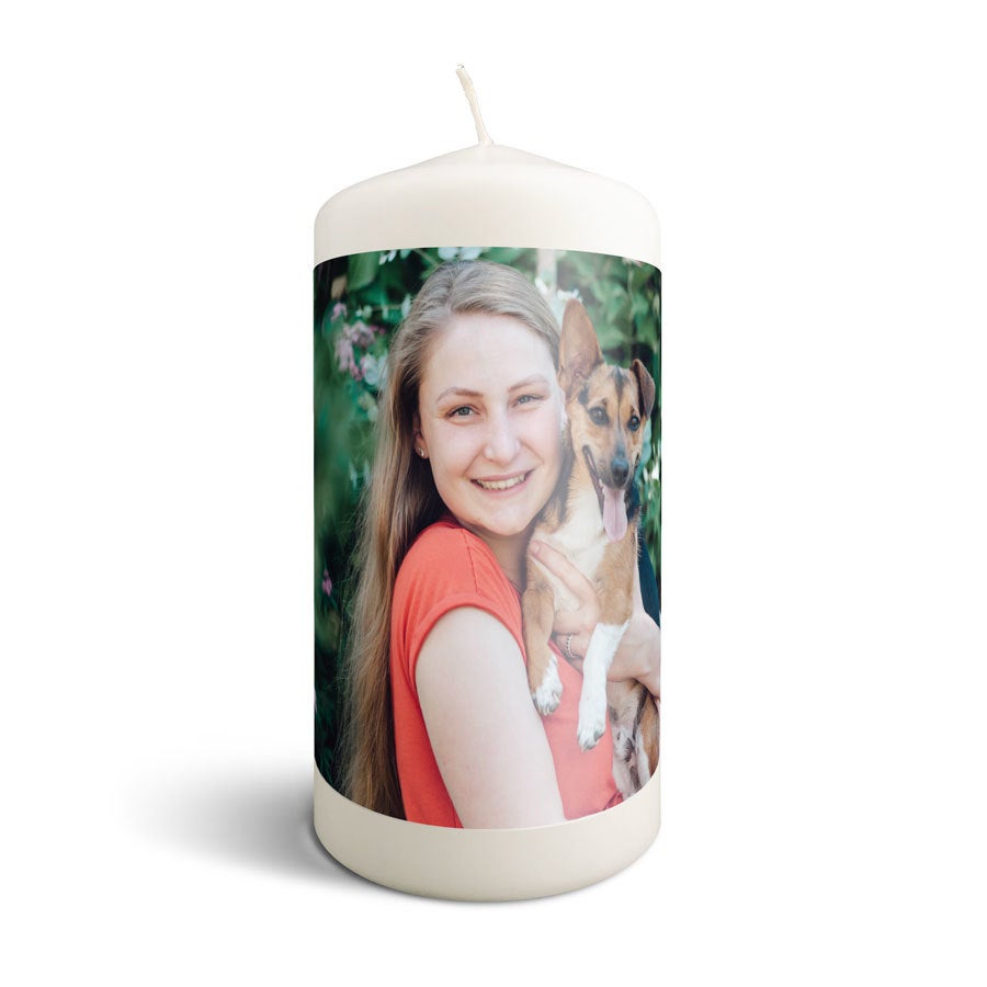 Weitere Informationen zur Kerze:Höhe: 19 cmDurchmesser: 10 cmBrenndauer: 60 Personalisierung: mit Foto, Namen und/oder Logo Druck: gestochen scharf und in Vollfarbe