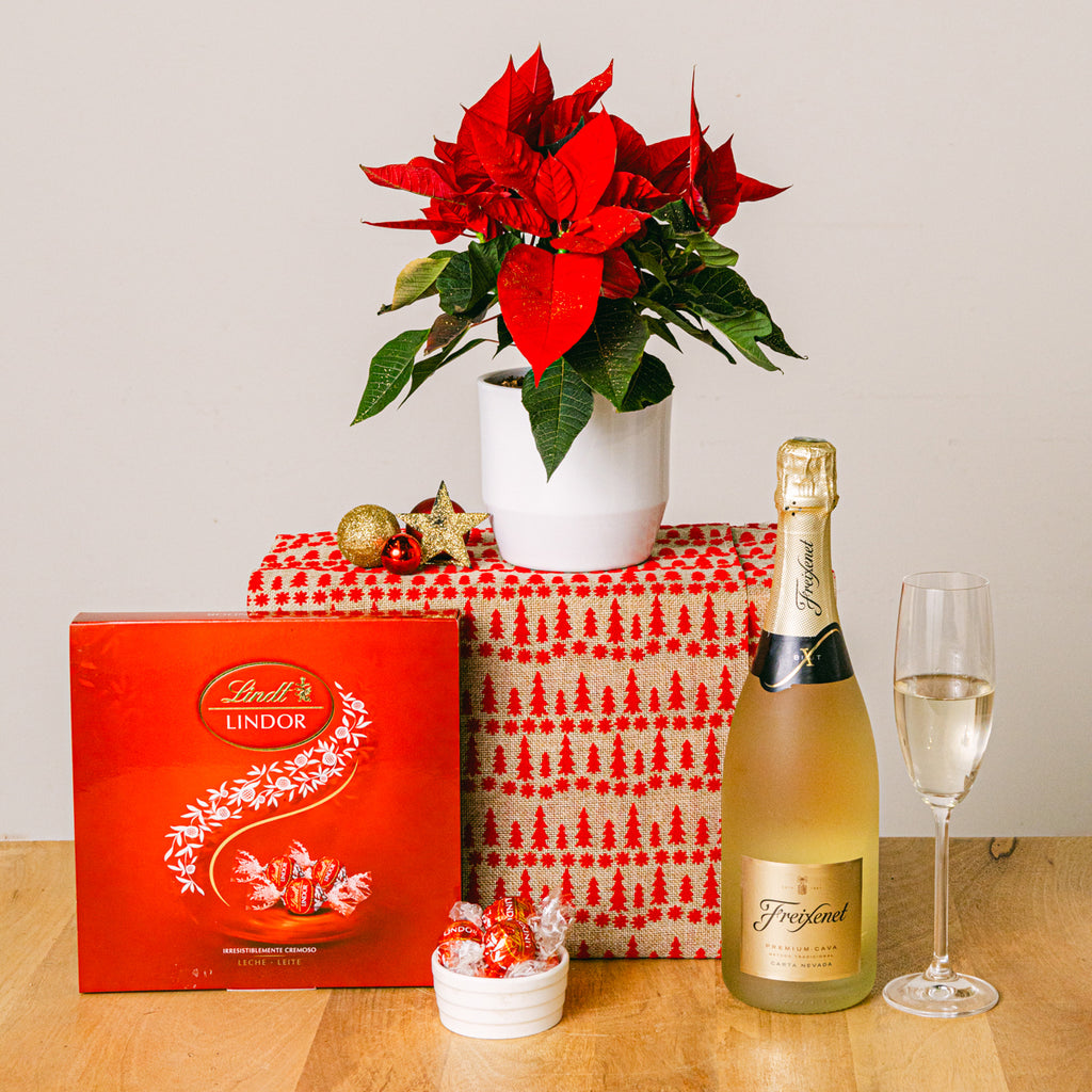 Feiern Sie Ihren Neuanfang mit diesem festlichen Geschenk. Es enthält eine Flasche Sekt, eine Schachtel feiner Milchschokolade und eine beeindruckende rot blühende Pflanze. Diese Pflanze, bekannt für ihre sternförmigen Blätter, ist das perfekte Symbol für den Beginn des Jahres 2025 und wird auch noch lange nach den Feierlichkeiten blühen. Das Geschenk enthält: - Weihnachtsstern im Topf. - Freixenet Cava Carta Nevada - Auswahl an kleinen Schweizer Schokoladenpralinen, 44 g.