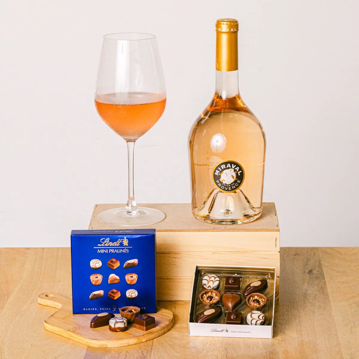 Ein delikates, exquisites Geschenkset mit einem handverlesenen Miraval Roséwein in einer wunderschönen Flasche, die uns in jedem Glas einen Vorgeschmack auf den Geschmack gibt. Hergestellt aus den besten Trauben der Sorten Cinsault und Grenache aus der französischen Provence, erhält dieser Wein eine zartrosa Farbe und ein ausgeprägtes Bouquet von frischen Früchten. Jeder Schluck ist voller Zitrusnoten, während sein salziger Abgang eine interessante Kombination mit der ebenfalls im Geschenkset enthaltenen Schachtel Mini-Pralinen bildet. Das Geschenkset enthält: Studio By Miraval Roséwein (75 cl) * Auswahl an Mini-Schweizer Schokoladenpralinen (44 g)