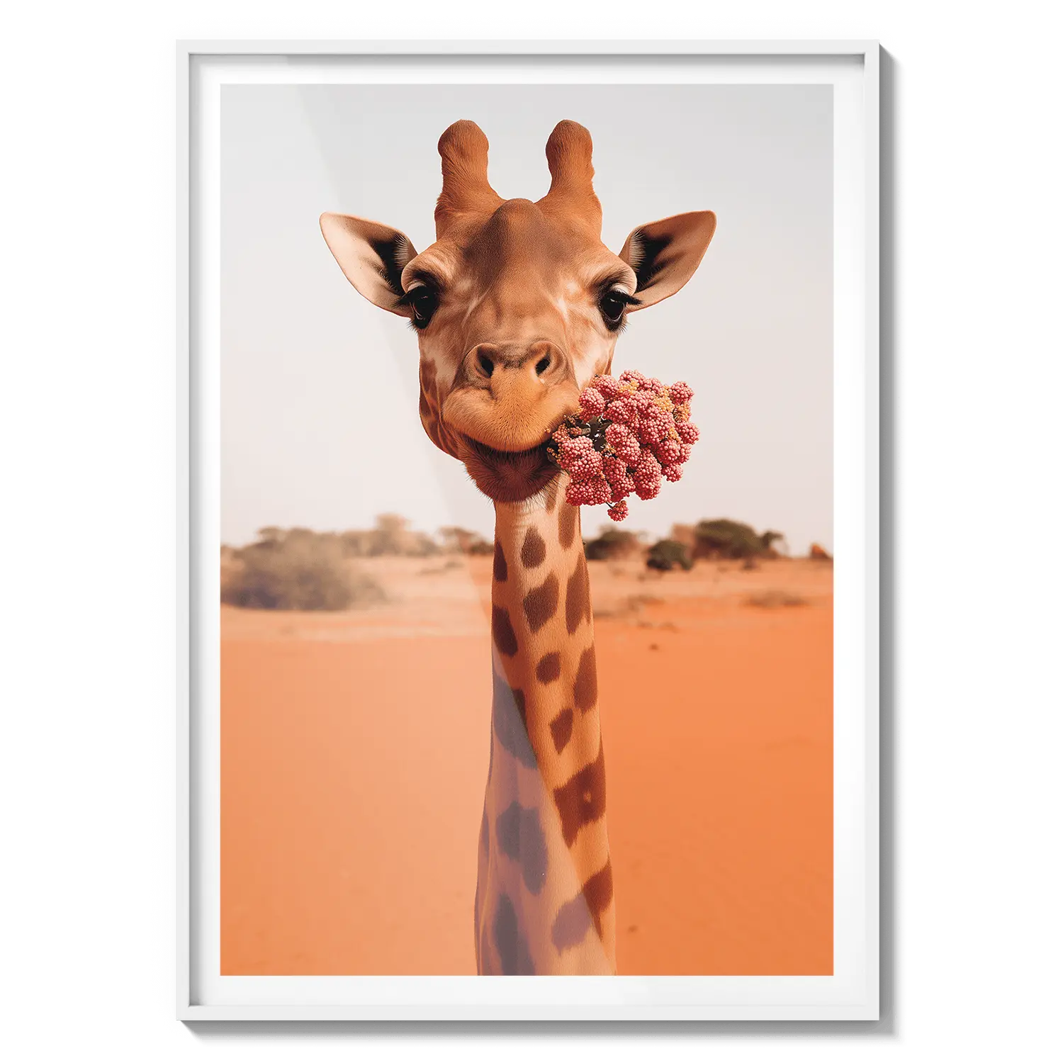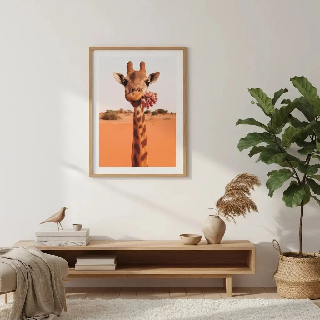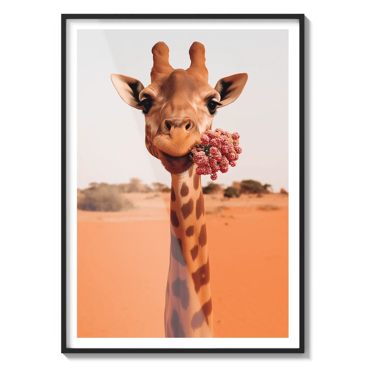 Eine sanfte Giraffe, illustriert in warmen Tönen, die ein zartes Gefühl von Freude und Freundlichkeit vermittelt. Ein entzückendes Kunstwerk, um Zuneigung zu teilen.