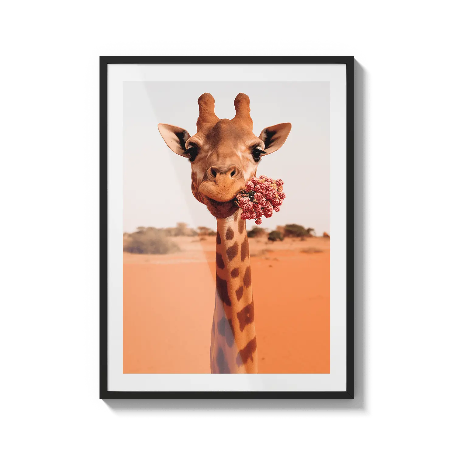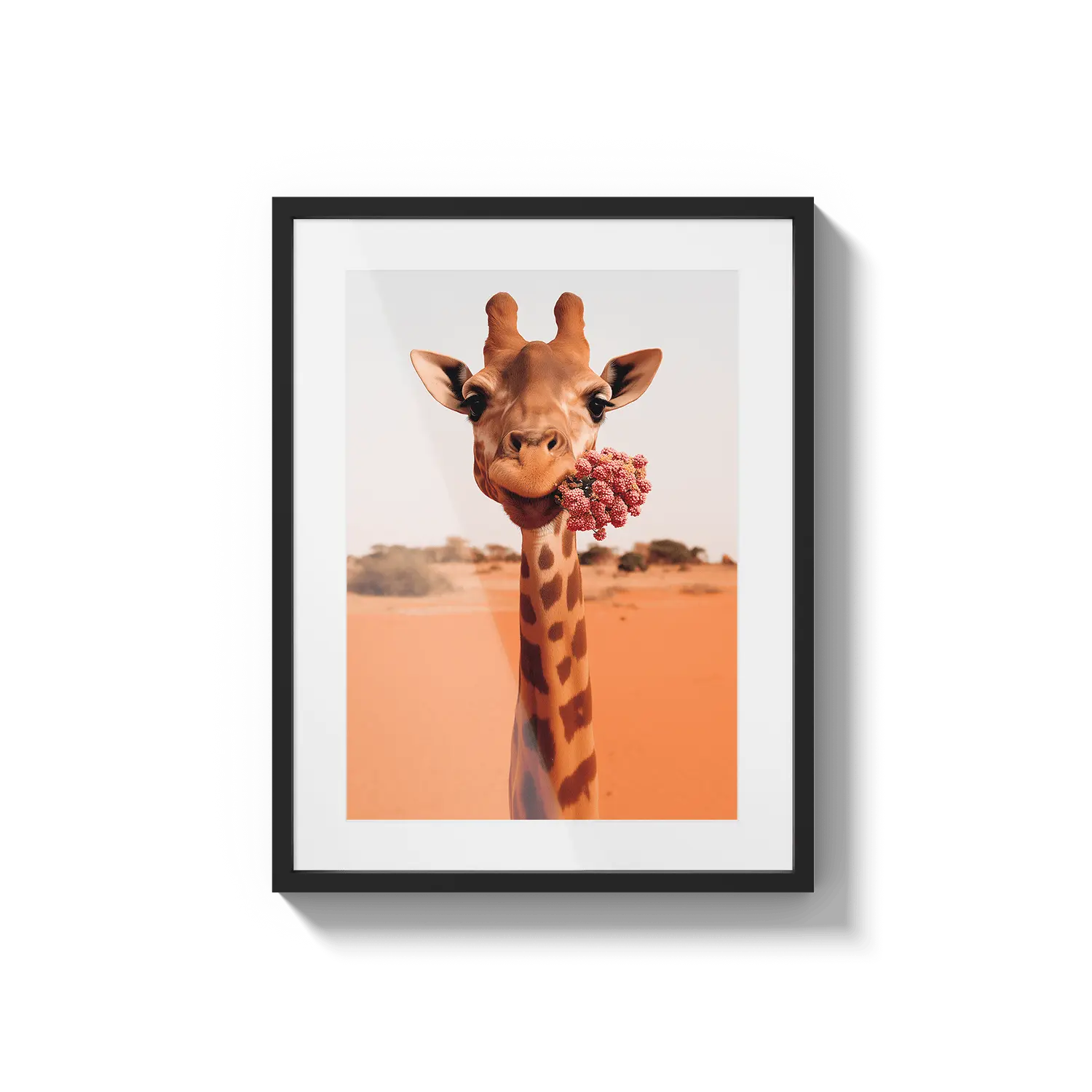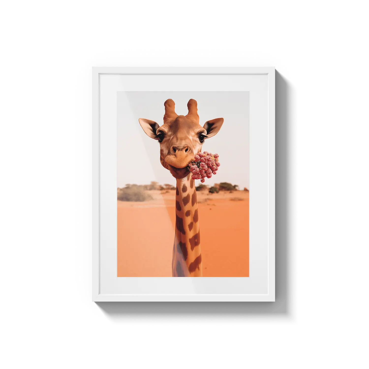 Eine sanfte Giraffe, illustriert in warmen Tönen, die ein zartes Gefühl von Freude und Freundlichkeit vermittelt. Ein entzückendes Kunstwerk, um Zuneigung zu teilen.