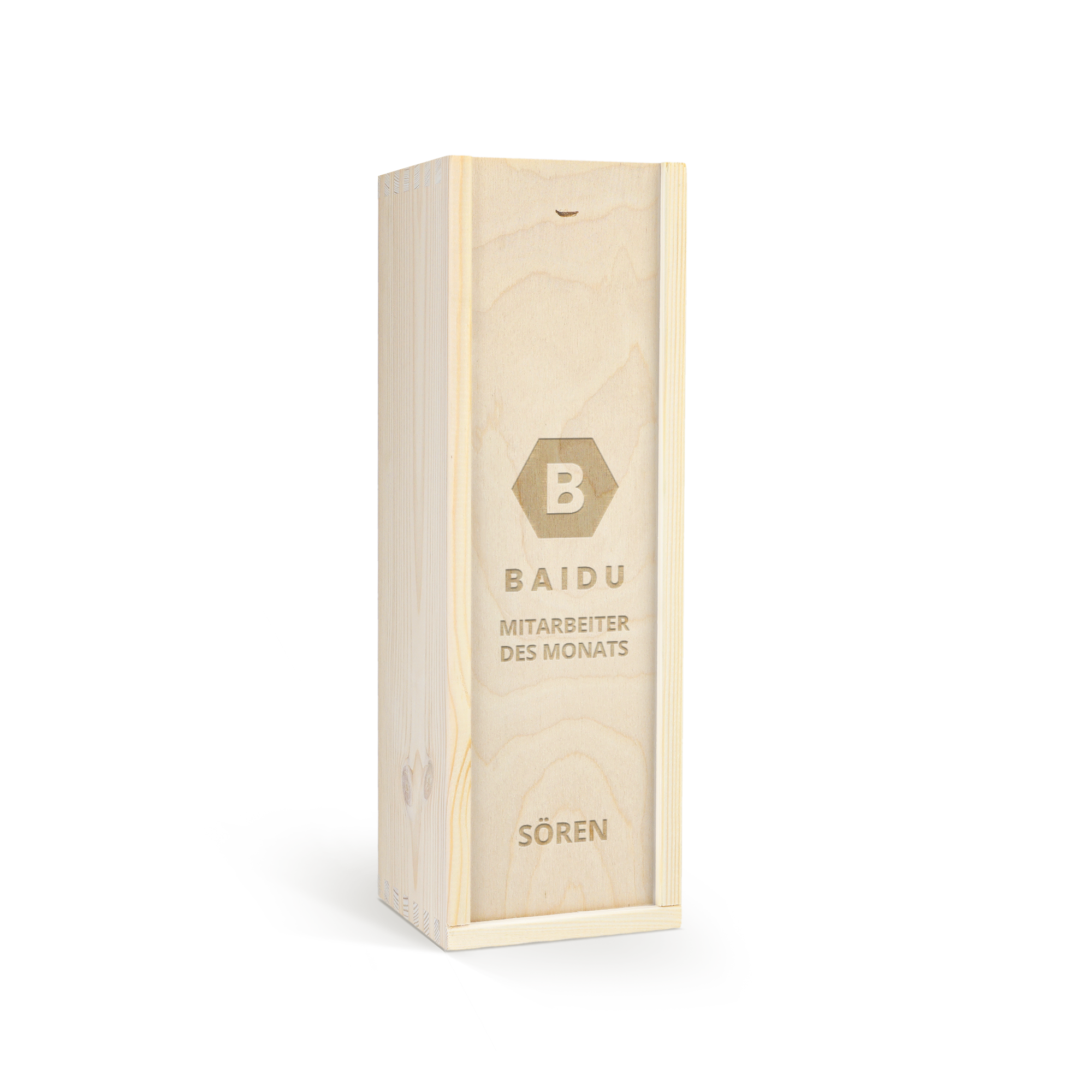 Mehr Informationen zu dieser Holzkiste:Passend für eine handelsübliche 75 cl FlaschePersonalisierung: mit Namen oder TextPlatzierung der Personalisierung: auf dem DeckelPersonalisierungsart: hochwertige GravurAußenmaße: 36,5 x 12 x 11 cmInnenmaße: 34 x 9,5 x 9 cmDeckelmaße: 35,6 x 10,2 x 0,3 cmExtra: inklusive stylischem herausnehmbarem InlayHergestellt aus FSC-zertifiziertem Holz.Holz ist ein Naturprodukt. Ihr Geschenk kann daher leicht von den Beispielbildern auf der Website abweichen.