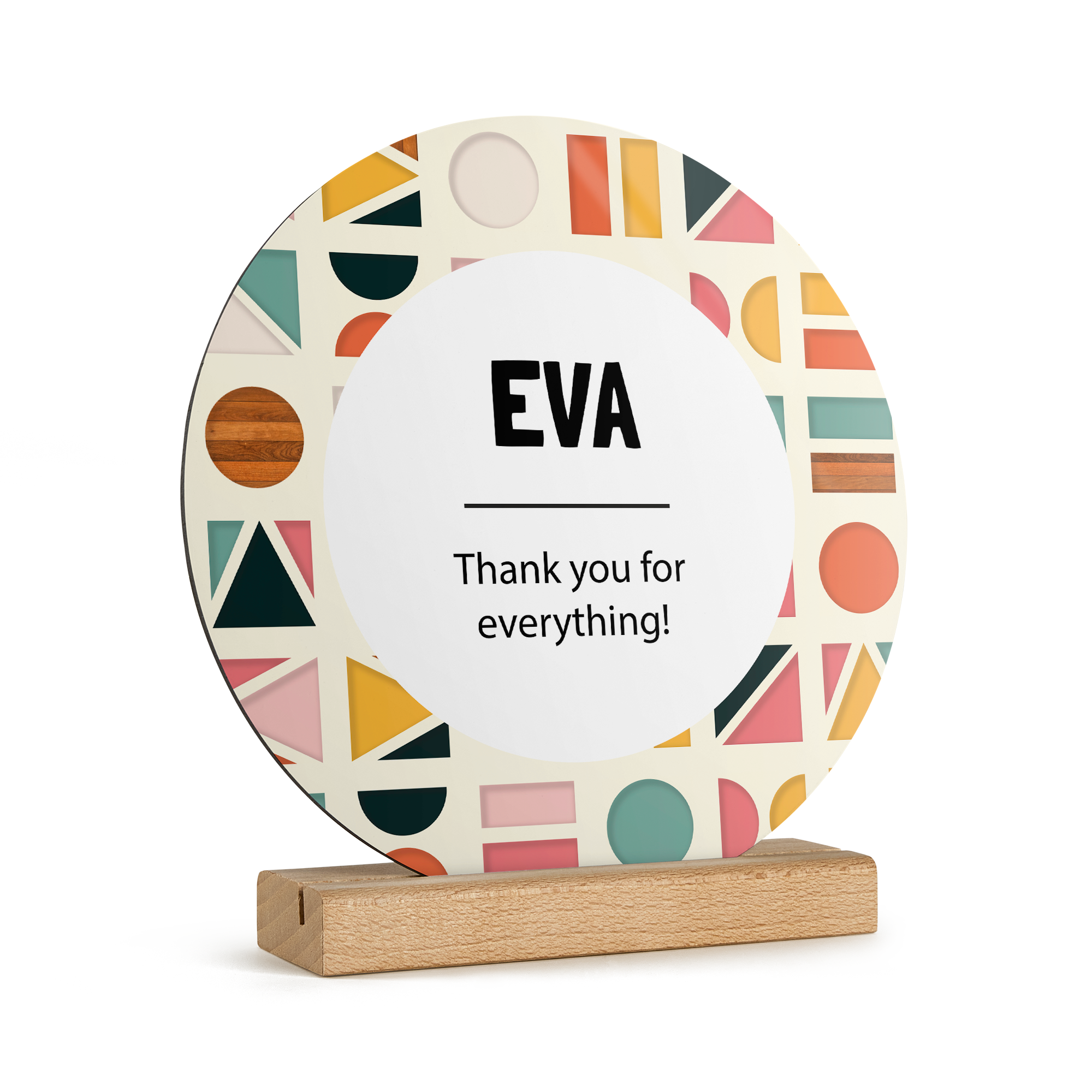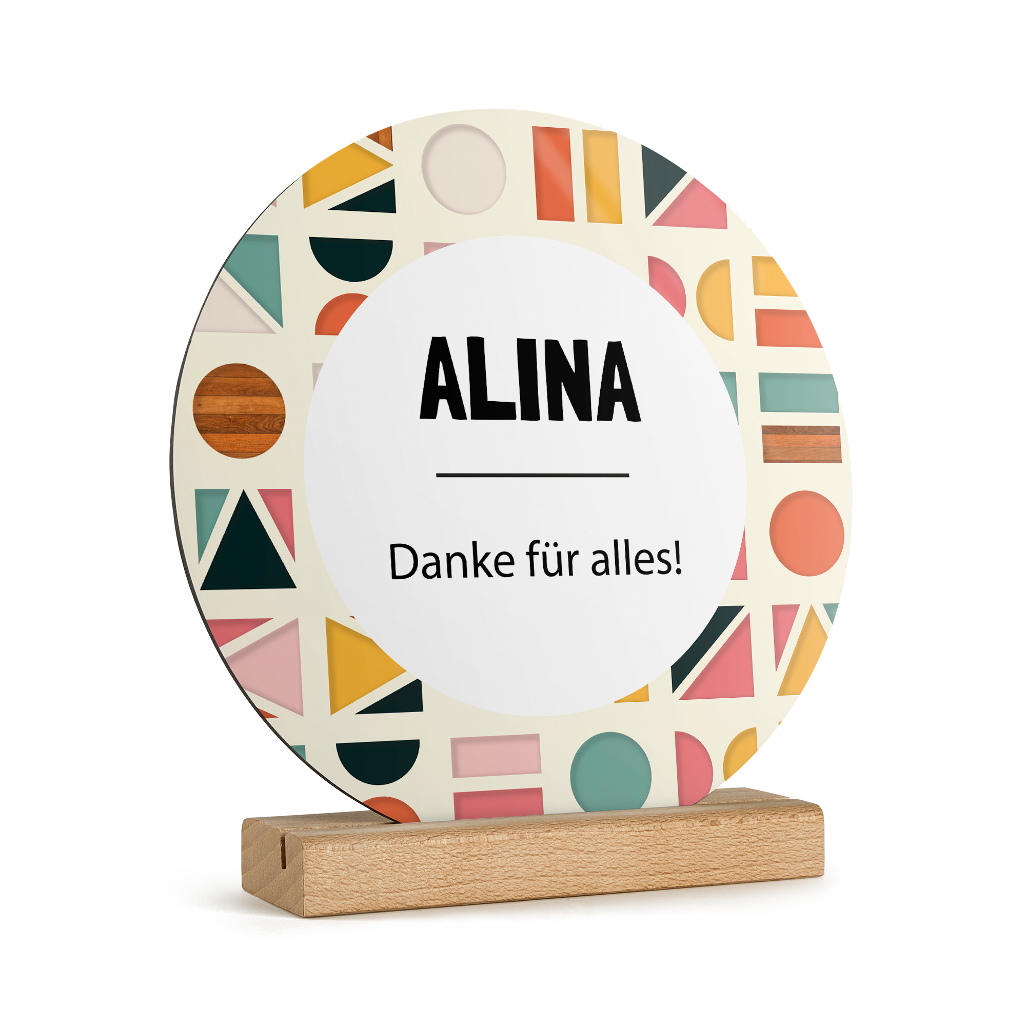Weitere Informationen zur Holzplatte:Form: quadratischMaterial: Hochwertiges SperrholzVeredelung: Glänzende BeschichtungPlattenmaße: 23 x 20 x 20 x 0,3 cmStändermaße: 15 x 5 x 2 x 2 cmPersonalisierung: mit Foto, Text und/oder LogoDruck: in klaren, kräftigen Farben