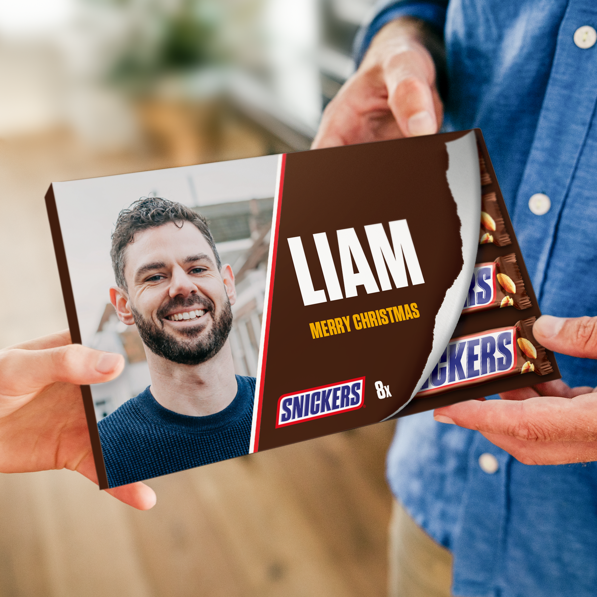 Personalisierte Snickers-Geschenkbox mit Foto, Namen und/oder persönlicher Nachricht Ihrer Wahl – perfekt für Schokoladensüchtige!