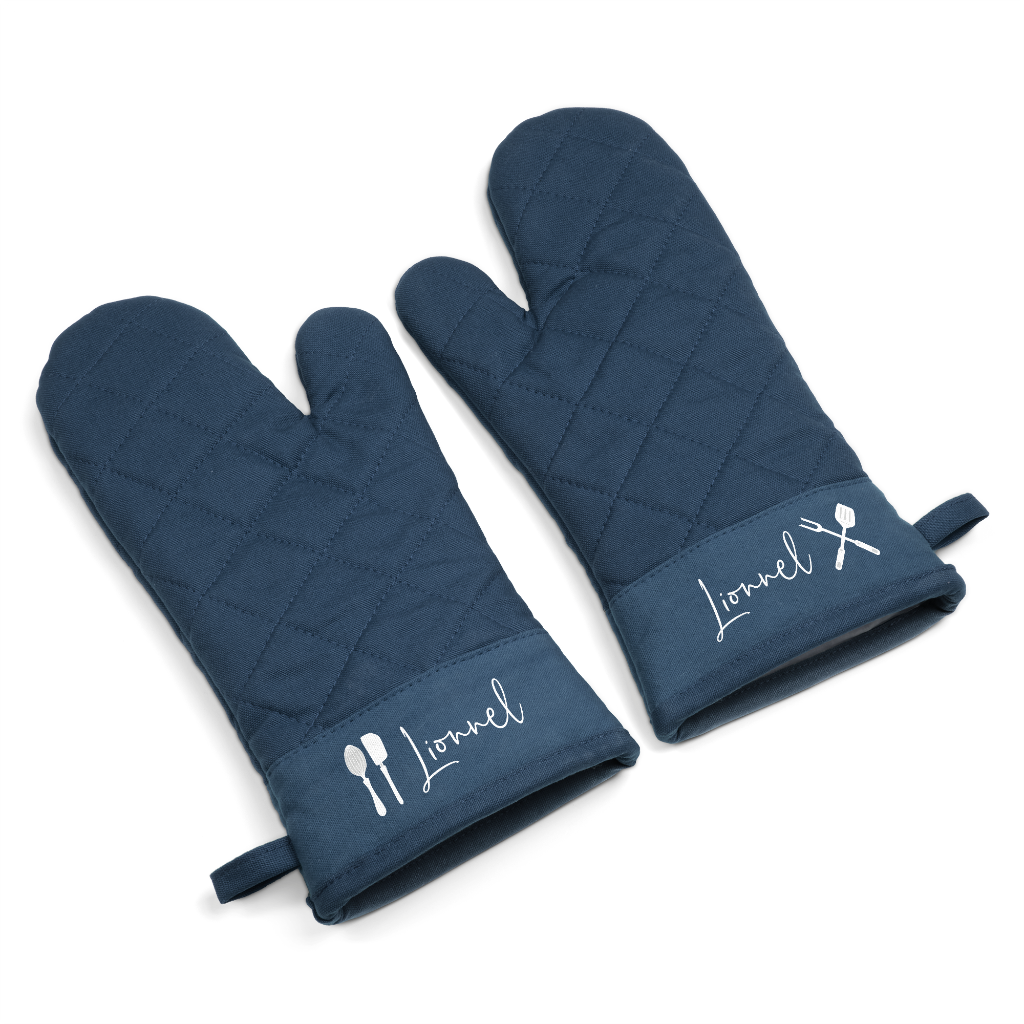 Ofenhandschuhe mit Namen - 2 Stück - Blau