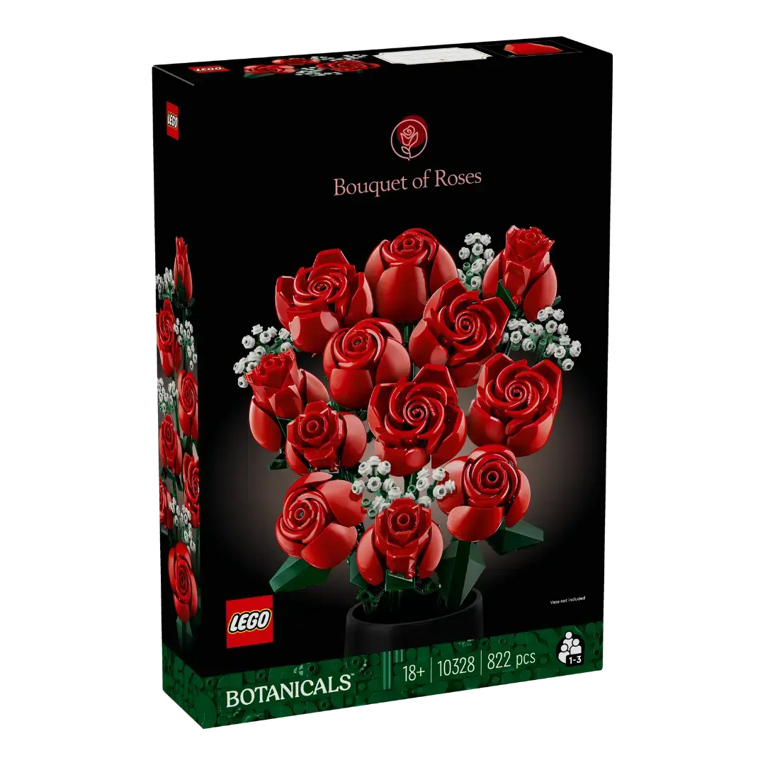 LEGO Botanical Collection Rosen-Bouquet, ein skulpturales Bouquet, das die ewige Schönheit von Rosen einfängt, inklusive zarter Babysbreath.