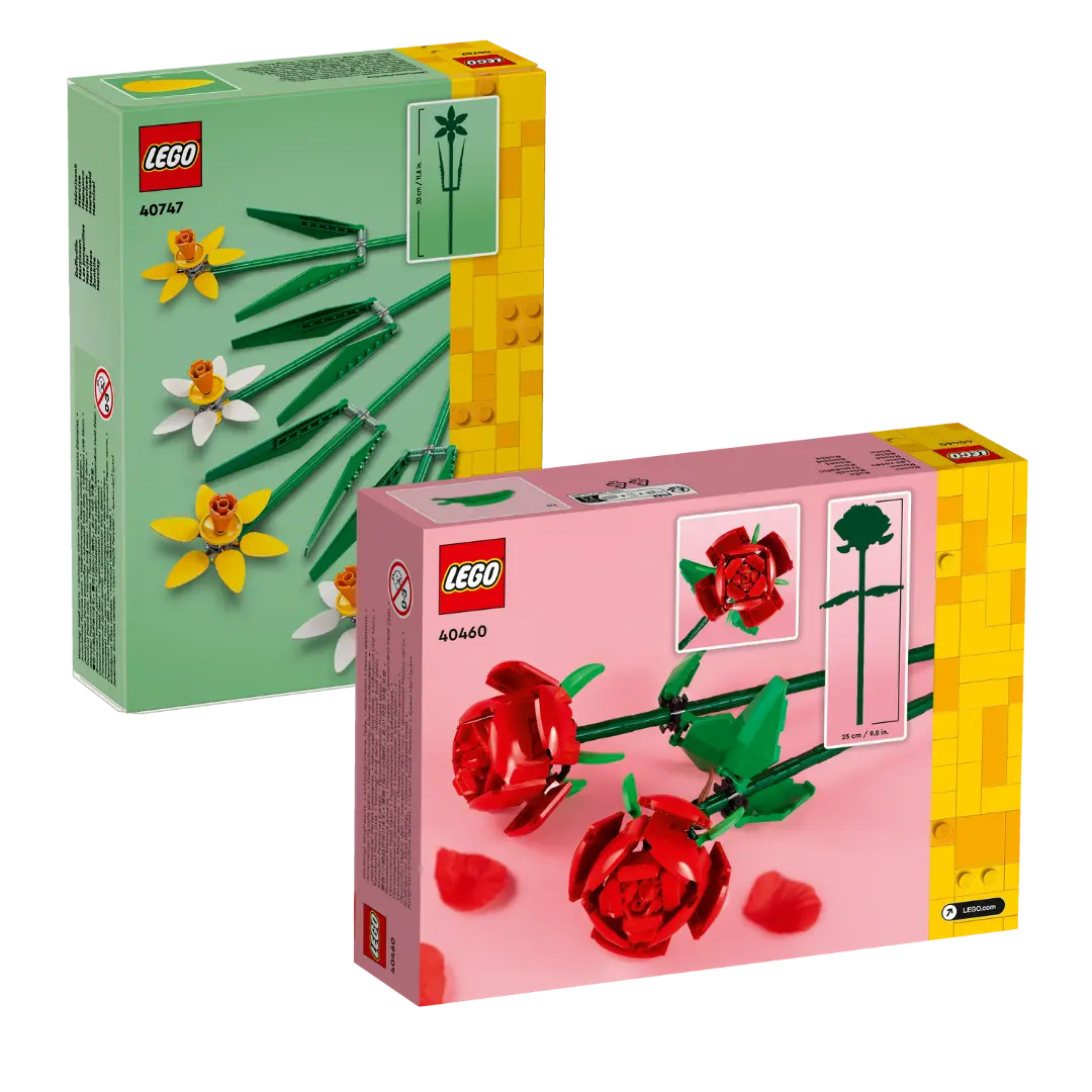 Ein Geschenk, das die Zeit überwindet. Zwei fantastische LEGO-Sets: Rote Rosen und Narzissen, perfekt, um Ihre eigene schöne Blumenarrangement zu erstellen. Jeder platzierte Gegenstand ist ein gemeinsamer Moment, jede gebaute Blume ist eine bleibende Erinnerung. Kein Wasser, kein Verwelken, nur unendliche Schönheit, die Tag für Tag dekoriert und bewegt. Ideal für diejenigen, die sowohl den kreativen Prozess als auch das bleibende Ergebnis schätzen.