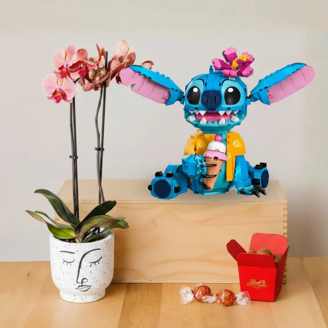 Ein Geschenk, das Lächeln und bleibende Charme bringt. Dieses LEGO Stitch-Set, kombiniert mit einer lebendigen Orchidee und wundervollen Schokoladen, bietet ein multisensorisches Erlebnis. Es geht nicht nur darum, einen geliebten Charakter zu bauen; es geht darum, einen Moment der Freude zu schaffen, ein dekoratives Stück, das jeden Raum aufhellt, und ein süßes Geschenk, das die Feier bereichert. Perfekt für alle, die spielerisches Design und sinnvolle Gesten schätzen.