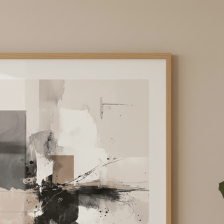 Eine abstrakte Komposition aus sanften Neutraltönen und ausdrucksstarker Bewegung. Ein raffiniertes Kunstwerk, das ruhige Energie bringt.