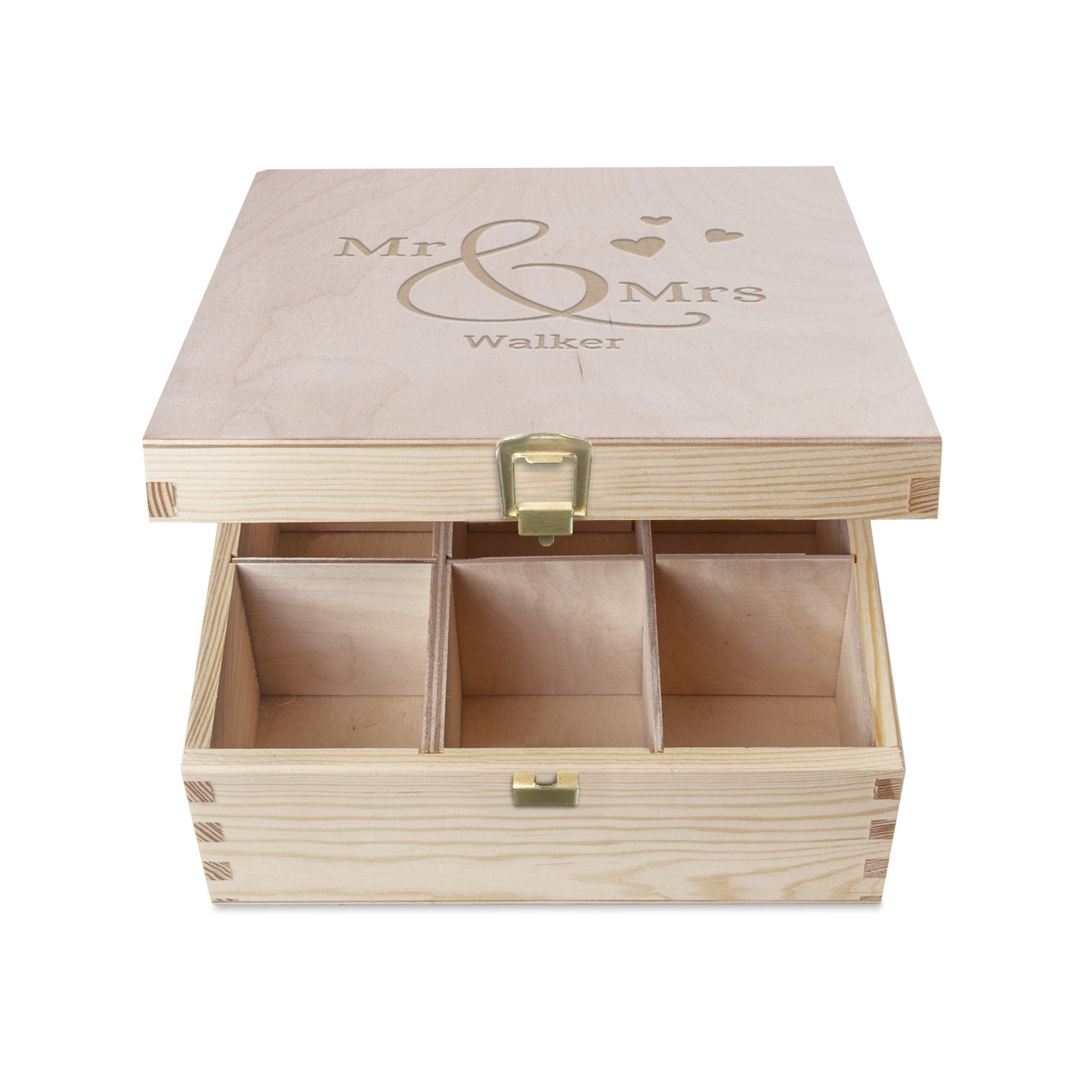 Mehr Informationen zur Teebox aus Holz mit Namen:Material: schönes europäisches BuchenholzMaße: 20,8 x 24 x 9,8 cmFächer: 9Personalisierung: mit Namen oder TextPersonalisierungsmethode: hochwertige LasergravurGravurfarbe: Braun (Holzfarbe)Extra: Holz ist ein Naturprodukt, daher kann Ihr Geschenk leicht von den Abbildungen auf der Website abweichen.Gut zu wissen:Die Teebox hat mehrere austauschbare Fächer. So können Sie zum Beispiel auch Ihre Lieblingsteelöffel in die Box legen. Wenn Sie ein Logo auf den Deckel gravieren lassen möchten, wenden Sie sich bitte für weitere Informationen an unseren Kundenservice.