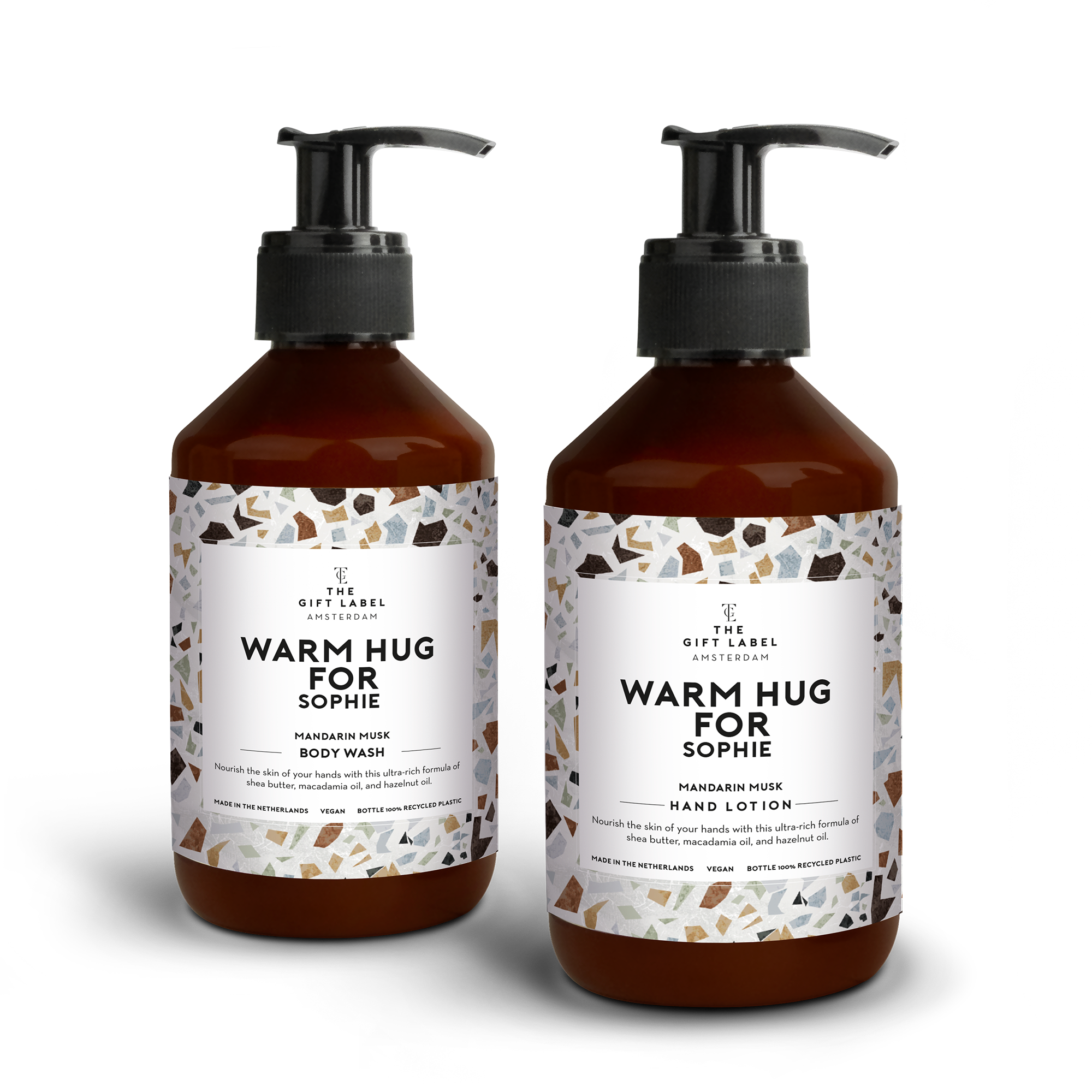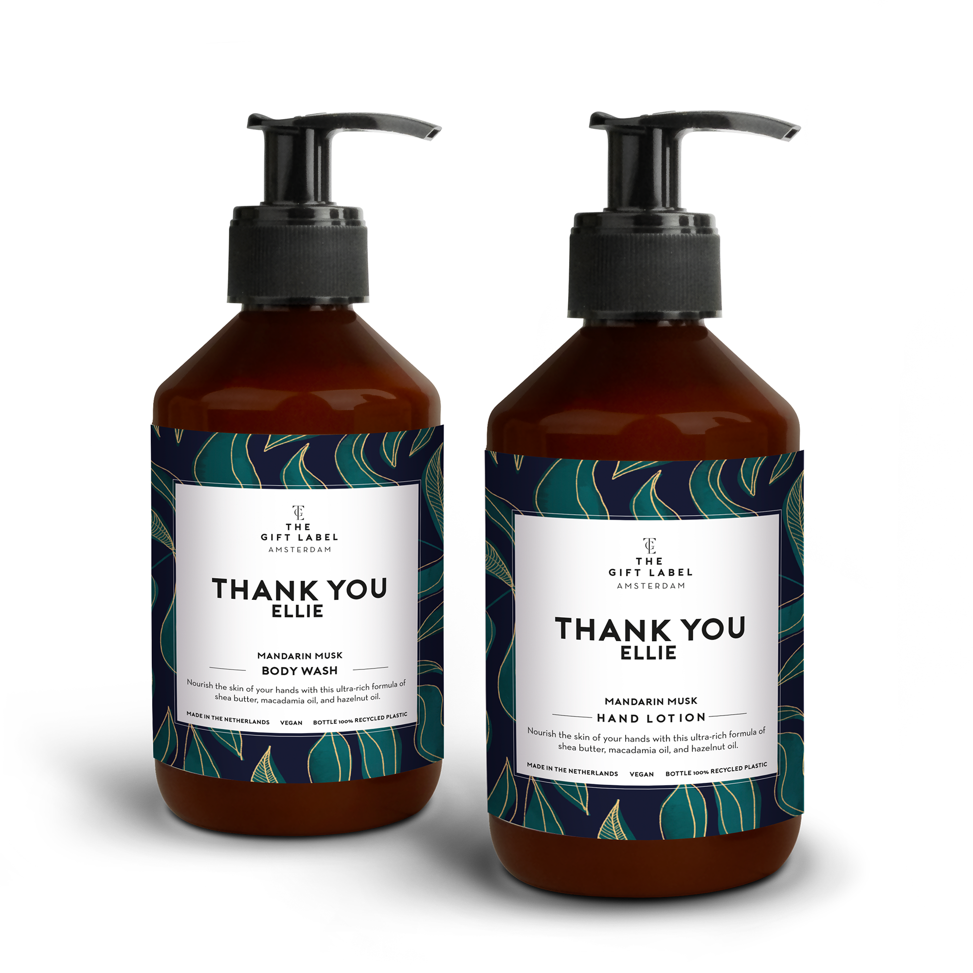 Weitere Informationen zum Geschenkset:Inhalt des Geschenksets: Duschgel (250 ml) und Handseife (250 ml)Duft: Mandarinen-MoschusDruck: Vollständig bedruckte Etiketten, bildschön und in FarbePersonalisierung: Text und persönliche NachrichtZusätzliche Informationen: Die Flaschen befinden sich in einer stabilen GeschenkboxAus technischen Gründen ist die Verwendung von kyrillischen, asiatischen, arabischen, griechischen, türkischen oder Sonderzeichen nicht möglich.