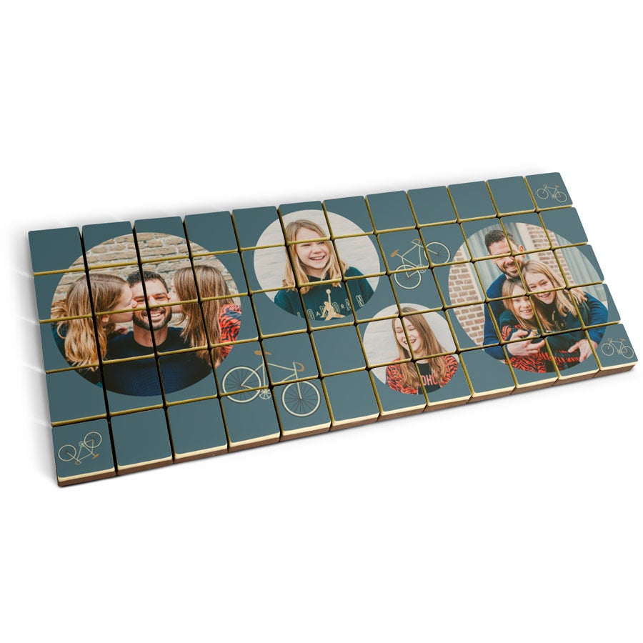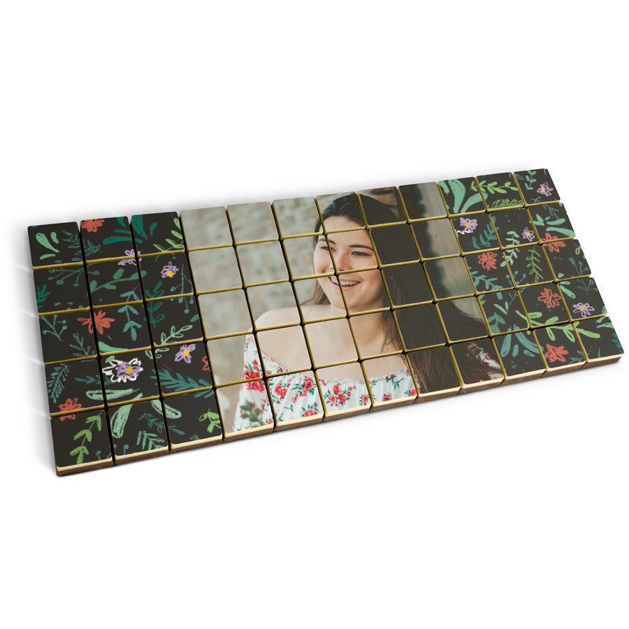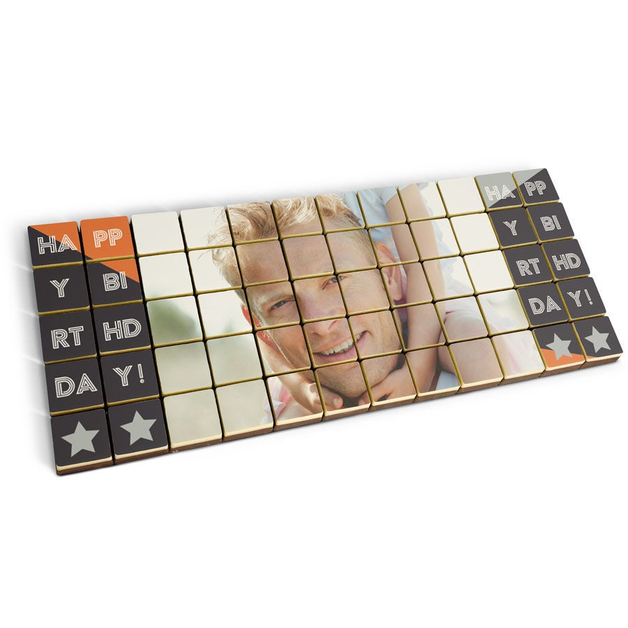 Mehr Informationen zum Foto der Vollmilchschokolade: Menge: 60 Pralinen Schokolade: Milchschokolade mit einer Schicht weißer Schokolade obendrauf Maße pro Praline: 2,5 x 2,5 x 1,2 cm Maße pro Set: 23 x 18 x 2,5 cm Personalisierung: mit Foto oder Logo bedruckt Druck: essbarer Druck in Vollfarbe Bei Temperaturen ab 25 °C empfehlen wir Ihnen, Ihrer Bestellung ein Kühlelement beizufügen. Aufbewahrungshinweis: Kühl und dunkel bei 14–18 °C bis zu 10 Wochen haltbar. Allergiehinweis: Enthält Soja, Milch und kann Spuren von Schalenfrüchten enthalten. Zutaten: Milchschokolade: Zucker, Kakaobutter, Vollmilchpulver, Kakaomasse, Emulgator (Sojalecithin), natürliches Vanillearoma. Mindestens 34 % Kakaoanteil. Weiße Schokolade: Zucker, Kakaobutter, Vollmilchpulver, Emulgator (Sojalecithin), natürliches Vanillearoma. Mindestens 29 % Kakaoanteil.
