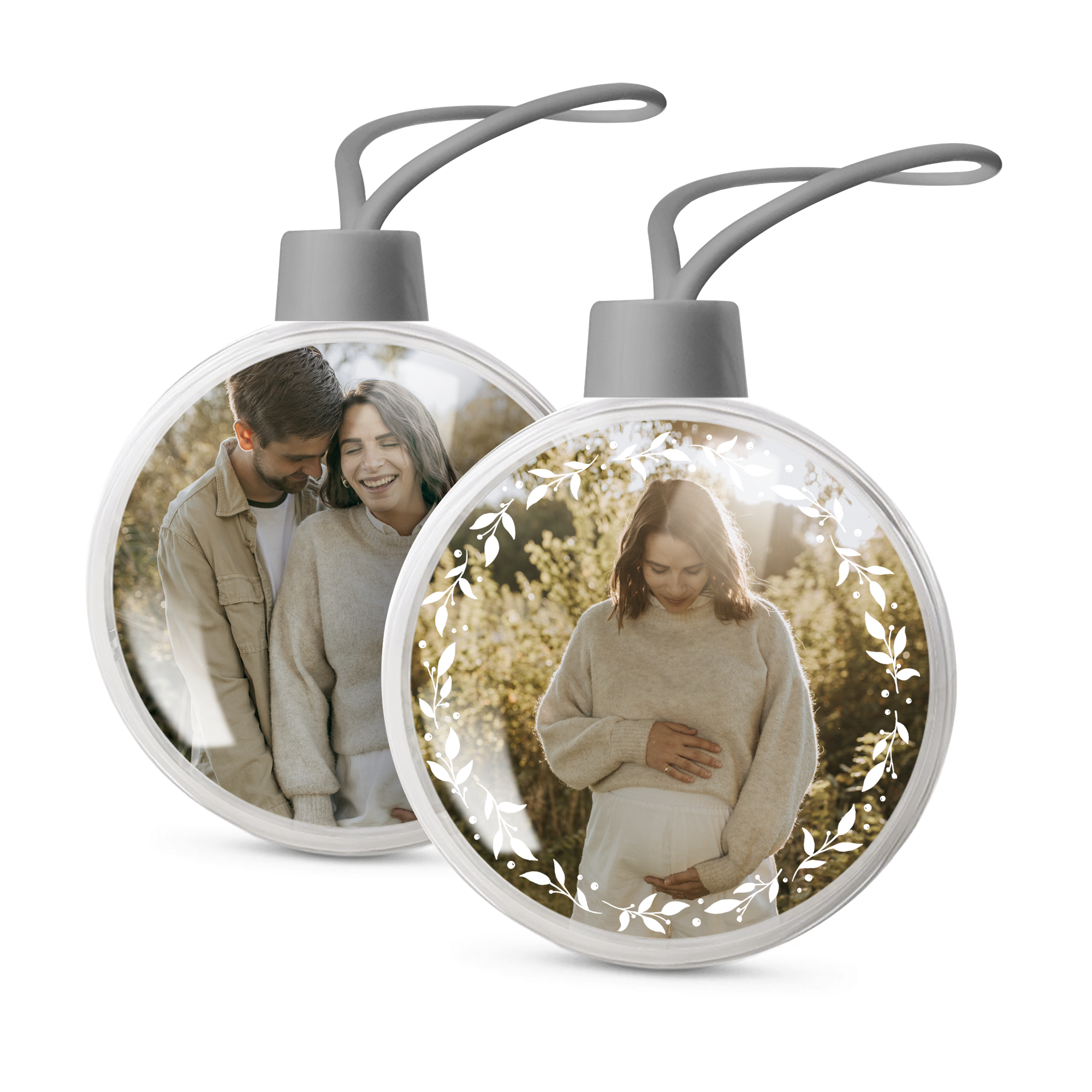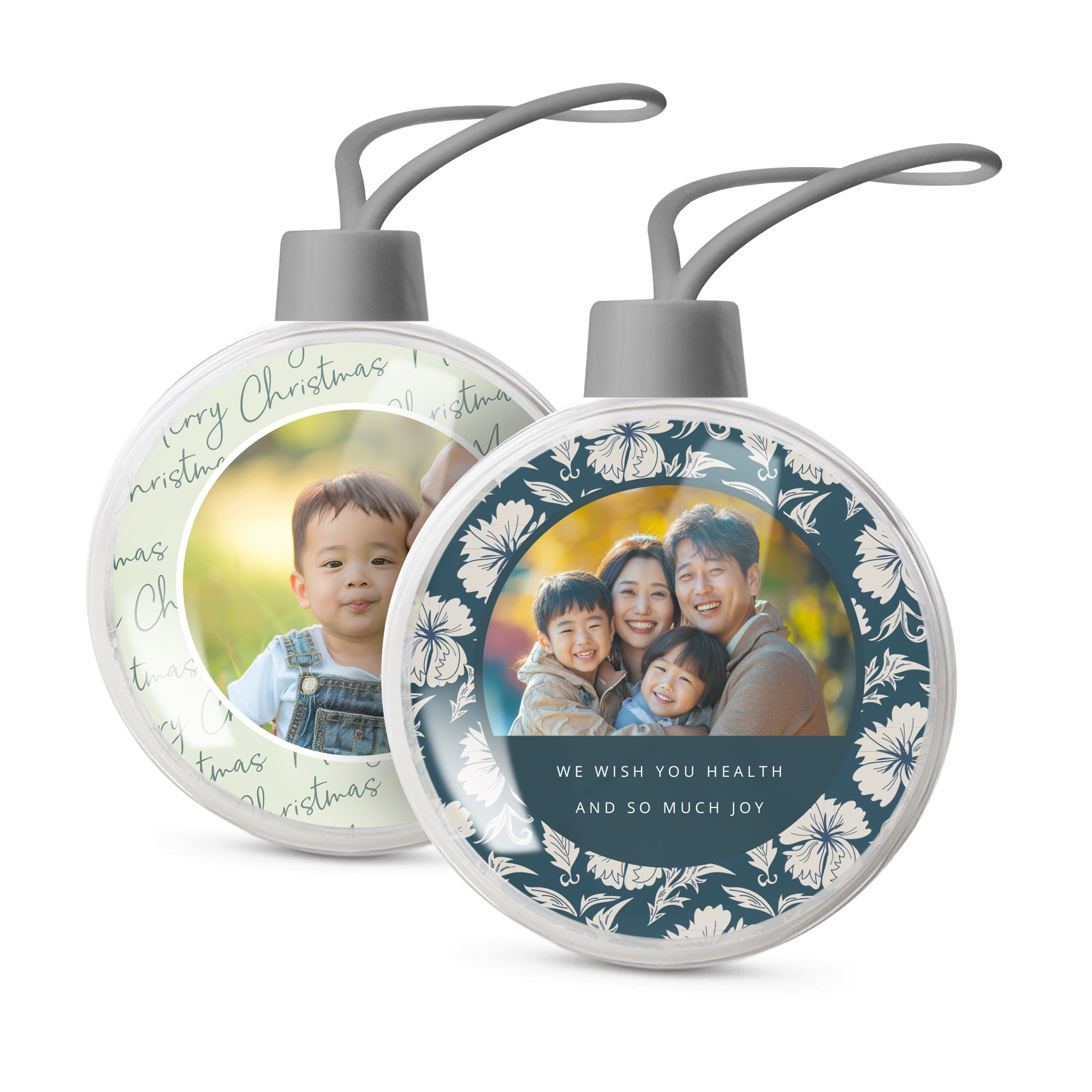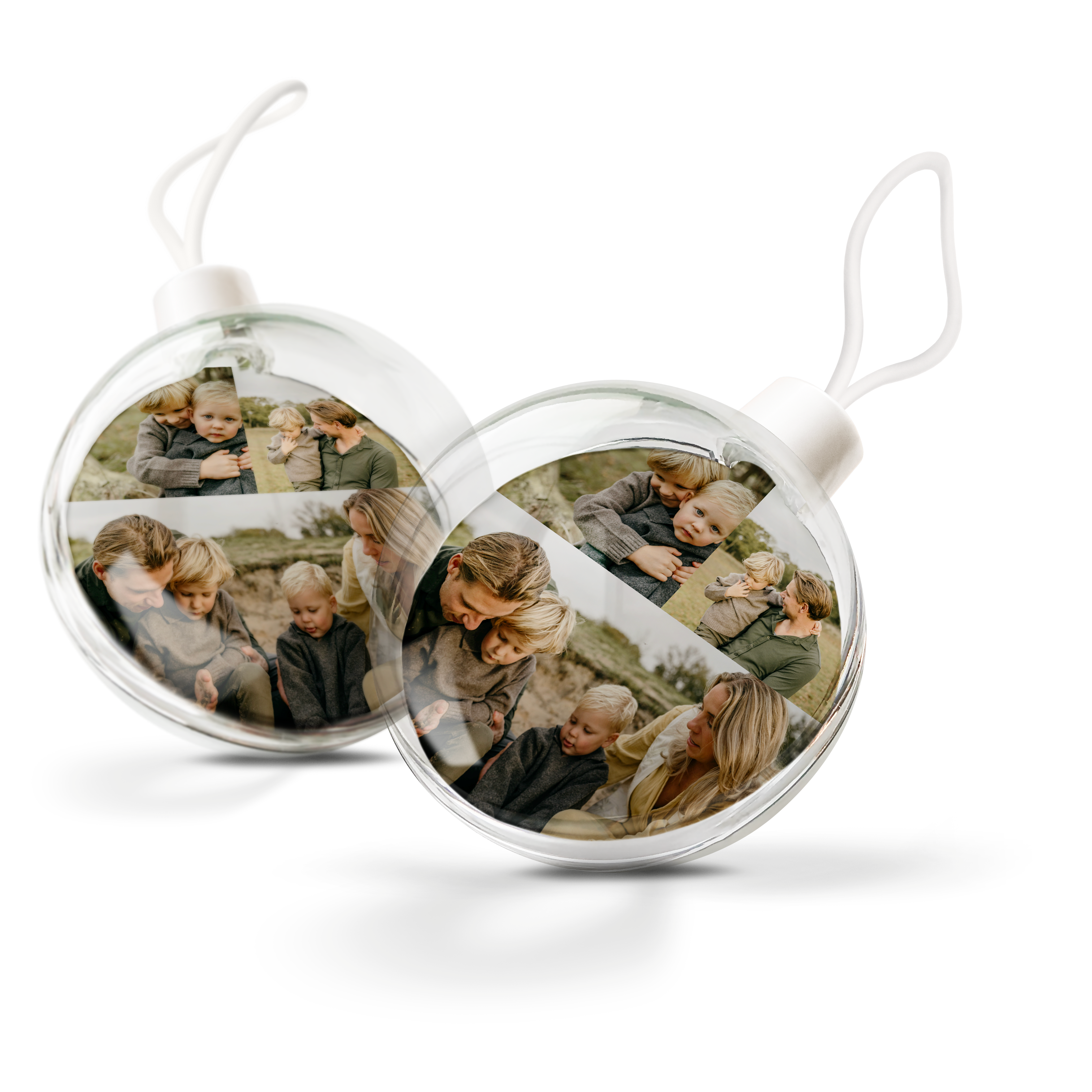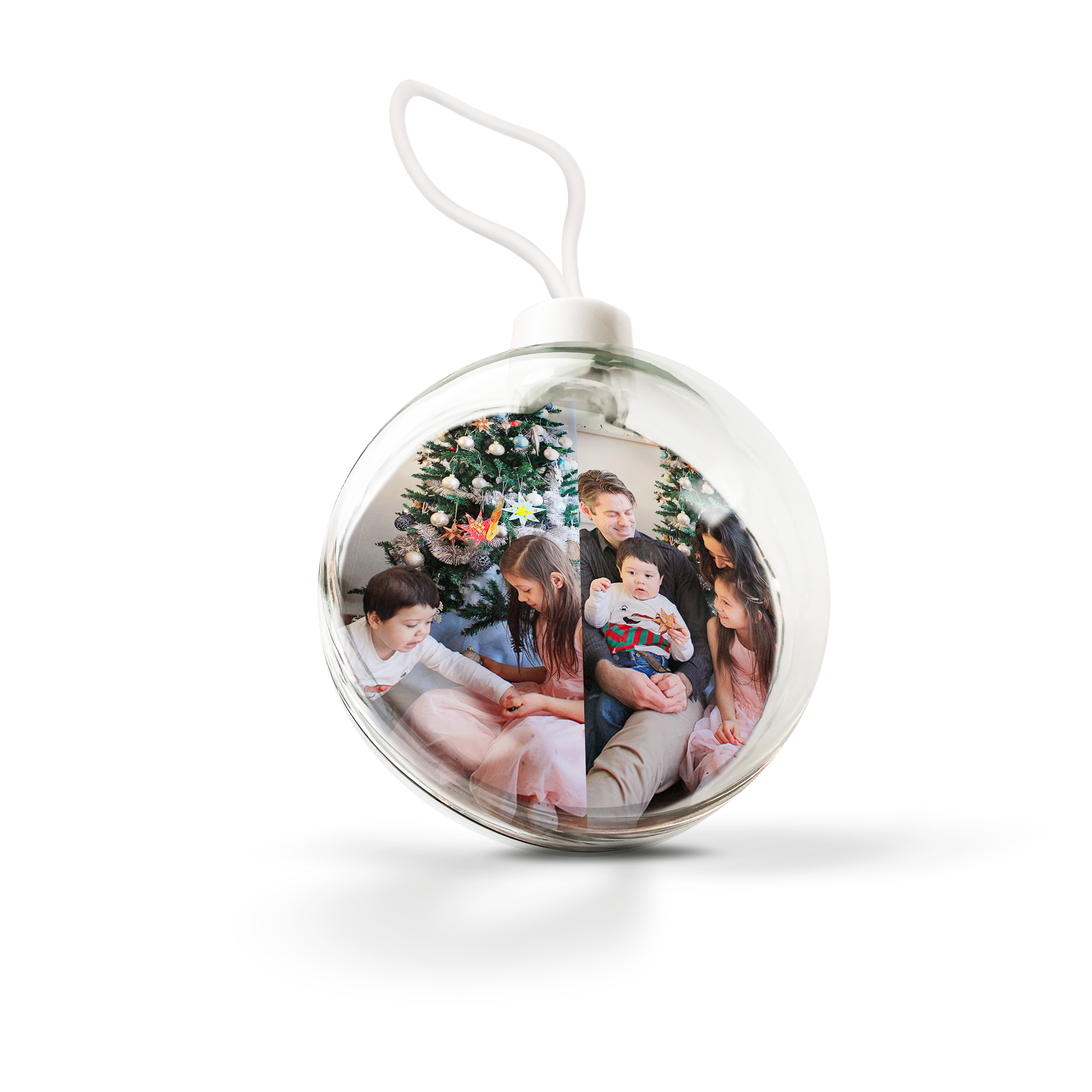 Ihr eigenes Foto und Text in personalisierten transparenten Weihnachtskugeln. Doppelseitiges Bild!