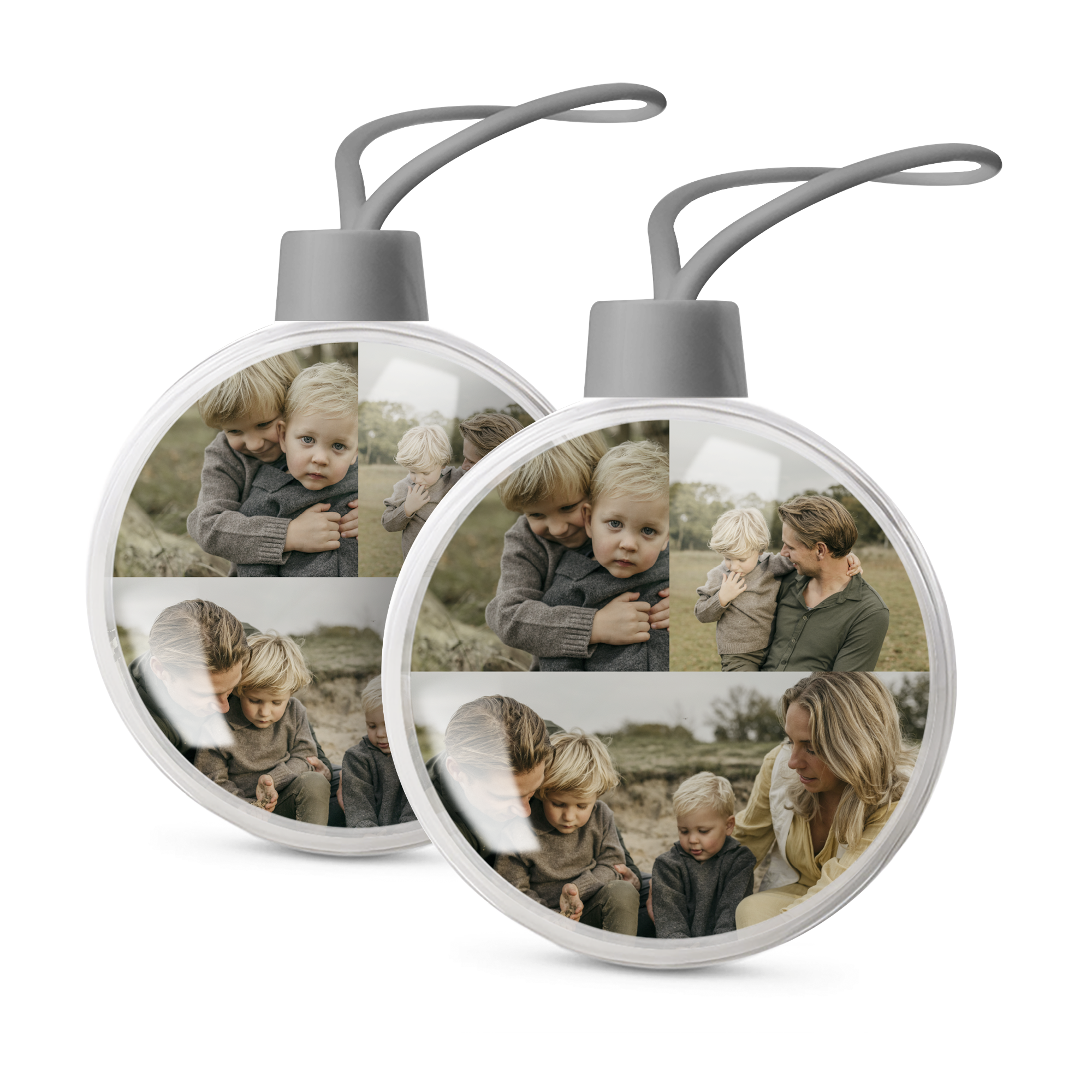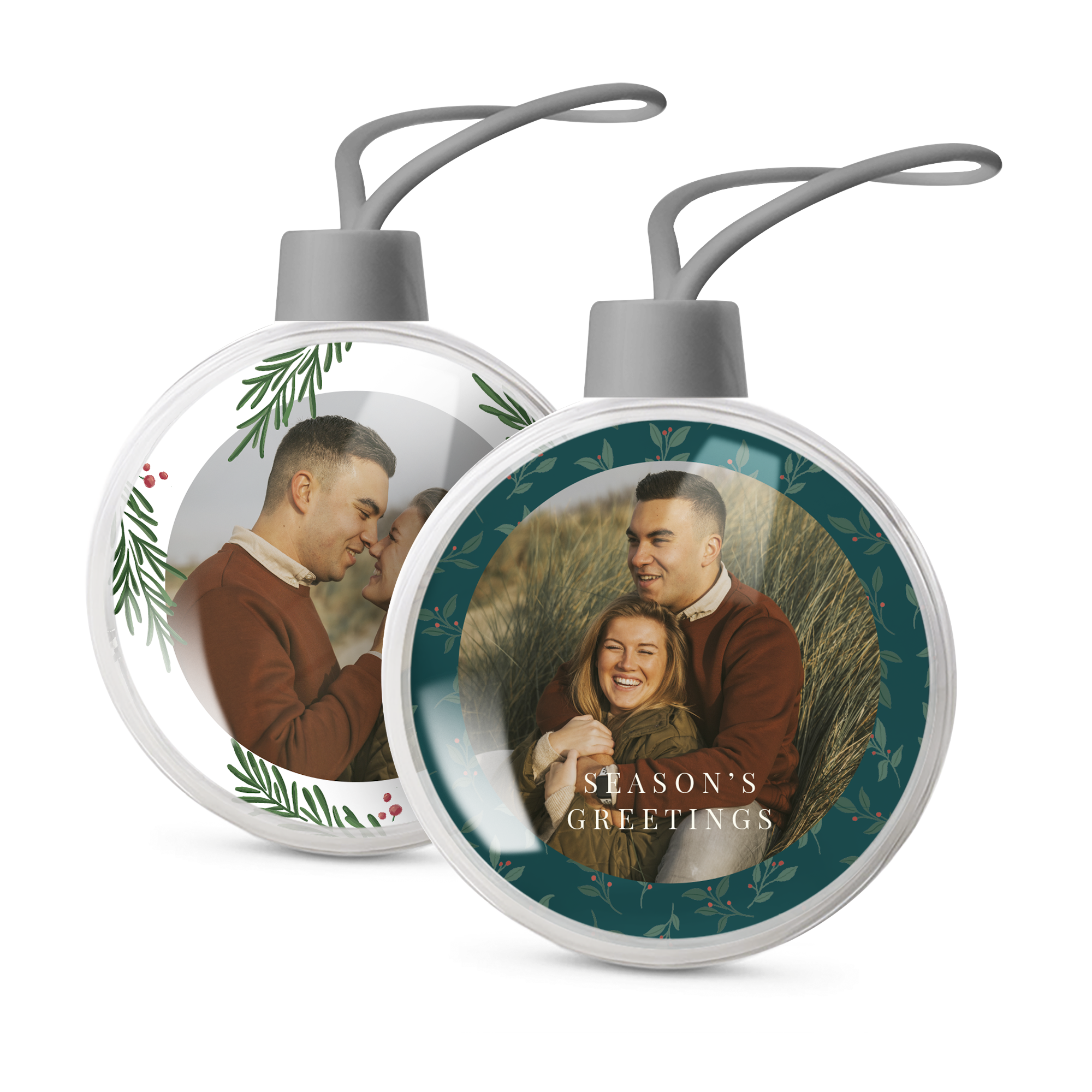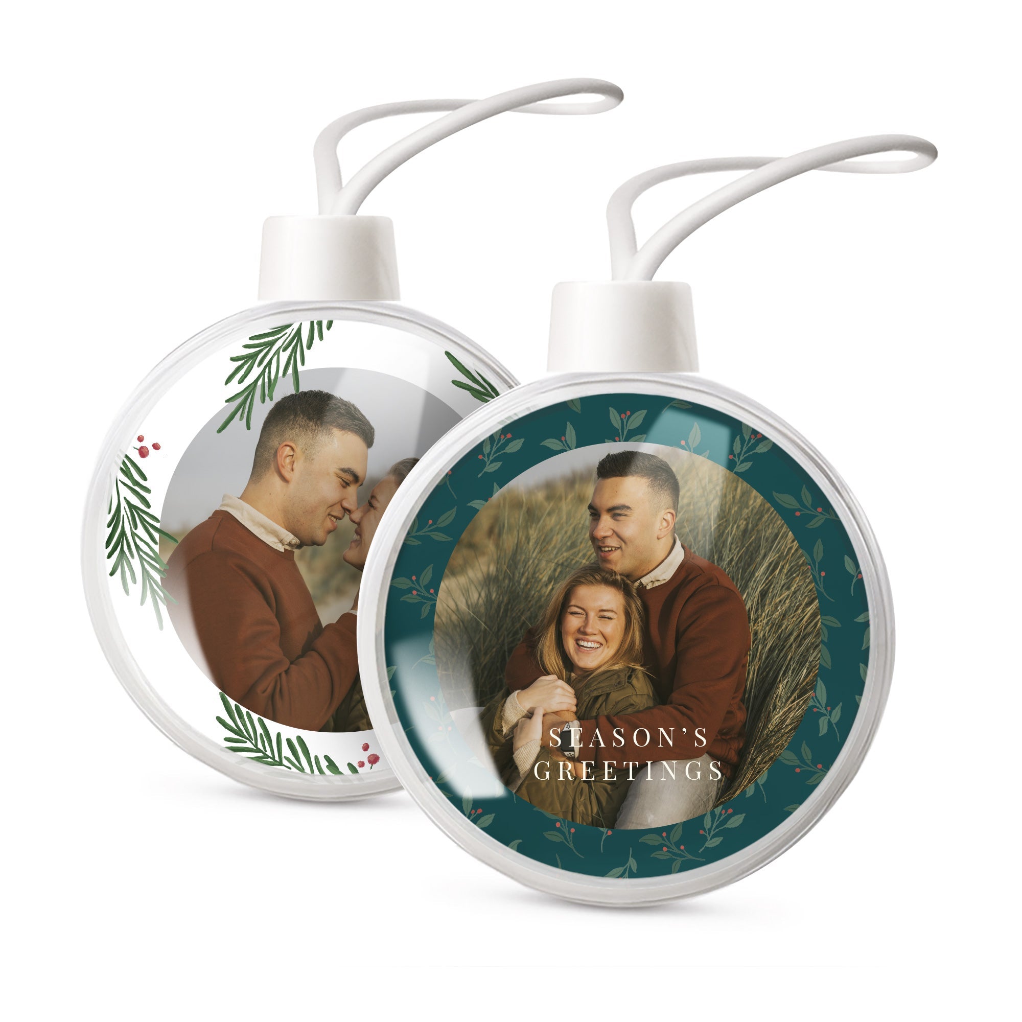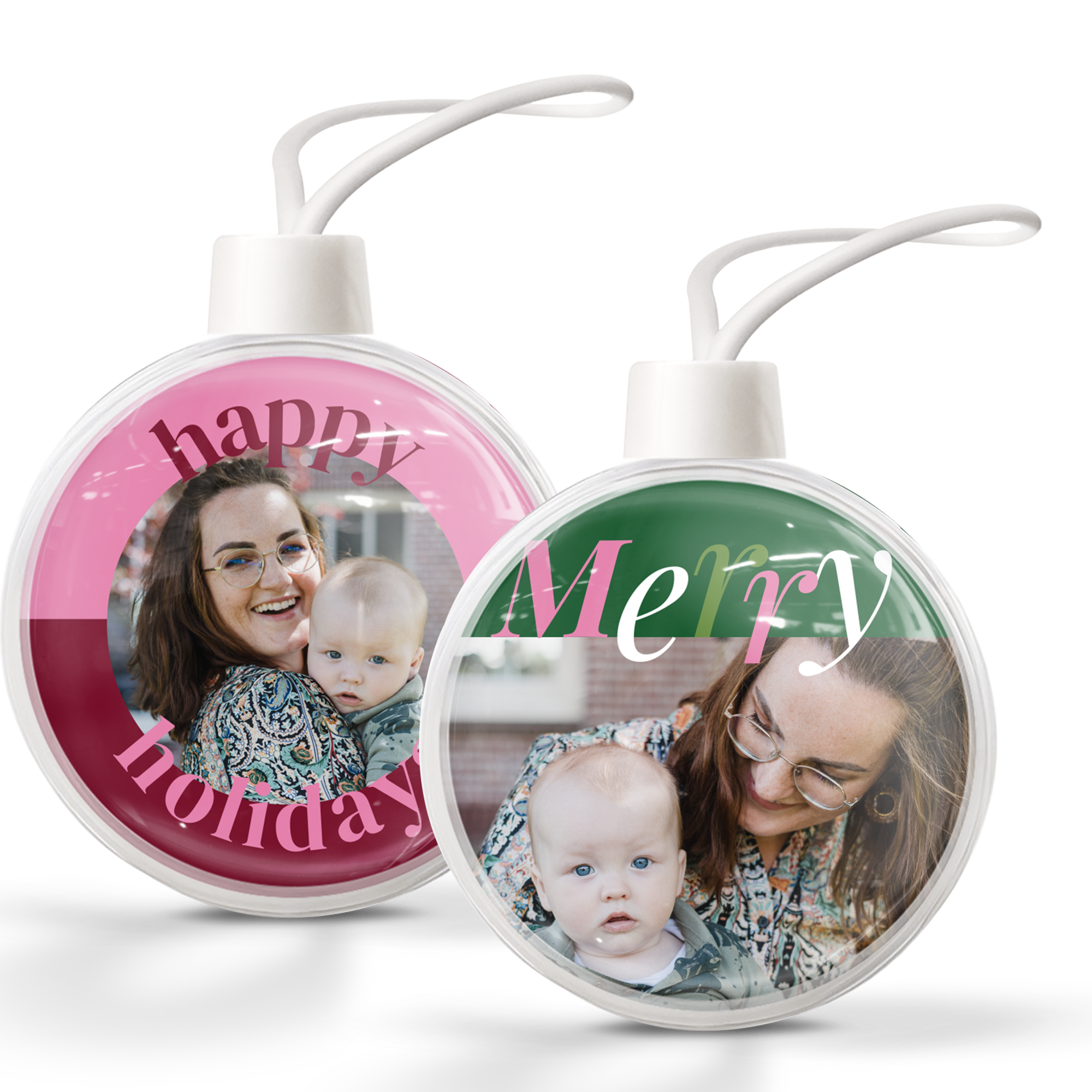 Ihr eigenes Foto und Text in personalisierten transparenten Weihnachtskugeln. Doppelseitiges Bild!