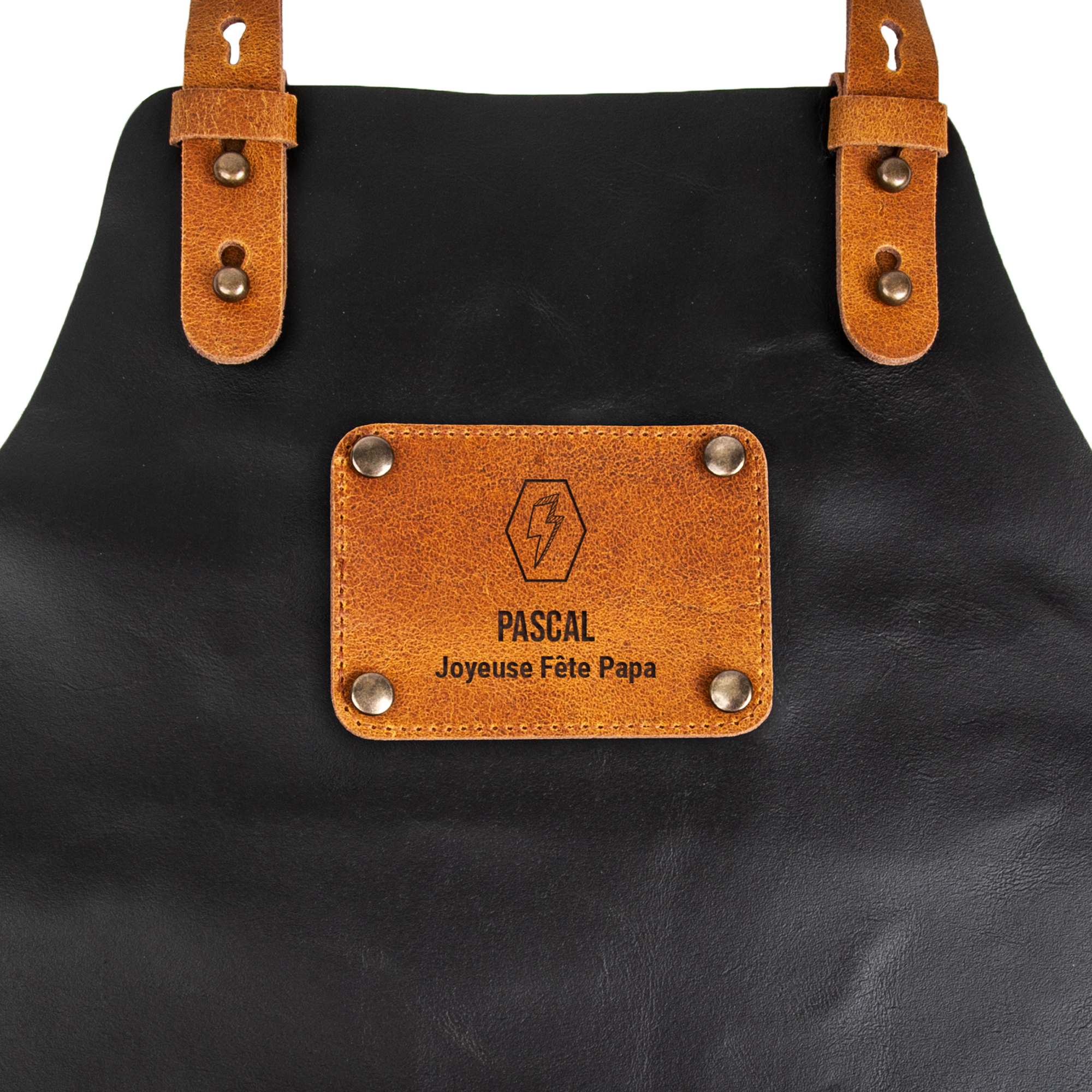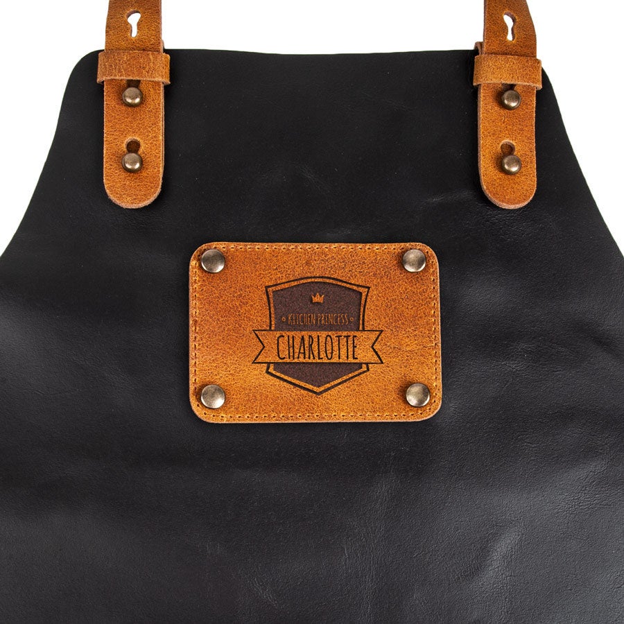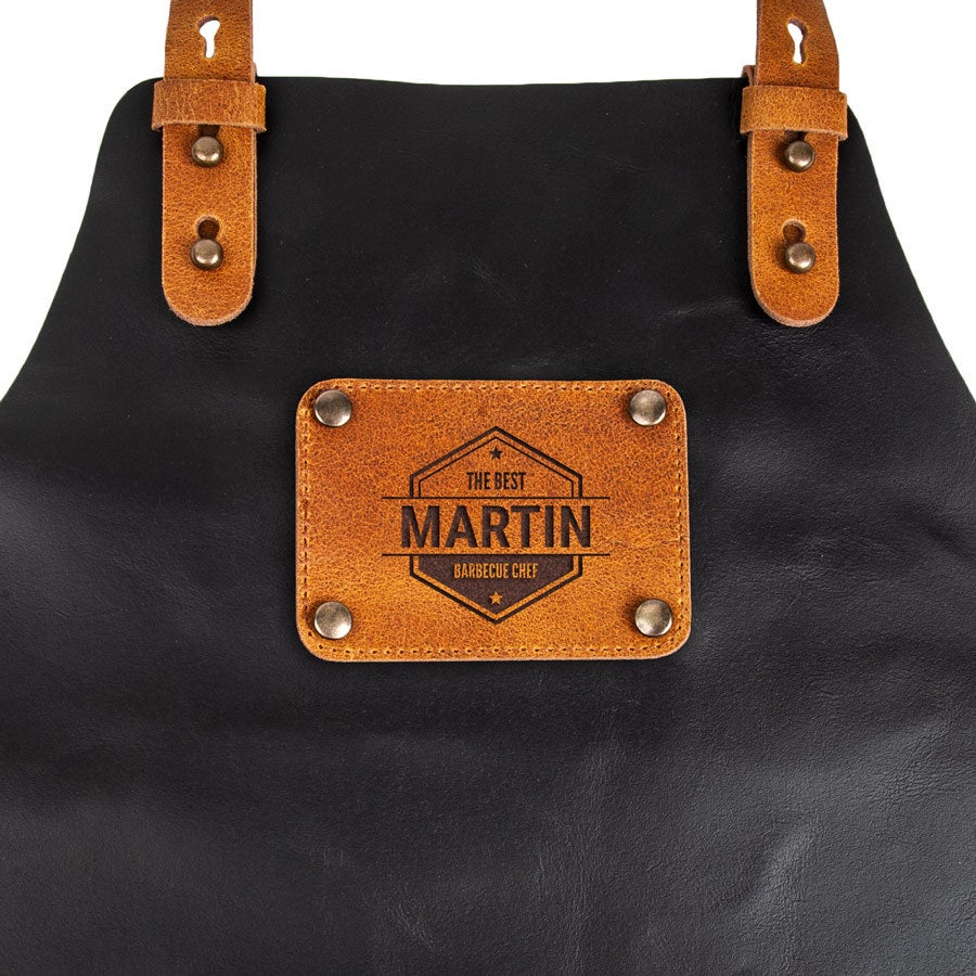 Lederschürze mit einem besonderen Design und Namen. Die personalisierte Lederschürze ist das perfekte Geschenk für jeden angehenden Koch!