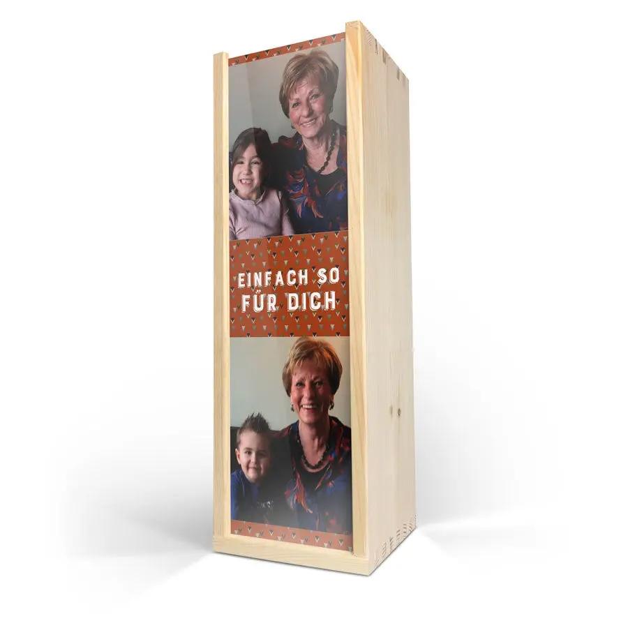 Eine wunderschöne Flasche Salentein Merlot in einer individuellen Weinkiste. Verschiedene Designs mit Ihrem Foto, Logo oder Text. Ein einzigartiges Geschenk für viele Anlässe!