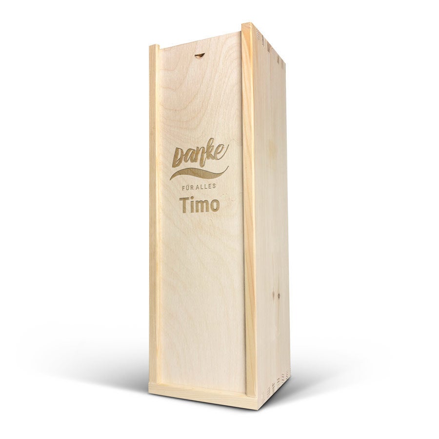 - Platzierung der Personalisierung: auf dem Deckel der Holzkiste