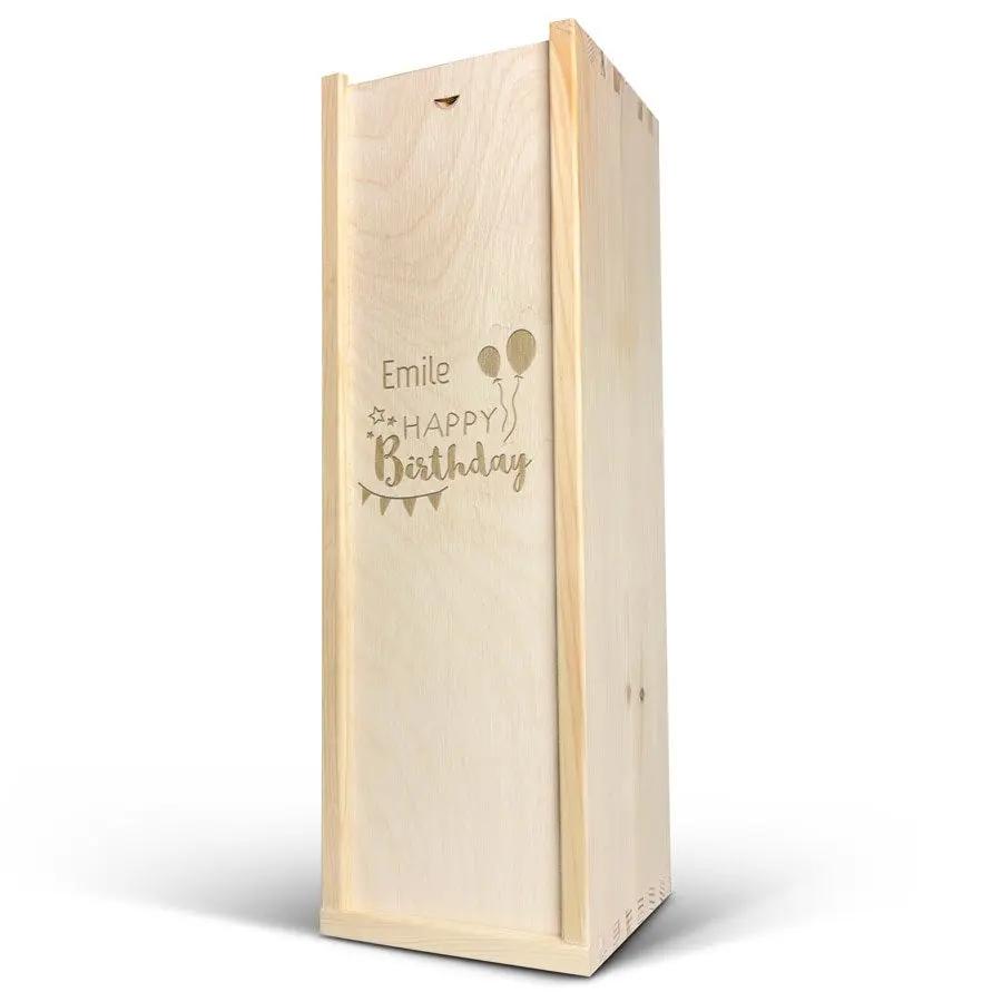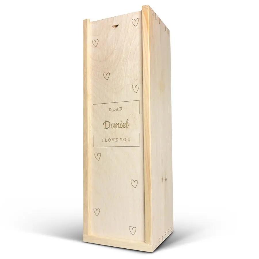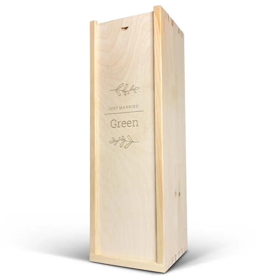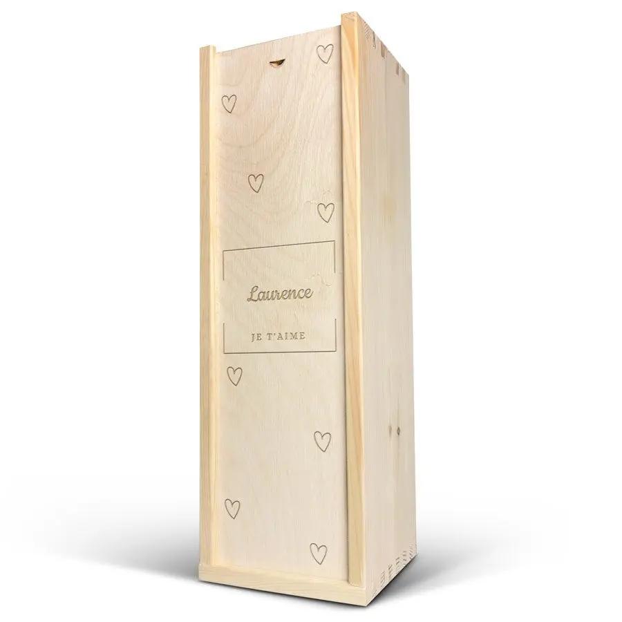 Eine köstliche Flasche Moët & Chandon Champagner in einer Geschenkkiste aus Holz mit Ihrem Wunschtext!