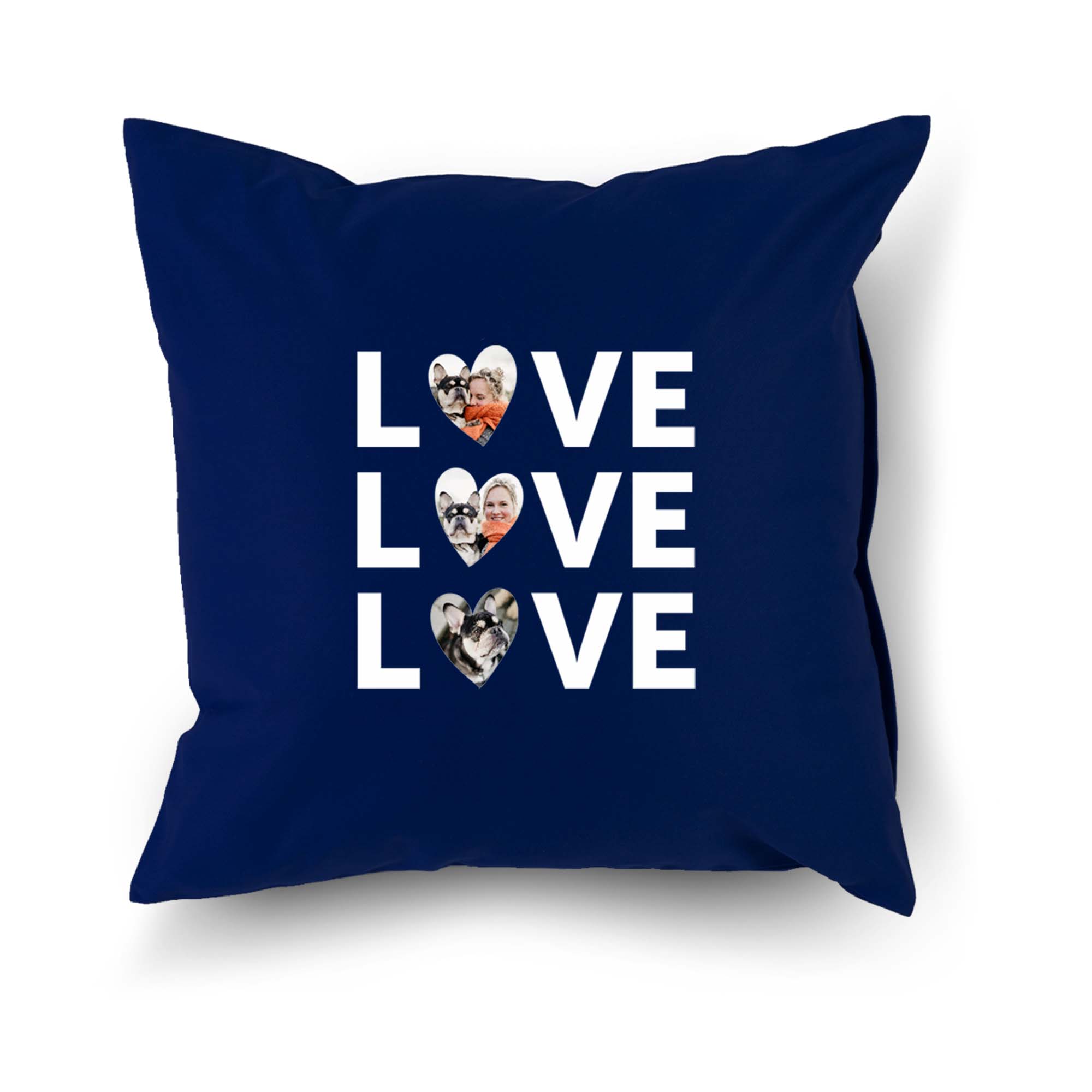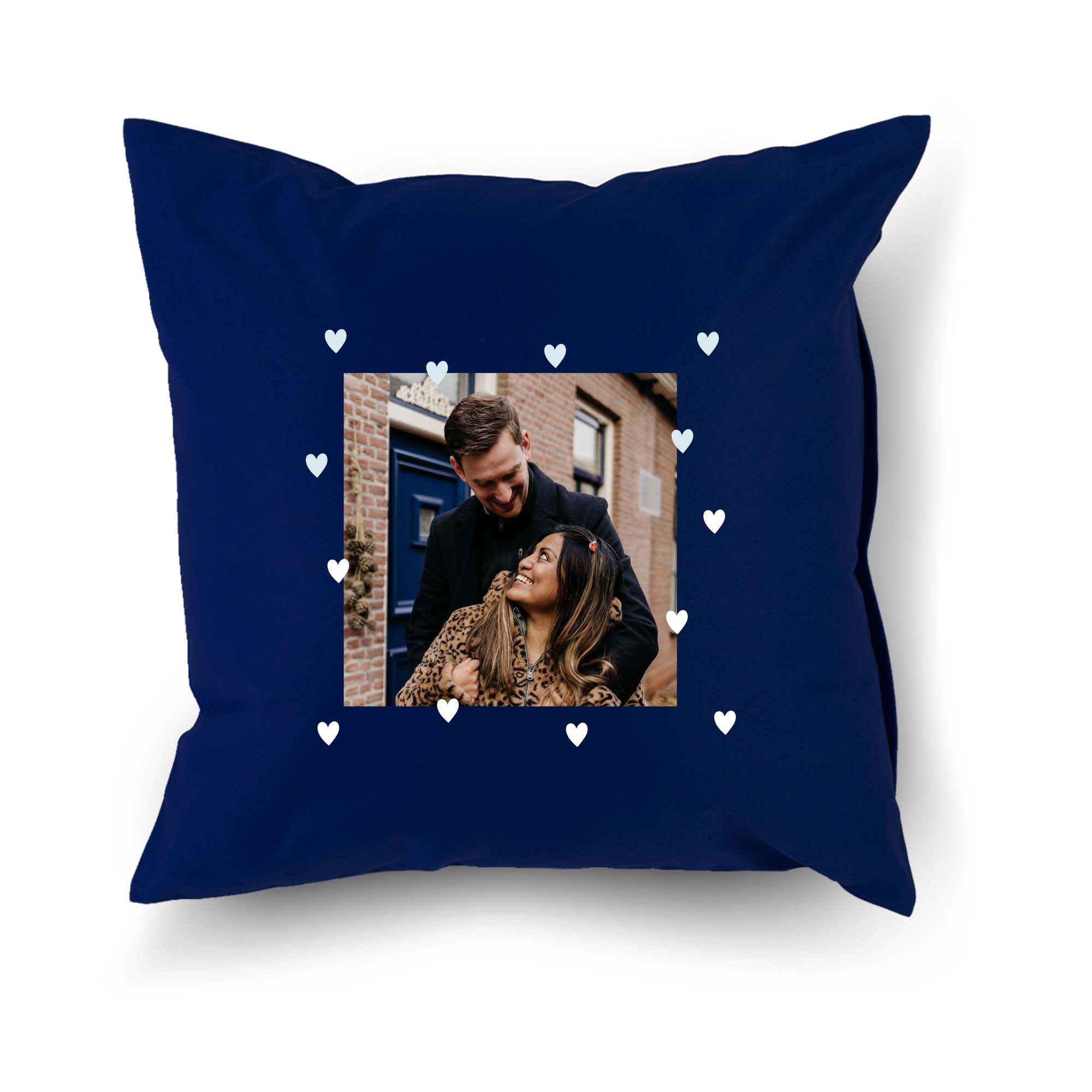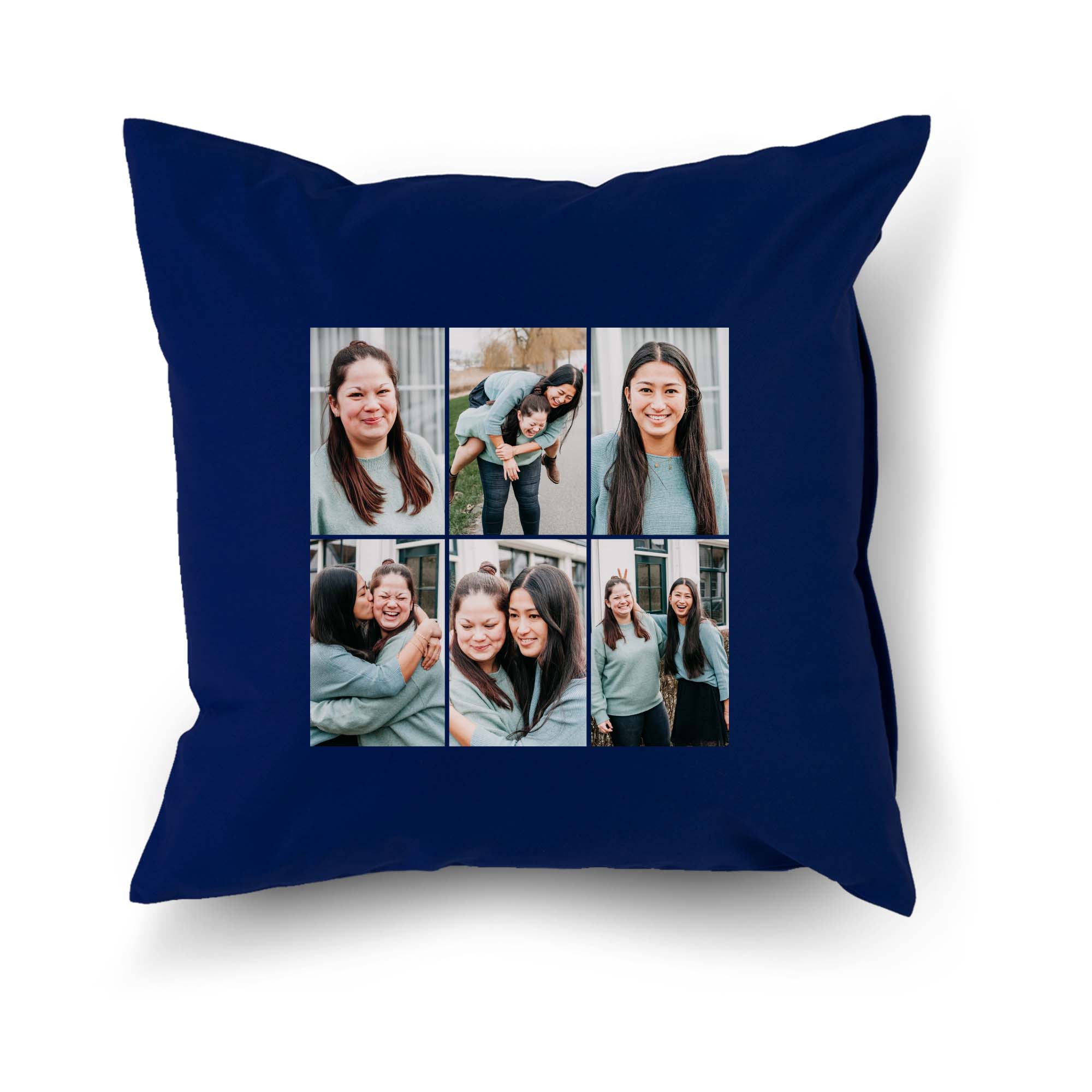 Gestalten Sie Ihr eigenes Kissen. Ein wahrhaft persönliches Kissen mit Foto, Text, Logo und/oder Collage Ihrer Wahl. Verschiedene Farben erhältlich. Weitere Informationen zum personalisierten Kissen: Farbe: Marineblau Material: 100 % Baumwolle Kissenmaße: 40 x 40 cm Personalisierung: mit Foto und/oder Text Druck: perfekt und in Farbe Druckmaße: 25 x 25 cm Druckplatzierung: auf der Vorderseite des Kissens Zusatz: Dieses Geschenk enthält eine Kissenfüllung Waschanleitung: Waschen bei 40 °C (Schonwaschgang/Wollwaschgang). Kissenbezug nicht chemisch reinigen oder chemisch reinigen.