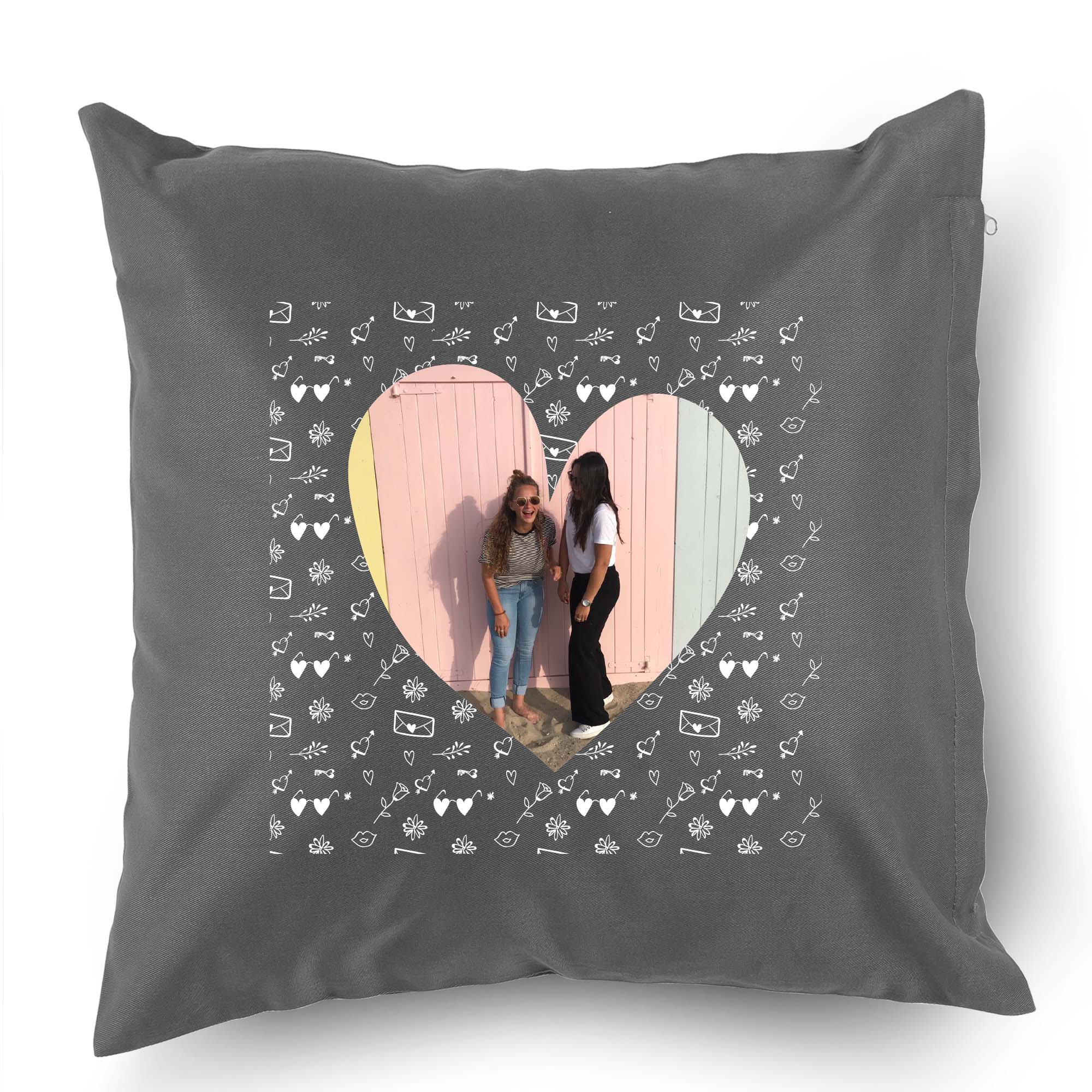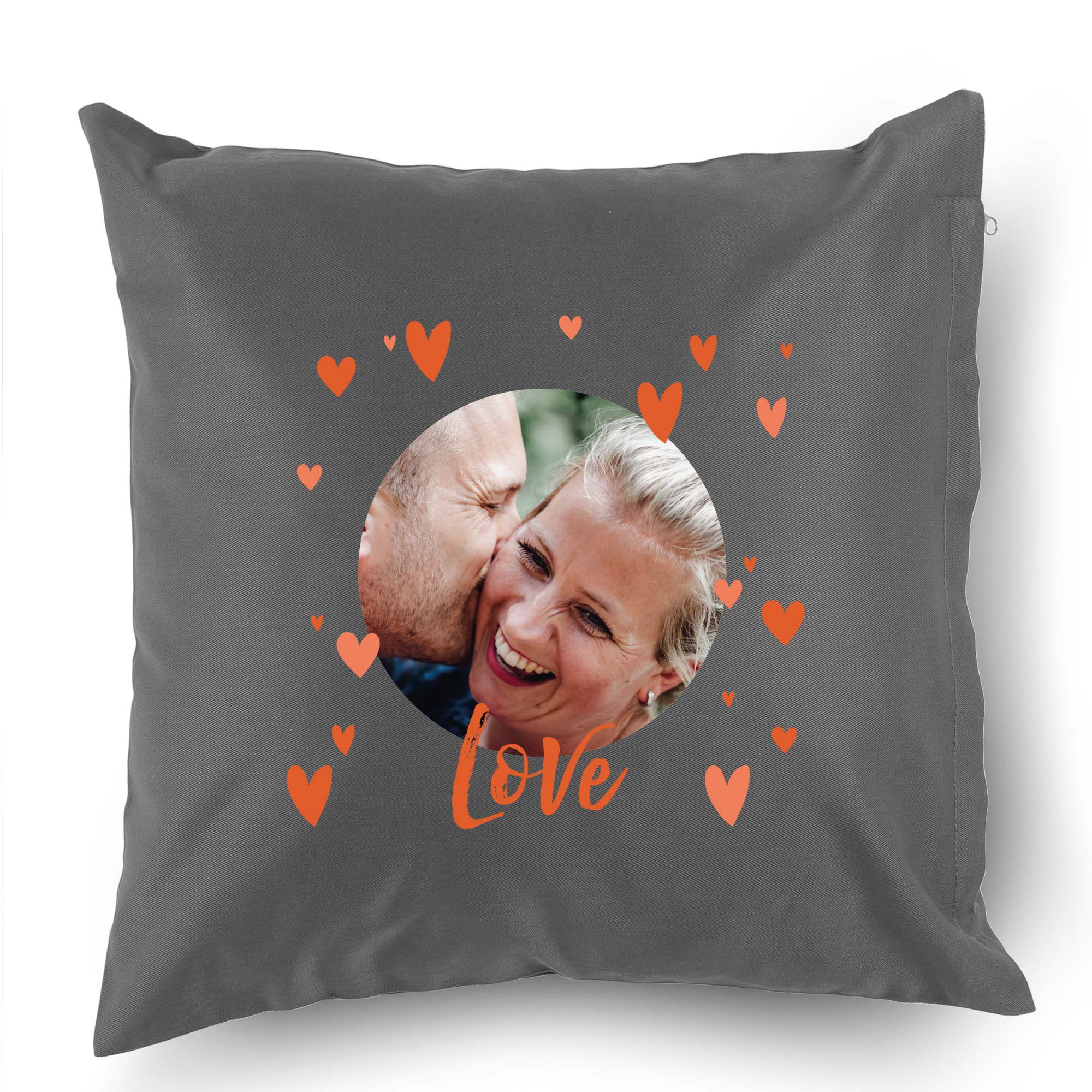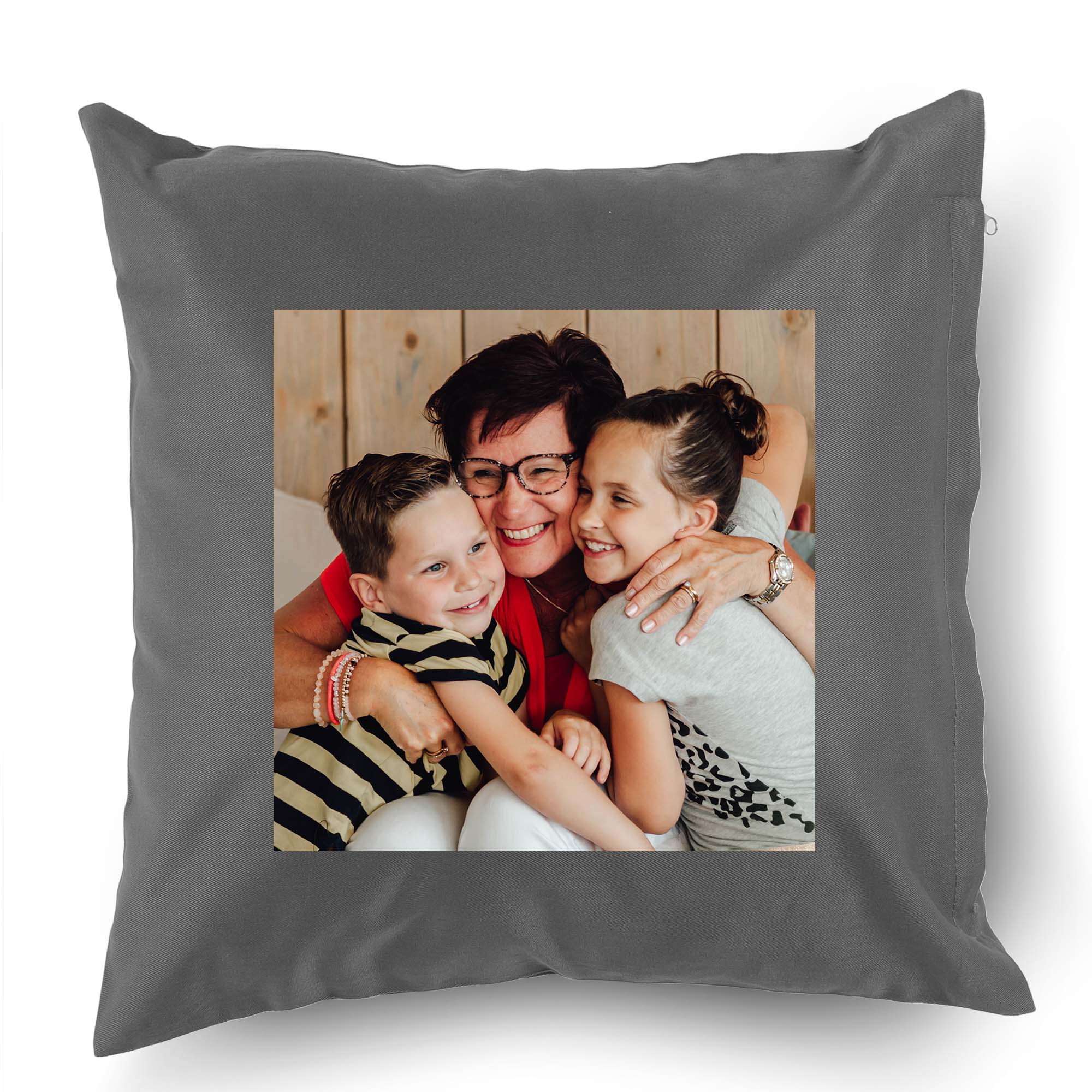 Gestalten Sie Ihr eigenes Kissen. Ein wahrhaft persönliches Kissen mit Foto, Text, Logo und/oder Collage Ihrer Wahl. Verschiedene Farben erhältlich. Weitere Informationen zum personalisierten Kissen: Farbe: Dunkelgrau Material: 100 % Baumwolle Kissenmaße: 40 x 40 cm Personalisierung: mit Foto und/oder Text Druck: Hochauflösend und in Farbe Druckmaße: 25 x 25 cm Druckplatzierung: auf der Vorderseite des Kissens Zusatz: Dieses Geschenk enthält eine Kissenfüllung Waschanleitung: Waschen bei 40 °C (Schonwaschgang/Wollwaschgang). Kissenbezug nicht chemisch reinigen oder chemisch reinigen.