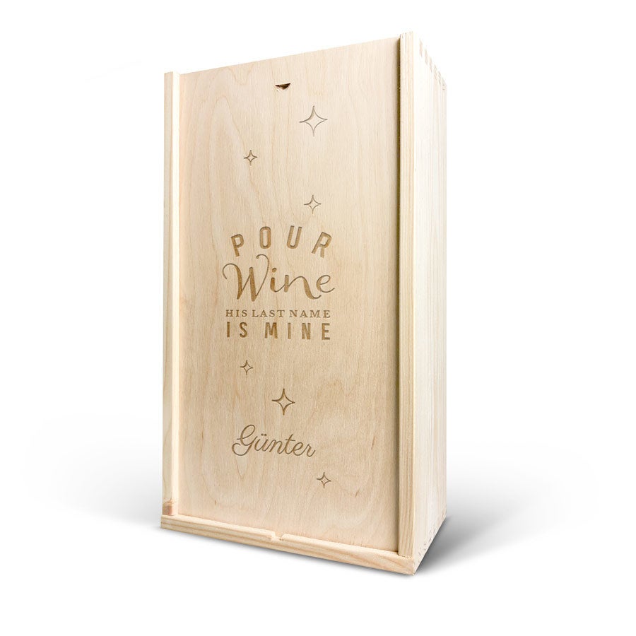 Köstlicher Wein von Maison de la Surprise in einer gravierten Holzkiste mit dem Namen und/oder Text Ihrer Wahl. Gestalten Sie jetzt Ihre eigene!