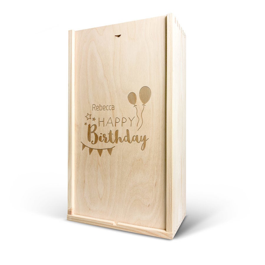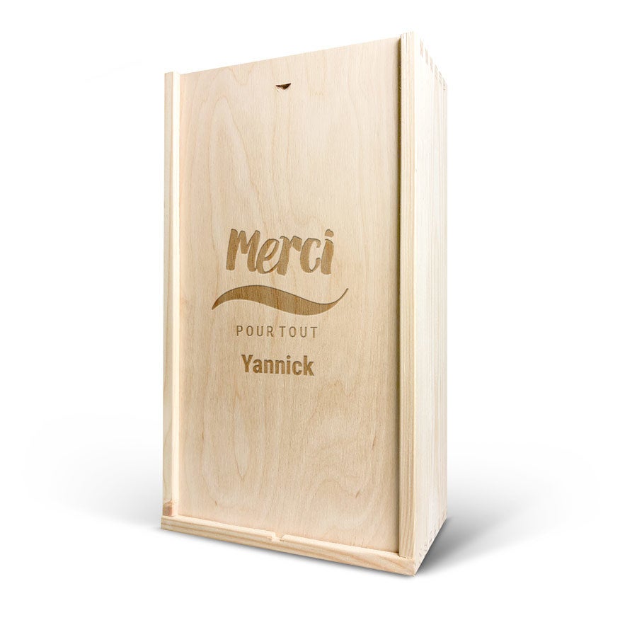 Wein in gravierter Holzkiste - Maison de la Surprise - Merlot & Chardonnay