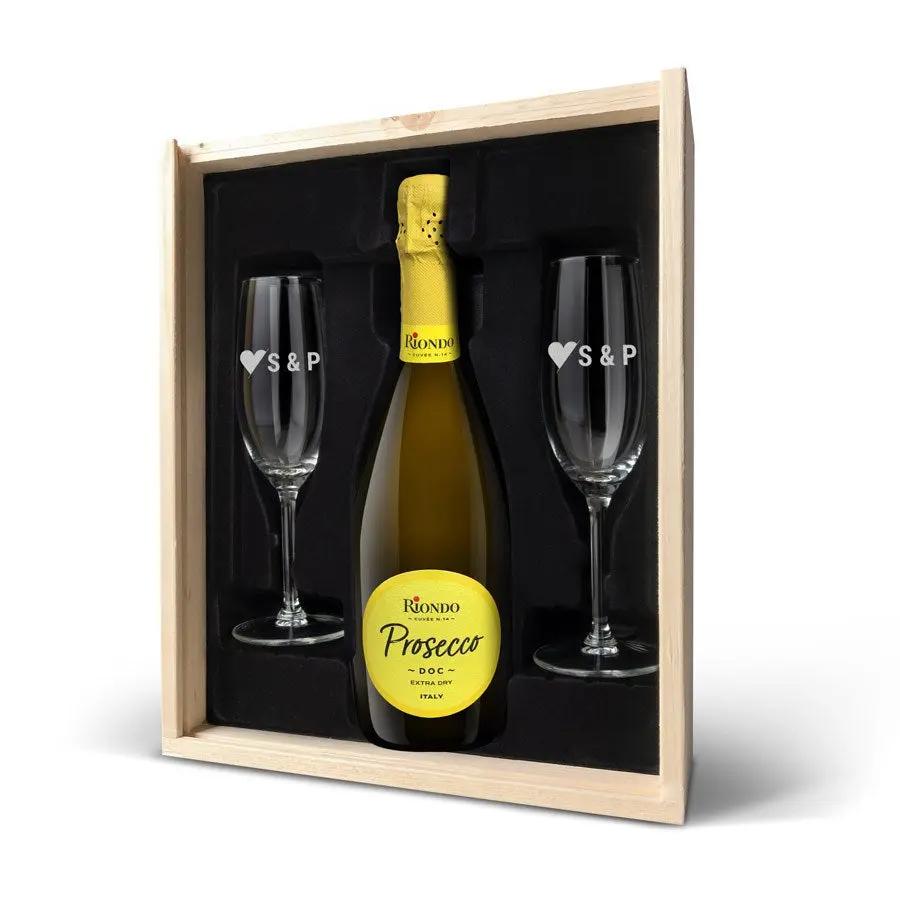 Champagner-Geschenkset mit gravierten Gläsern – Riondo Prosecco Spumante