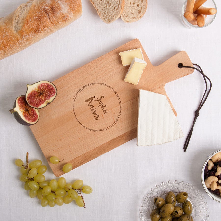 Gestalte ein einzigartiges Servierbrett aus Buchenholz. Ein persönliches Geschenk mit Namen, Text und Motiven. In verschiedenen Formaten!