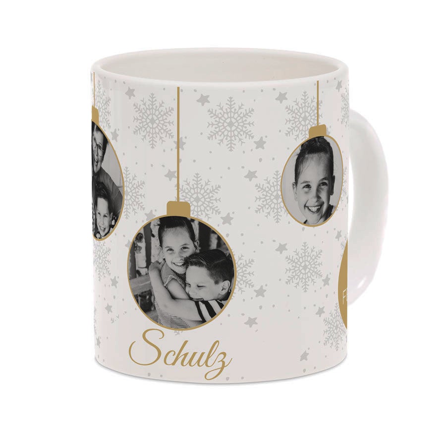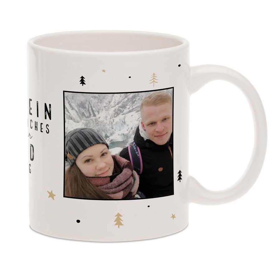 Mehr Informationen zur personalisierten Weihnachtstasse: Farbe: Innenseite und Henkel weiß Material: hochwertige glänzende Keramik Höhe: 9,5 cm / 3,7" Durchmesser: 7,5 cm / 3" Fassungsvermögen: 325 ml Personalisierung: mit Foto und/oder Text Druck: hochwertig und in Vollfarbe Extra: Die Tasse ist spülmaschinen- und mikrowellengeeignet