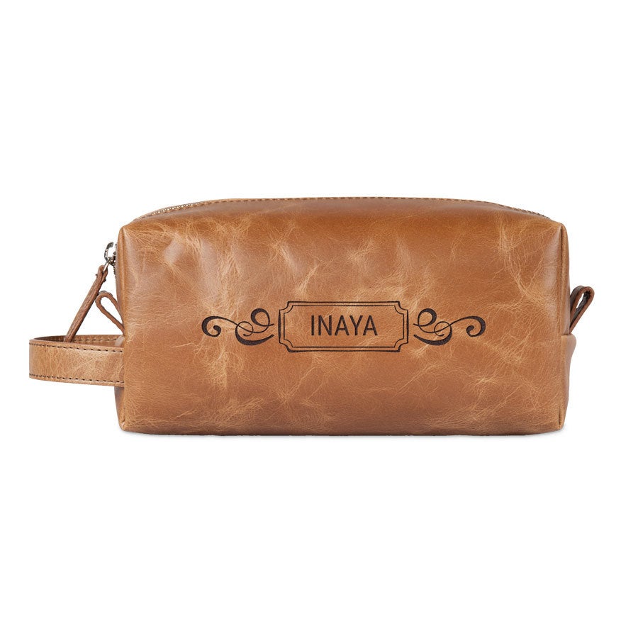 Bewahren Sie all Ihre Lieblingsaccessoires in diesem wunderschönen Luxus-Kulturbeutel aus Leder auf. Individuelle Gravur mit Ihrem Namen oder Text.