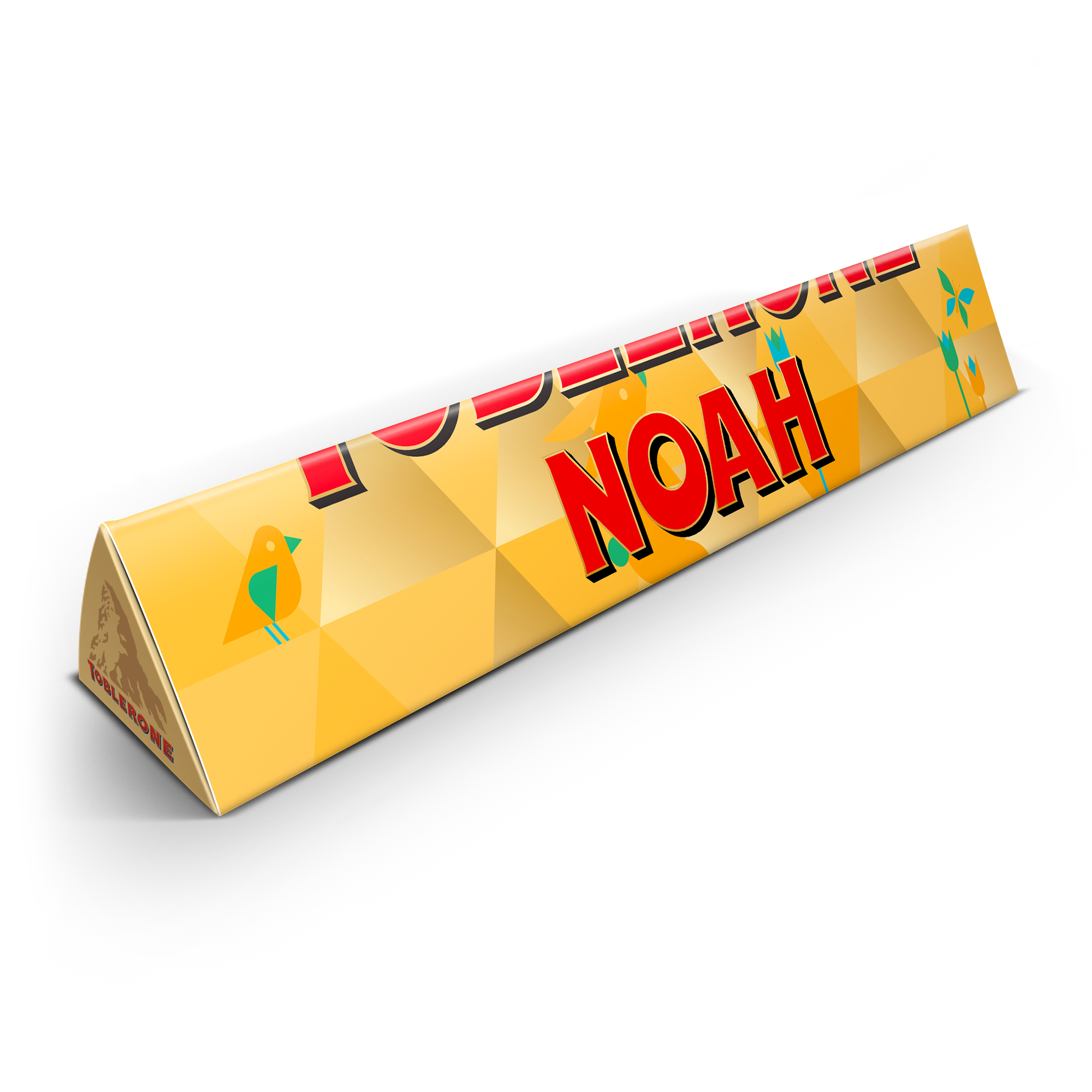 Überraschen Sie Ihren Lieblings-Toblerone-Fan mit dieser riesigen XXL-Milchschokolade. Klassische Verpackung mit persönlicher Note: der Name des Empfängers! Weitere Informationen zur personalisierten XXL-Toblerone-Tafel: - Schokolade: Milchschokolade mit Honig und Mandelnougat - Gewicht: 4,5 kg Vollmilchschokolade (Supergröße) - Maße: 80 x 10,8 x 10,8 cm - Personalisierung: mit Namen - Druck: gestochen scharf und in Vollfarbe - Achtung: Bei Außentemperaturen über 25 Grad Celsius können wir die Qualität der Schokolade nicht garantieren.